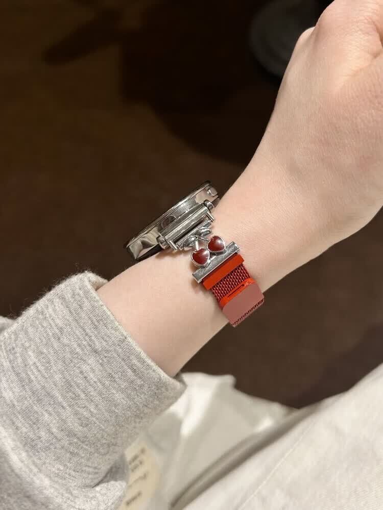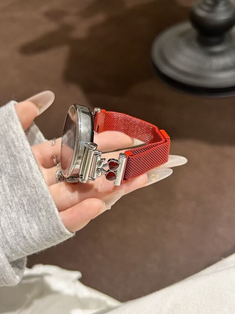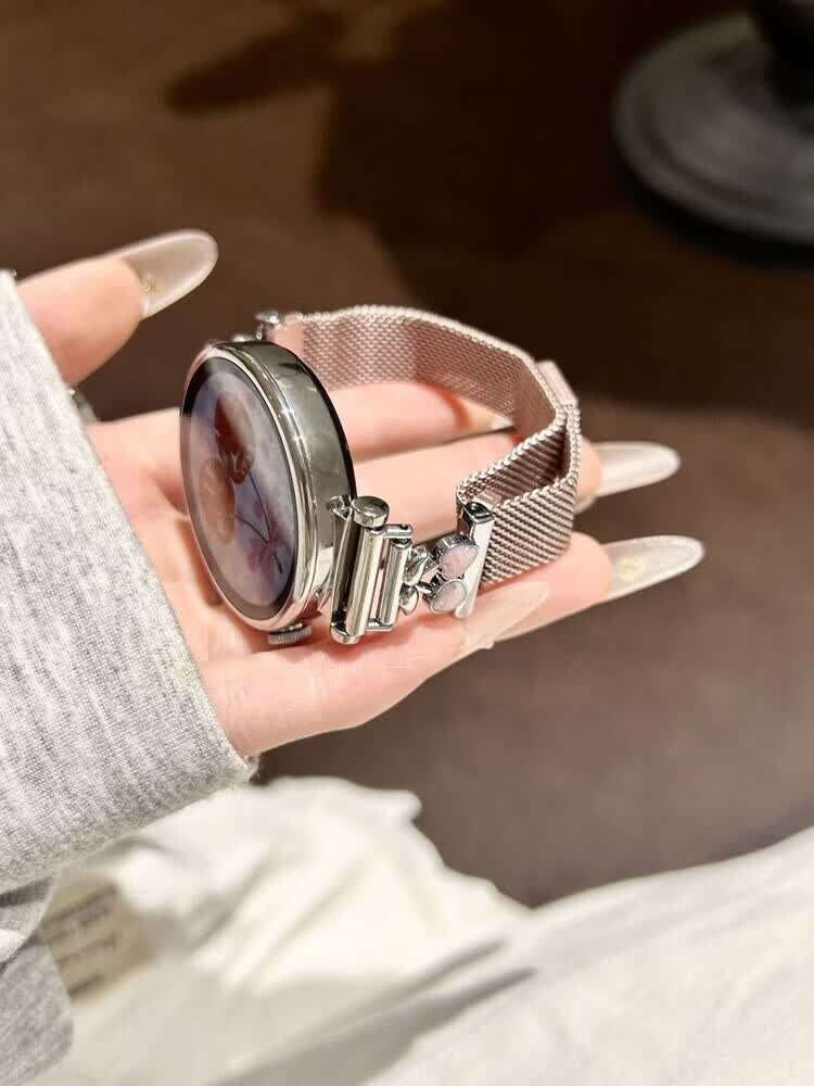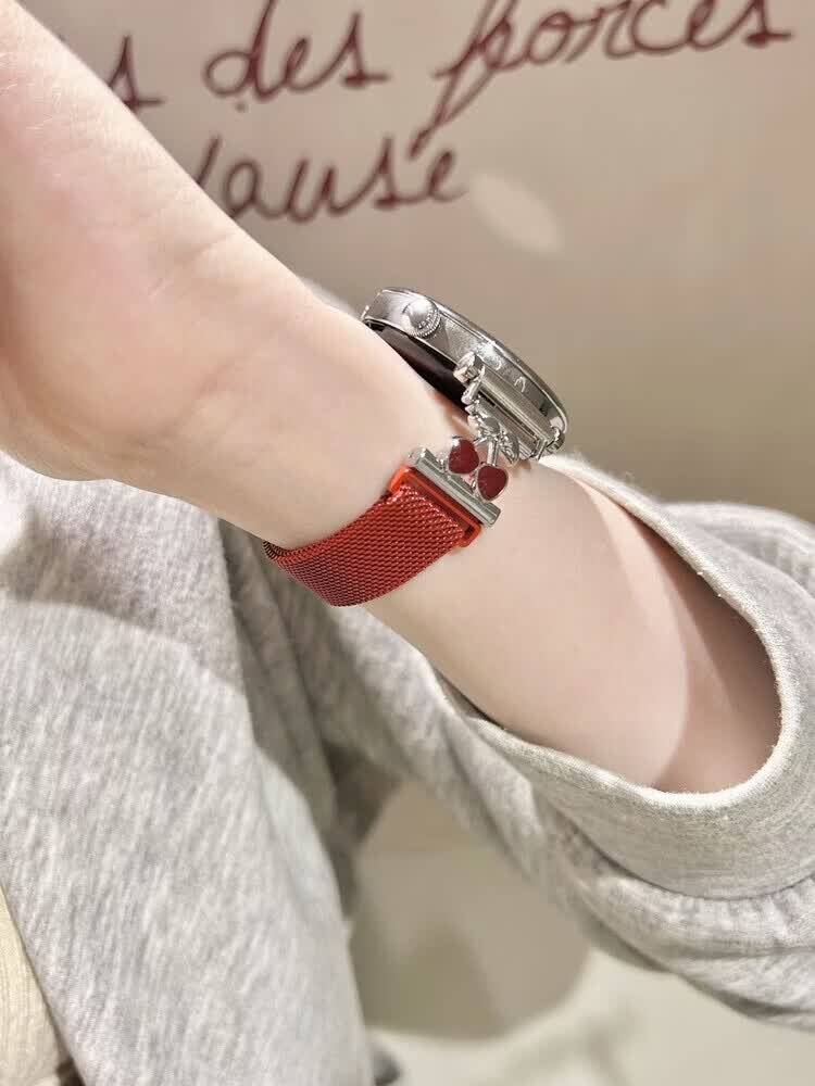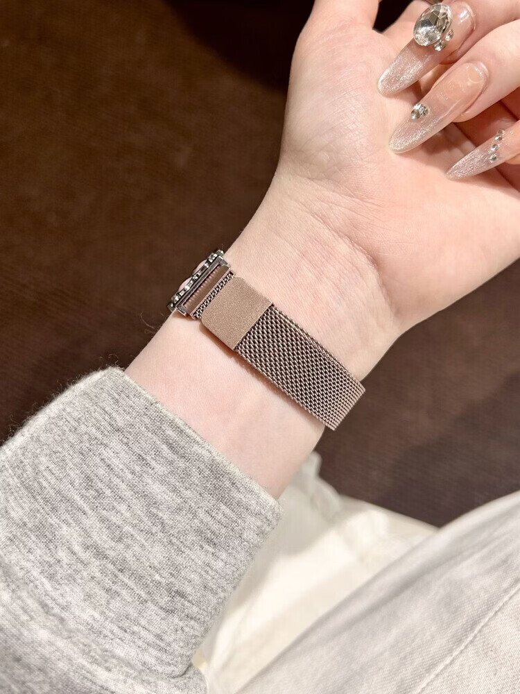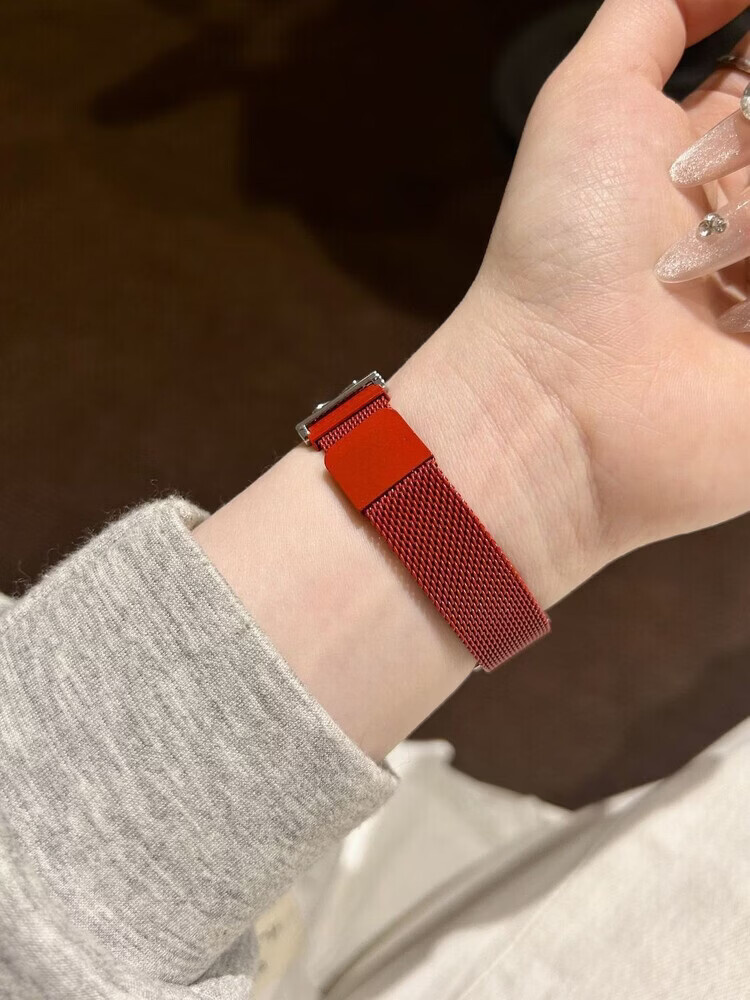 适用华为gt6表带金属磁吸watch5新款樱桃粉金米兰轻奢时尚网红女款表带 【银色-米兰尼斯】+樱桃白头粒 适用:华为Watch GT-表带22mm