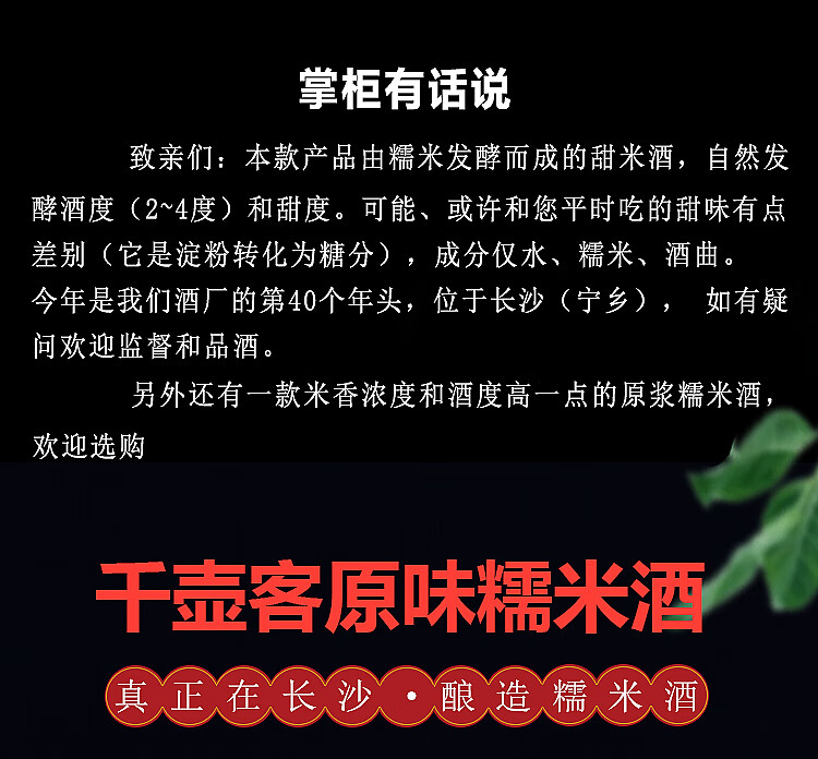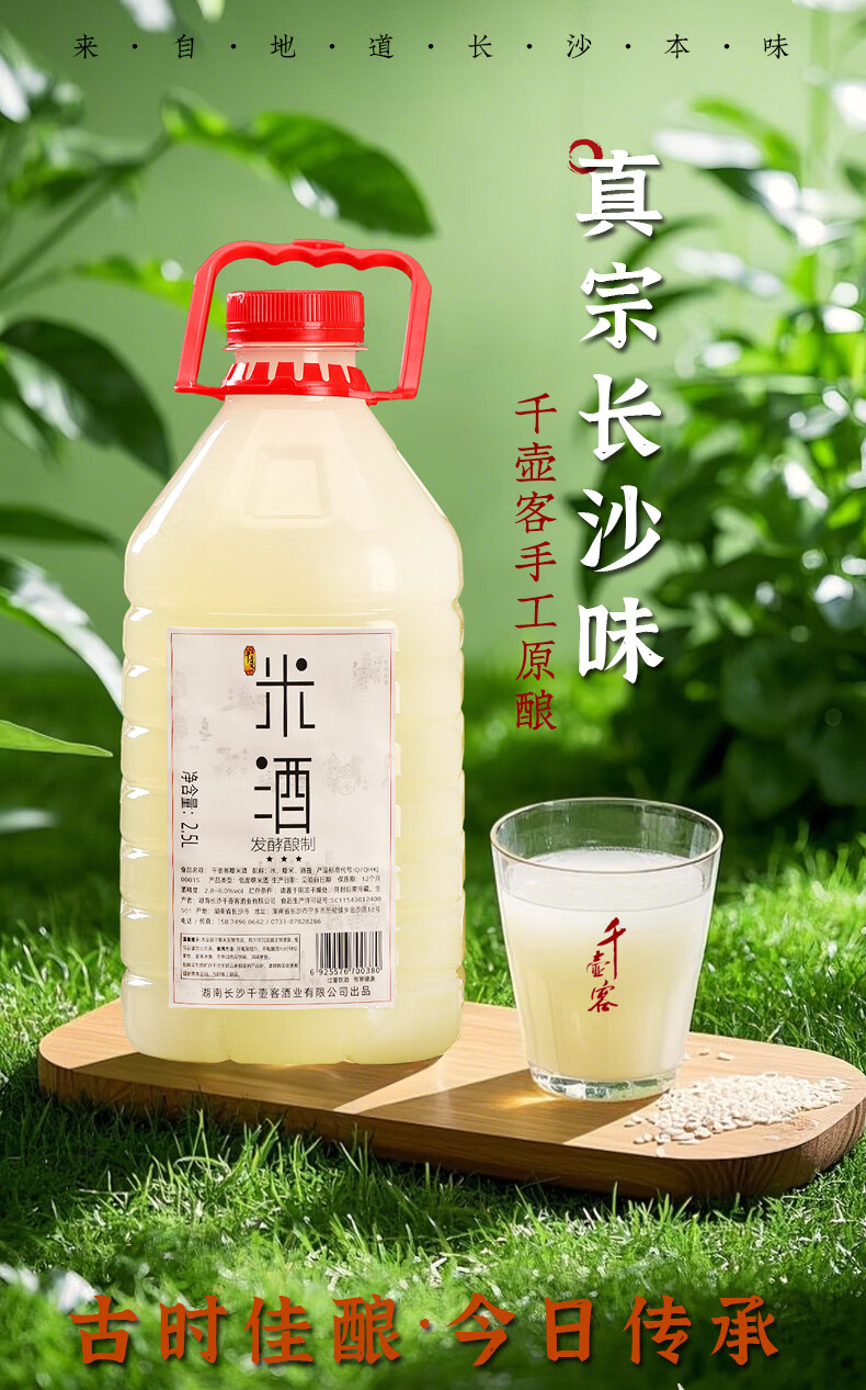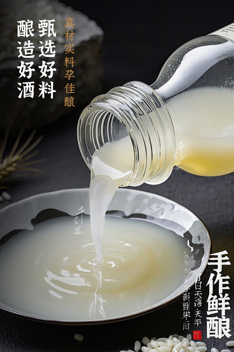 千壶客自酿原汁糯米酒湖南甜米酒低度米酒头道发酵酒醪糟汁月子米酒原浆 原浆酒/约5~6度 1250mL 1瓶 /小瓶 甜米酒