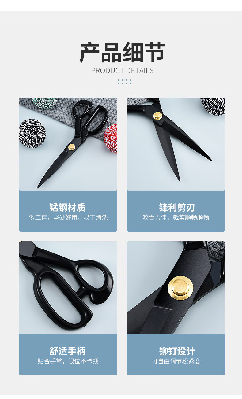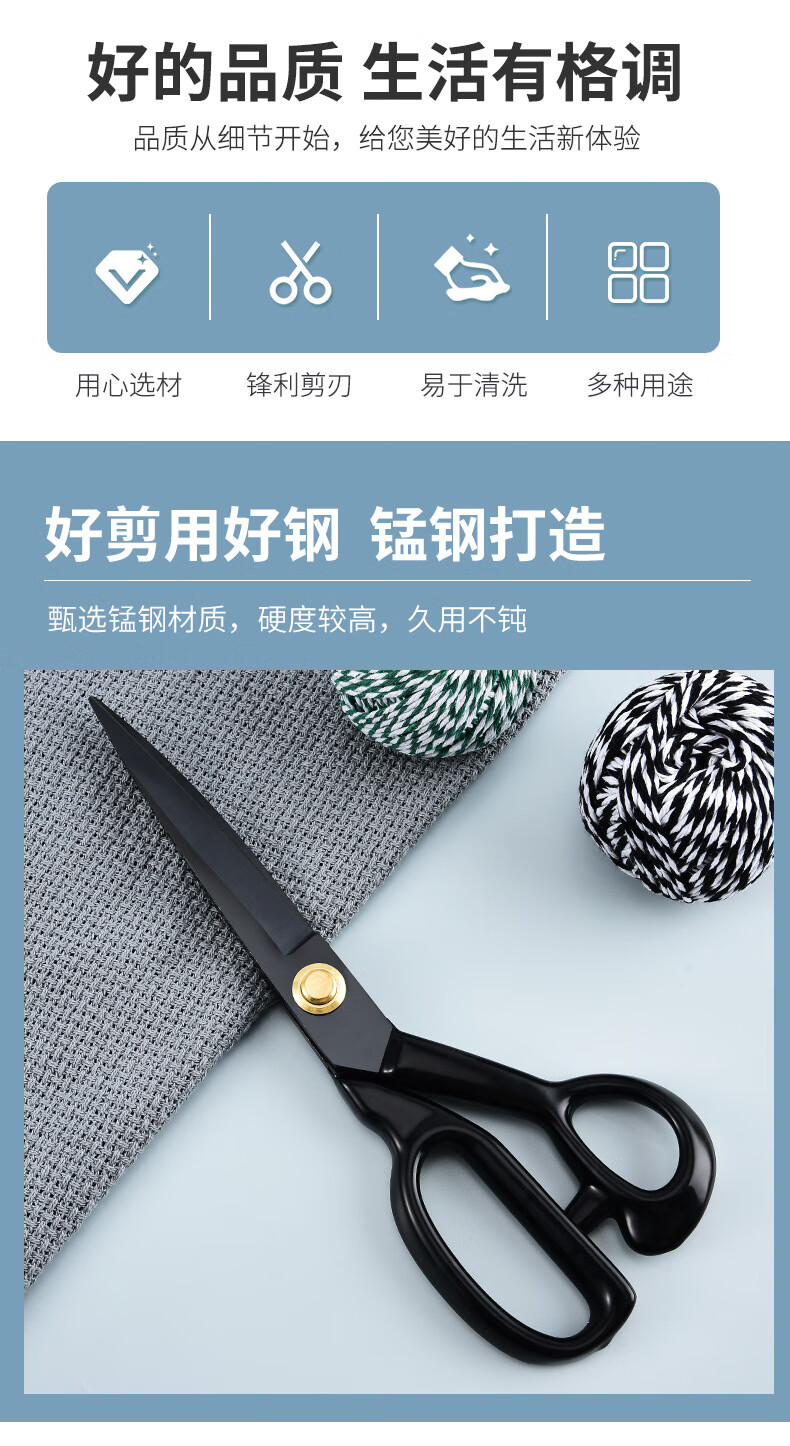 【精选】不锈钢多功能裁缝剪刀裁布服装缝纫大剪刀家用专用裁缝剪 裁缝剪盒装【8寸】