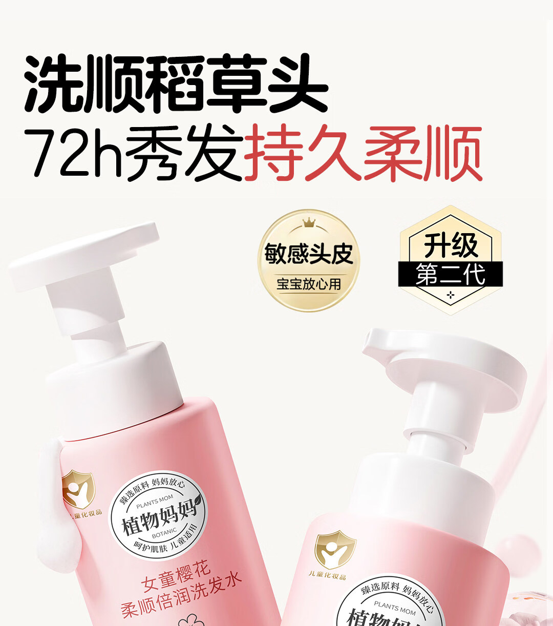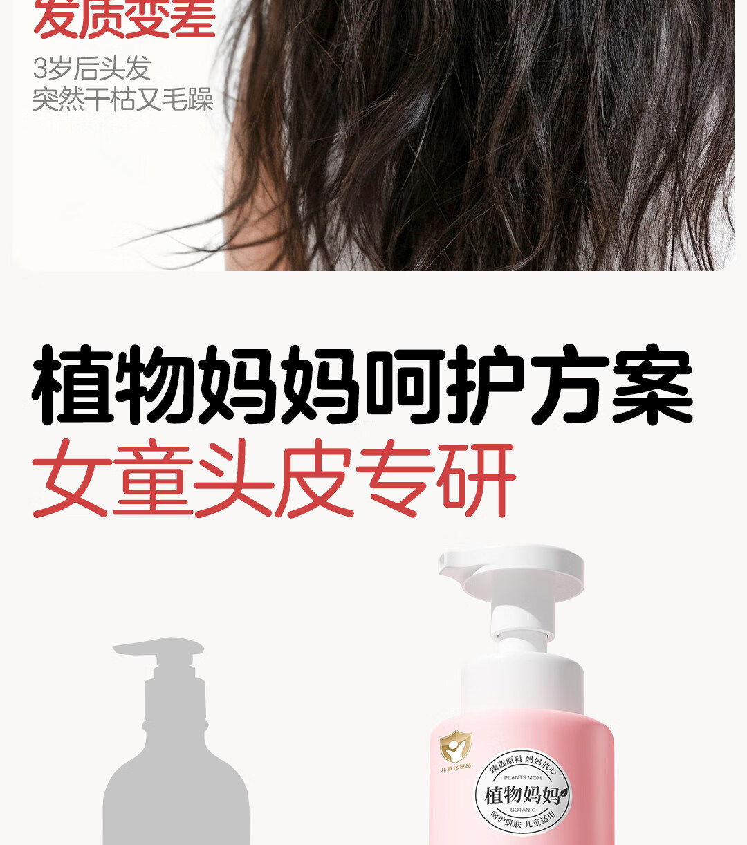 植物妈妈儿童洗发水3-6-12岁女童男孩护发温和清洁止痒中大童洗护套装 【全新升级 】女童洗发水300ml