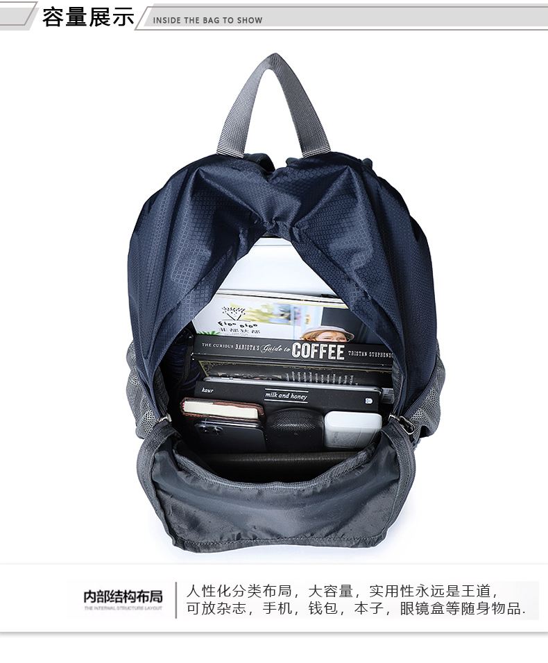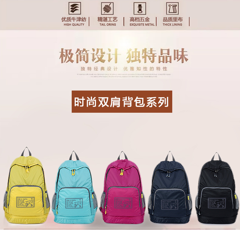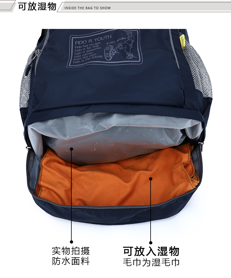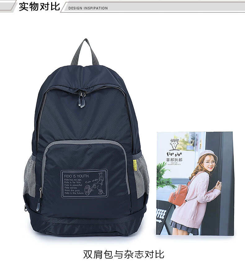菲都狄都双肩包女可折叠韩版时尚轻便干湿分离大容量布包学生党礼物新款 宝蓝色【底部有拉链可干湿分离】