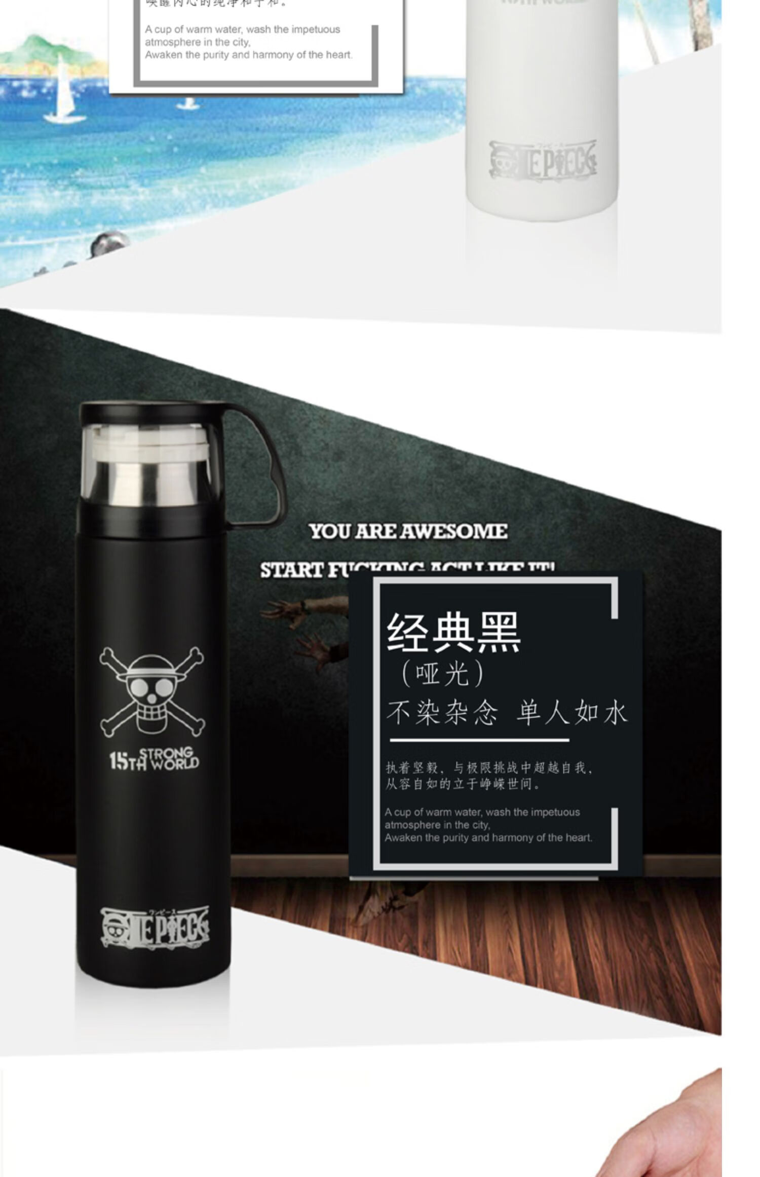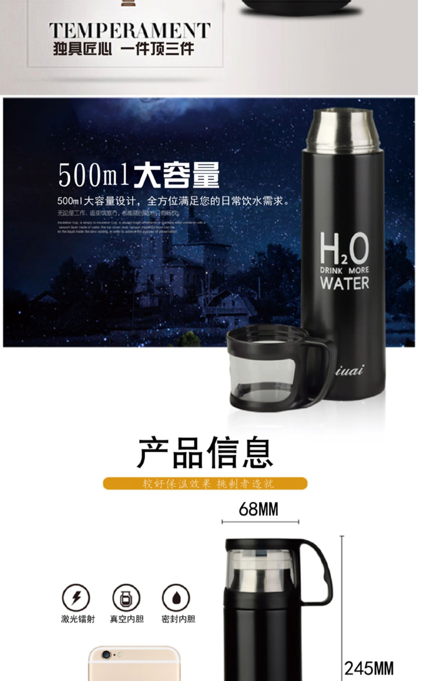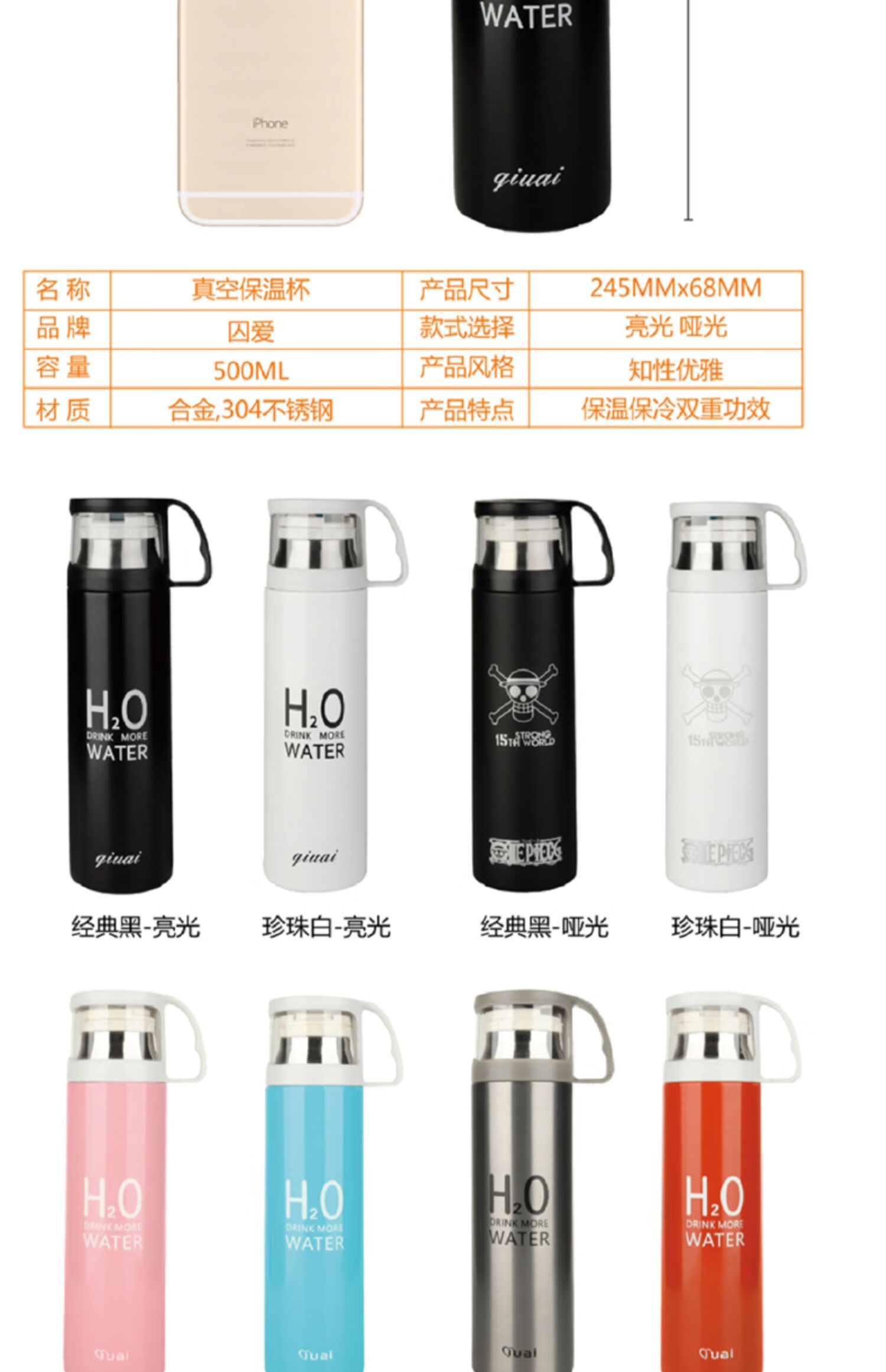 保温杯女带盖可喝水 学可爱带杯子男带杯盖大容量个性简约有盖 350ml蓝小白+杯刷(无挂件)