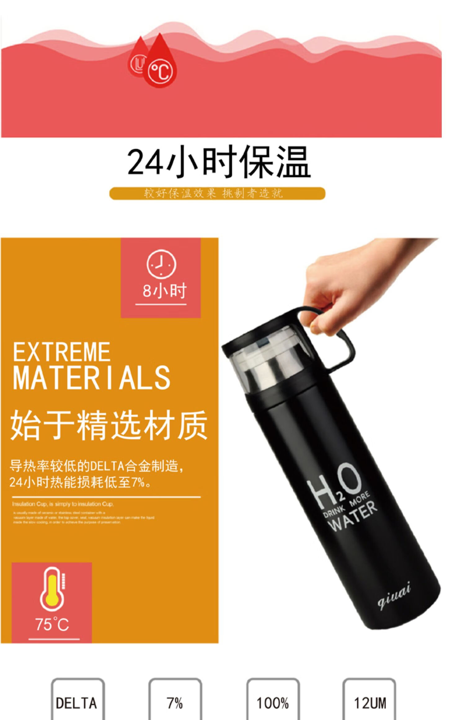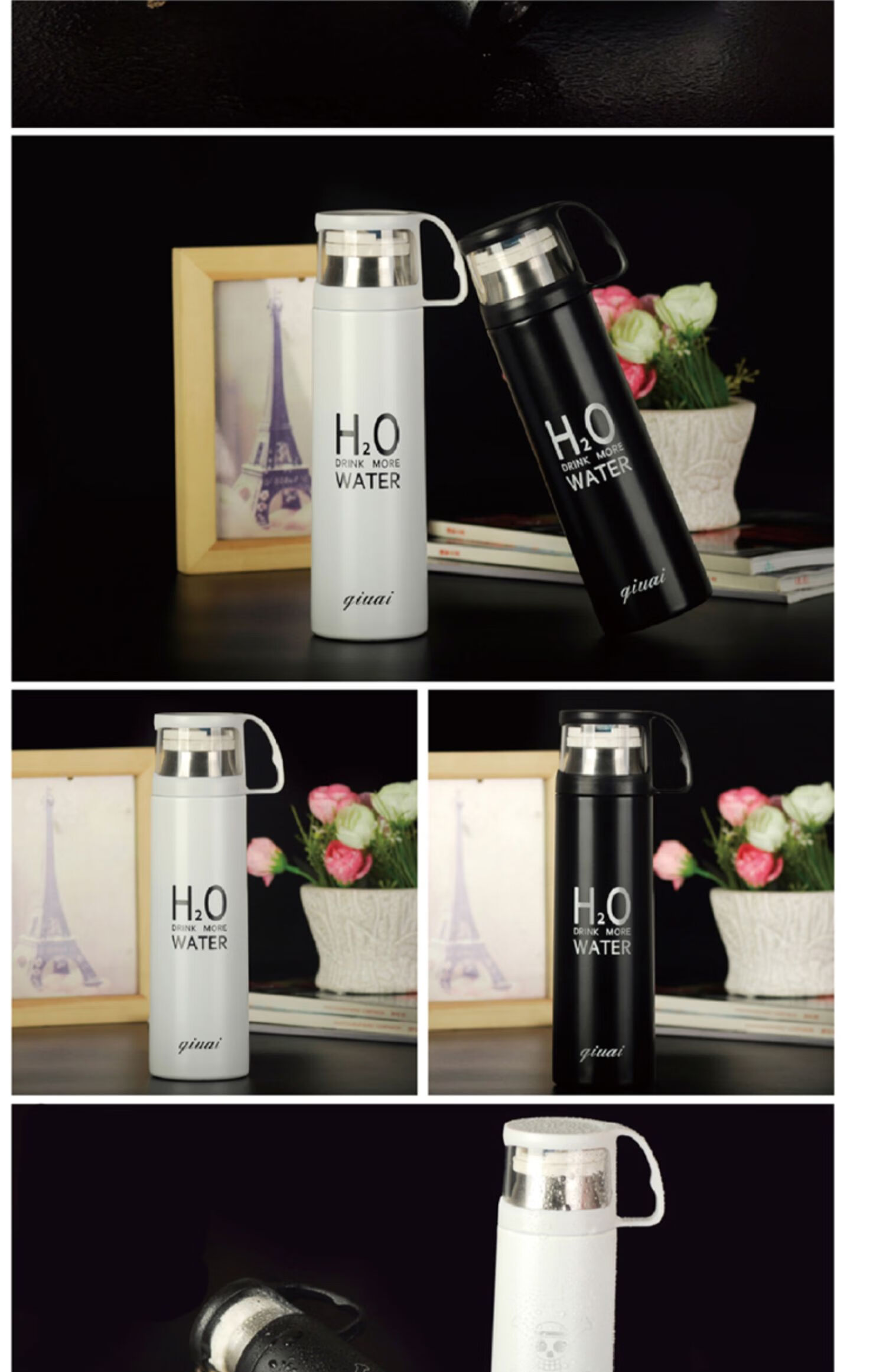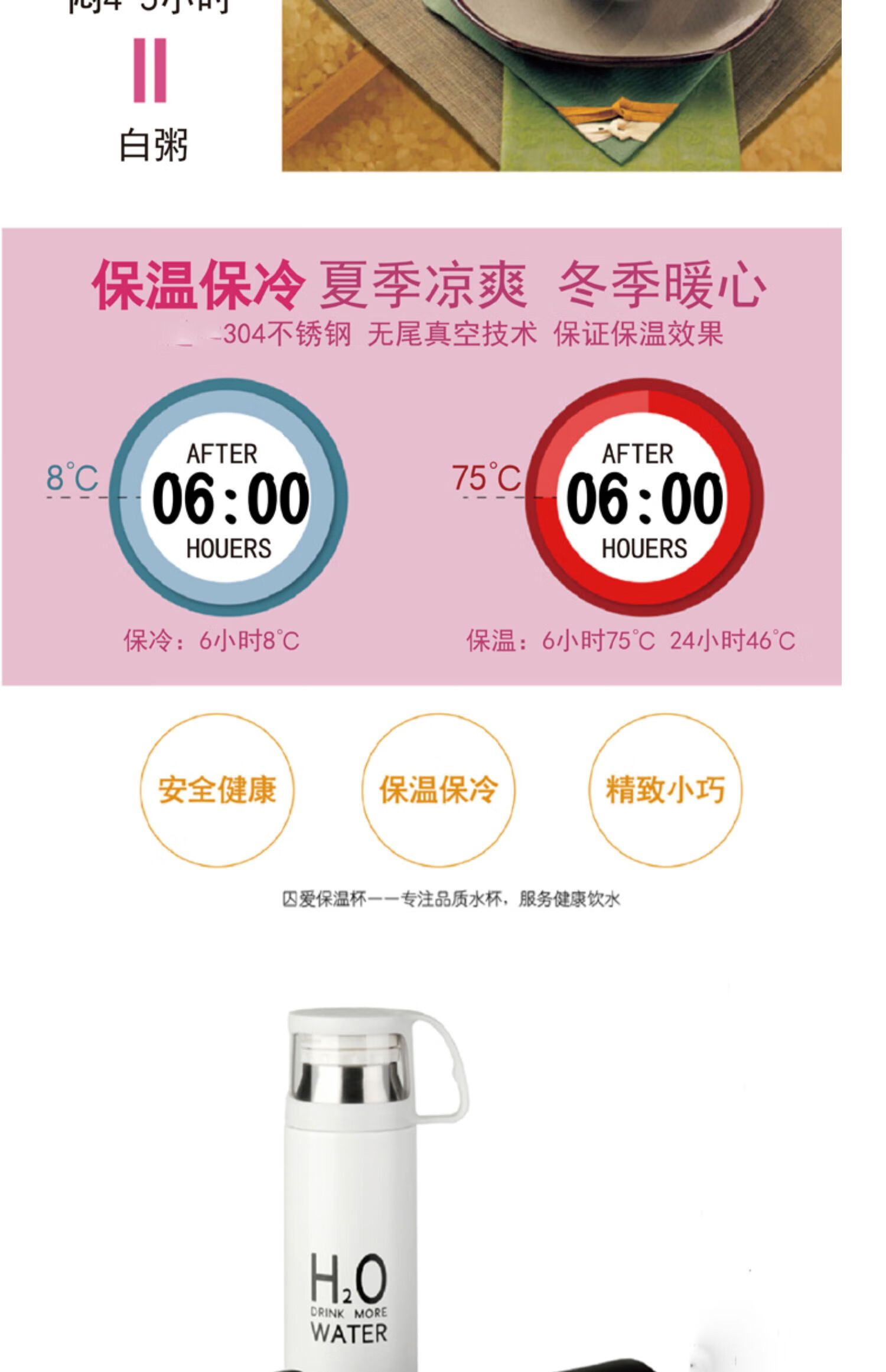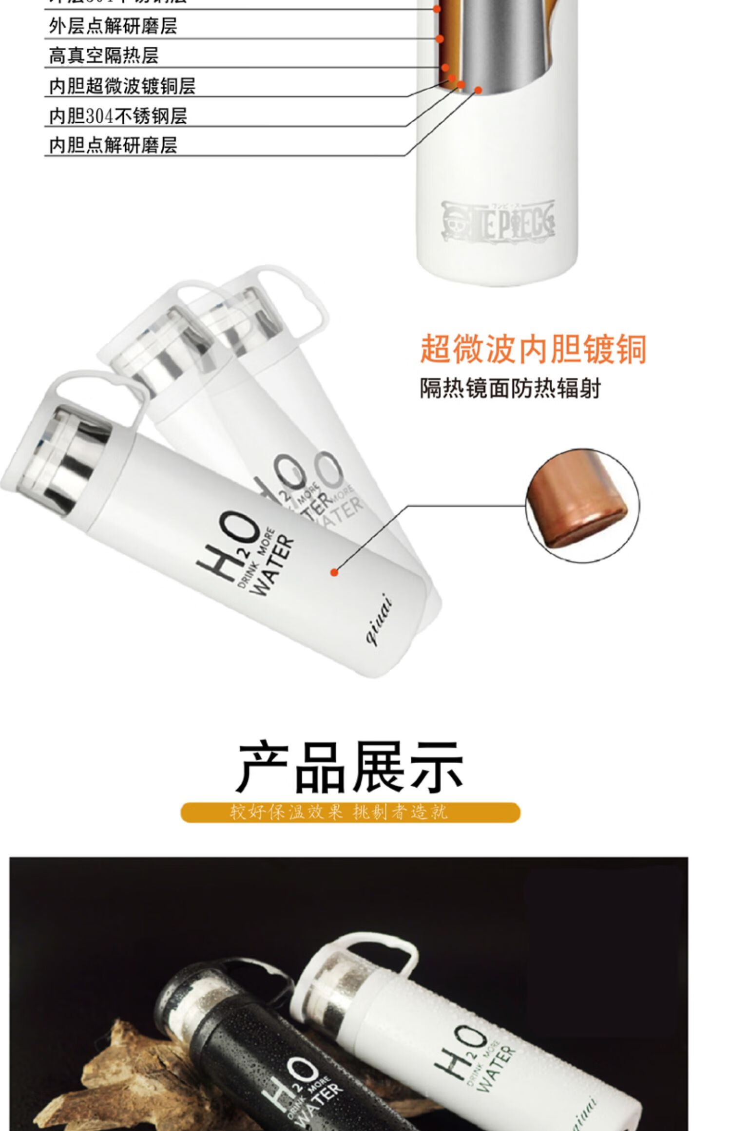 保温杯女带盖可喝水 学可爱带杯子男带杯盖大容量个性简约有盖 350ml蓝小白+杯刷(无挂件)