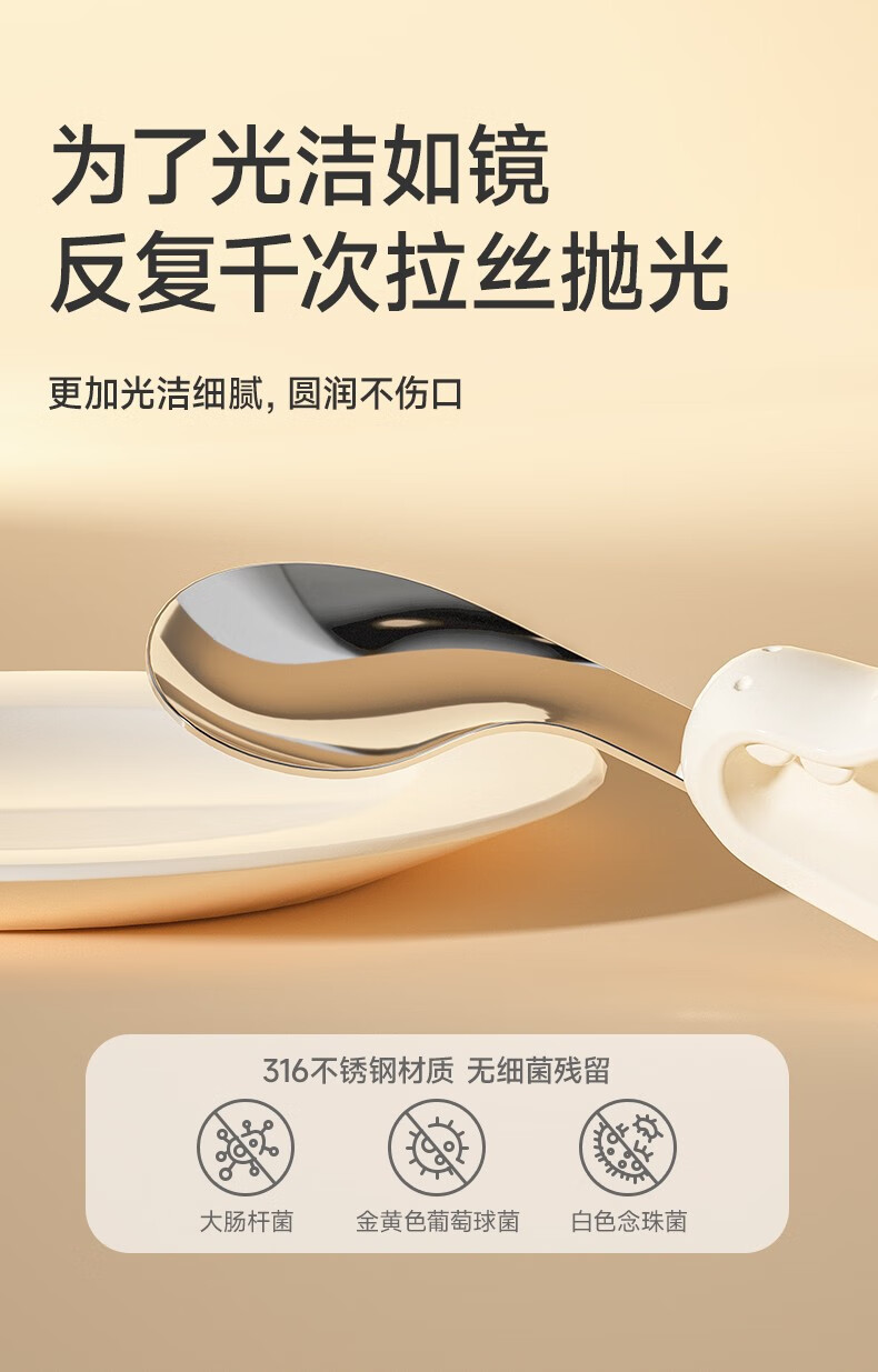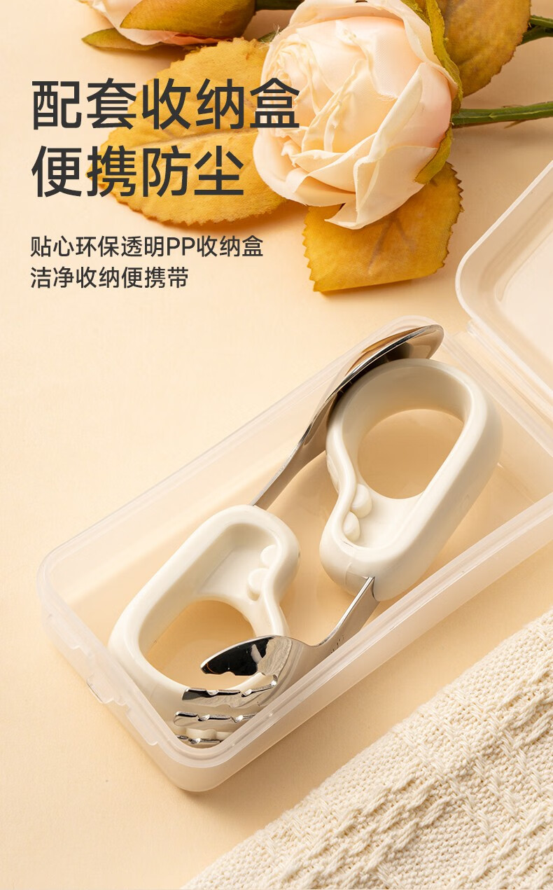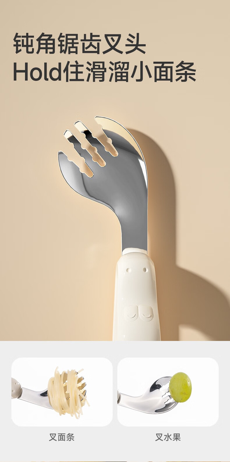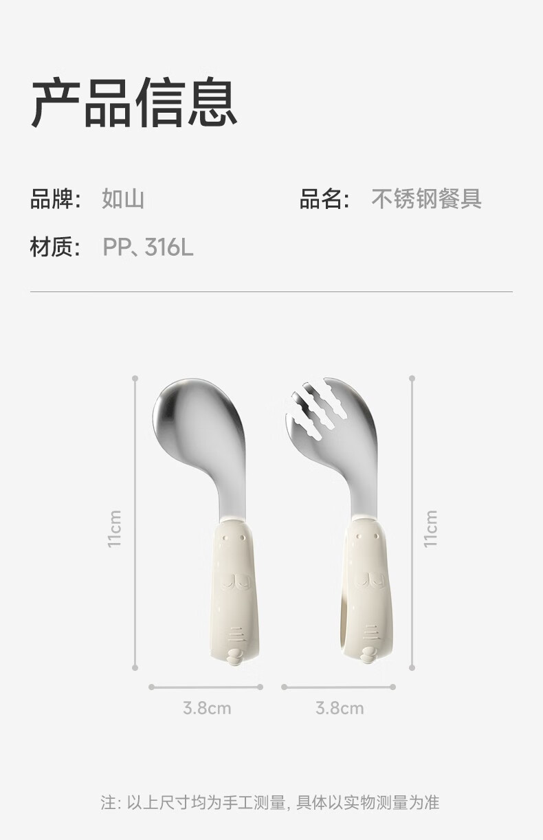 如山宝宝自主进食辅食勺子一岁婴儿学吃饭训练儿童不锈钢短柄叉勺 【店长推荐】316L不锈钢叉勺-里瑟米(赠收纳盒)