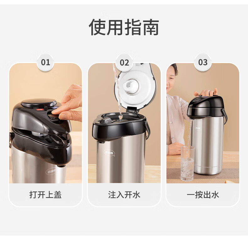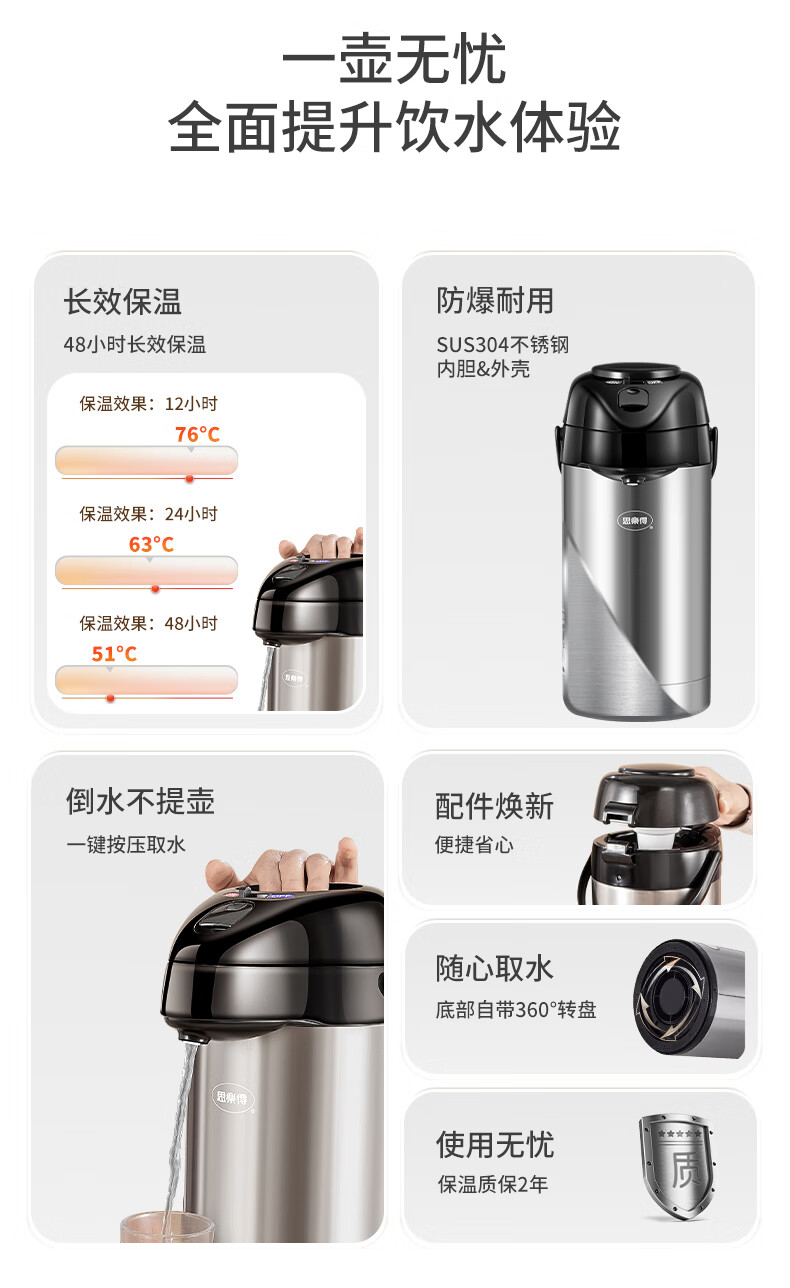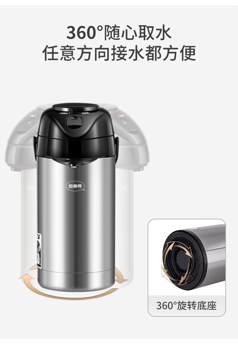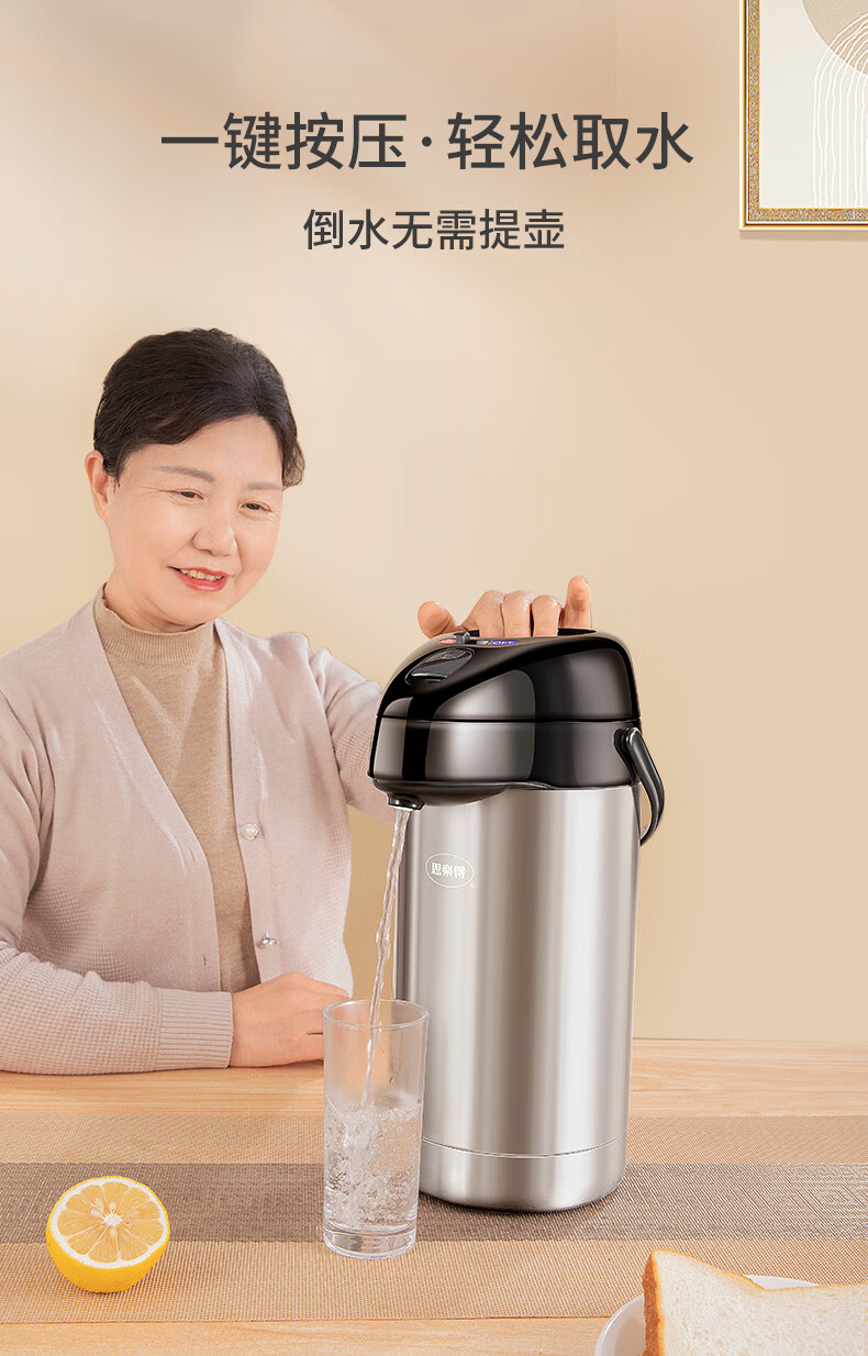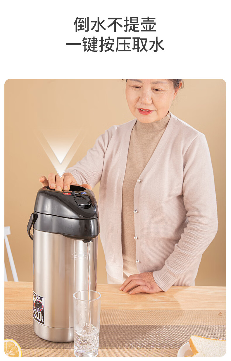 思乐得(SOLIDWARE)304不锈钢保温壶气压壶家用大容量热水壶办公室车载老式暖壶暖瓶 旗舰款-香槟金2.5L