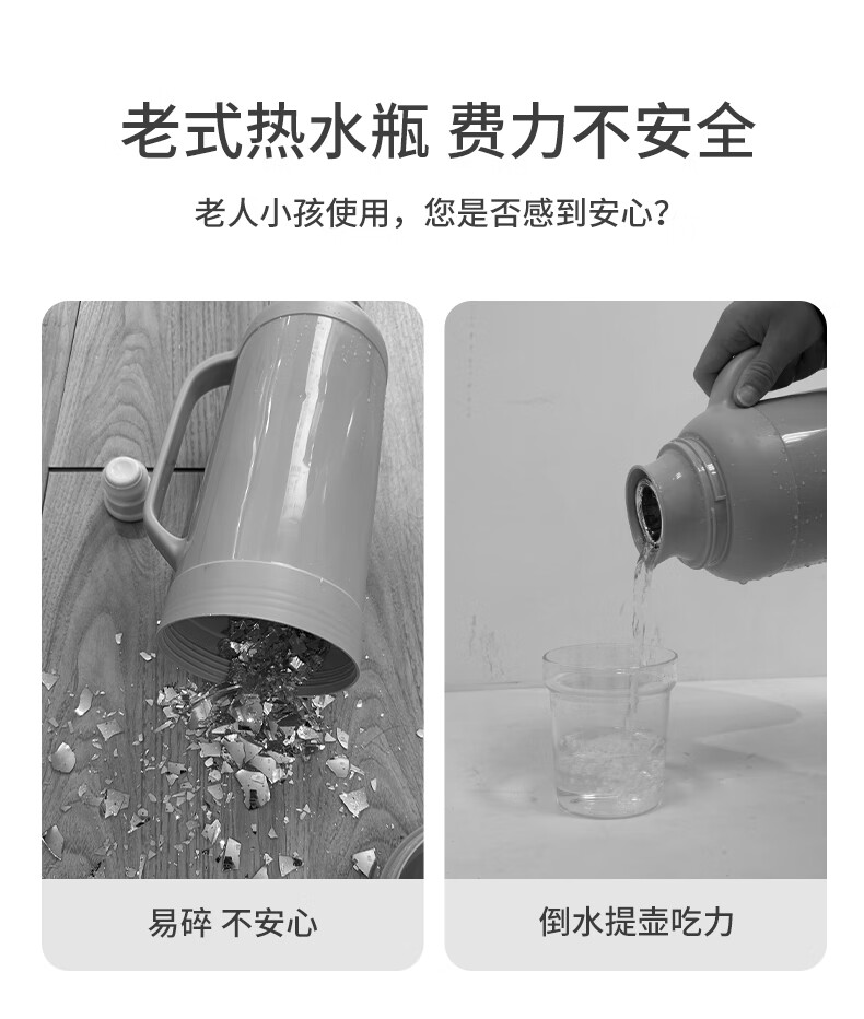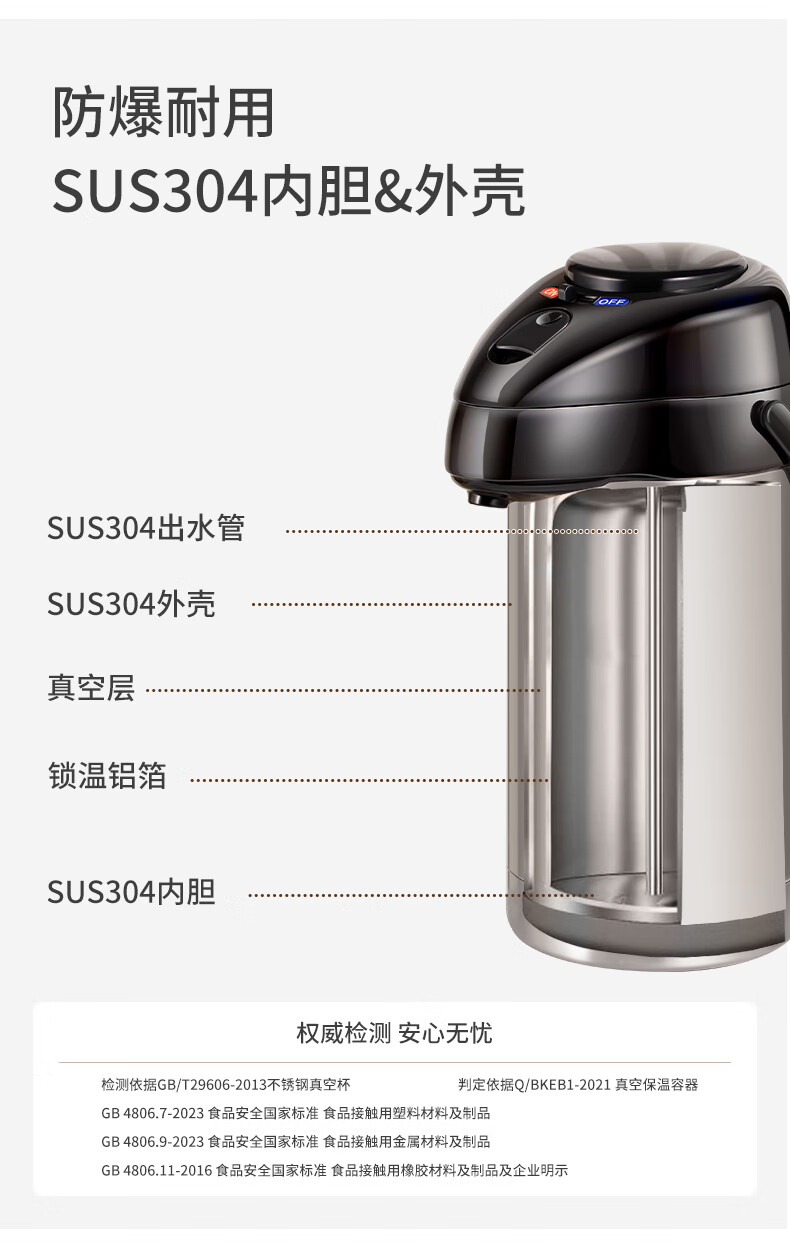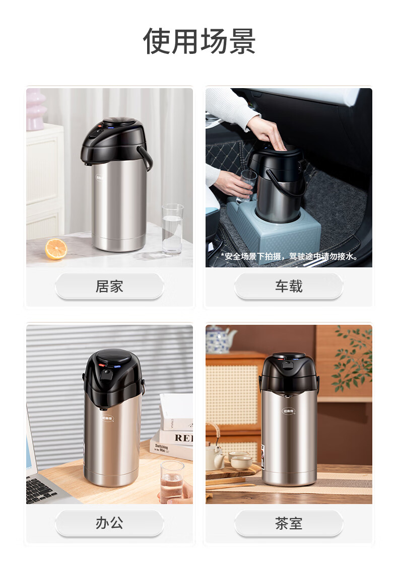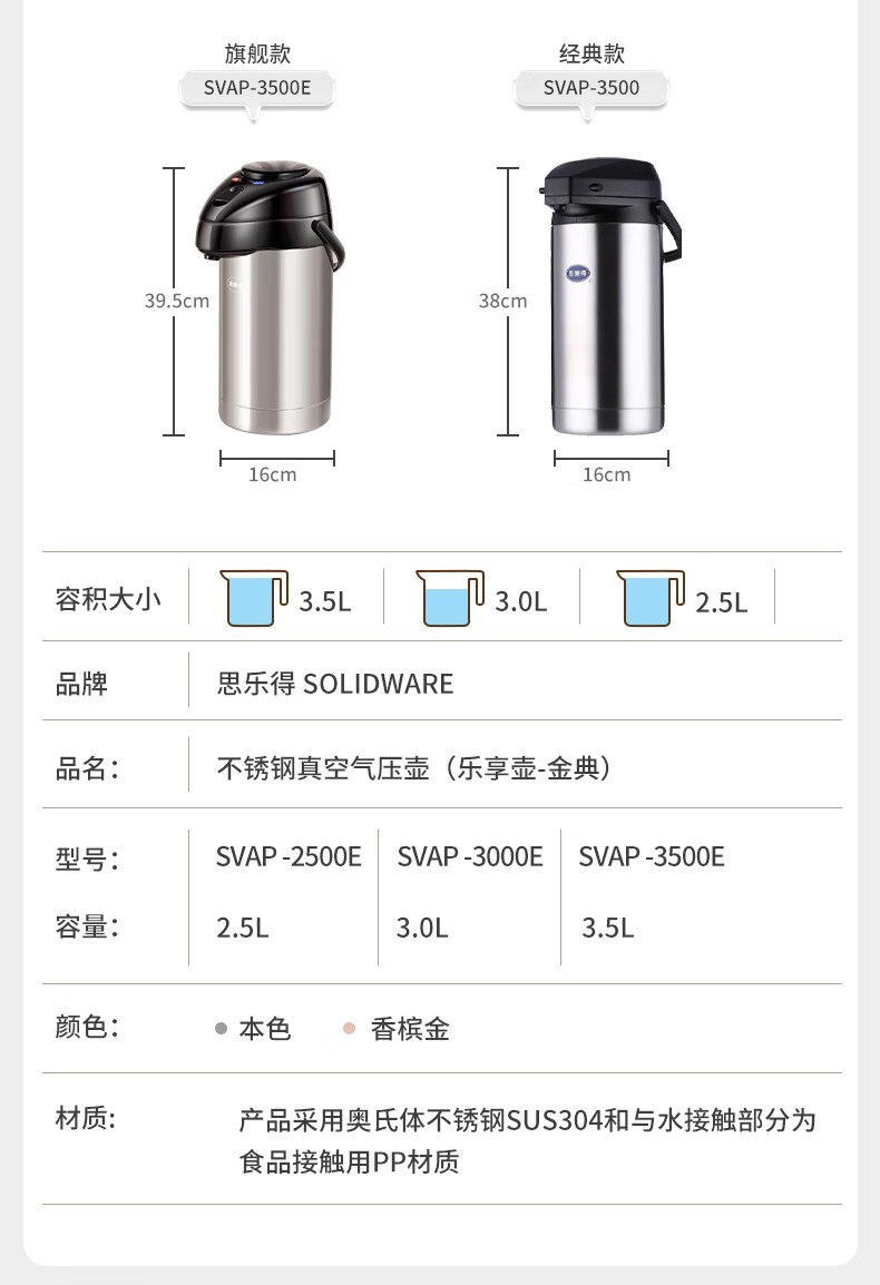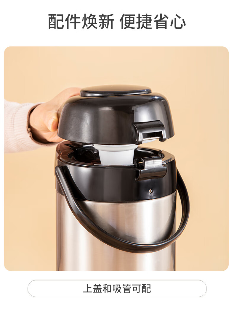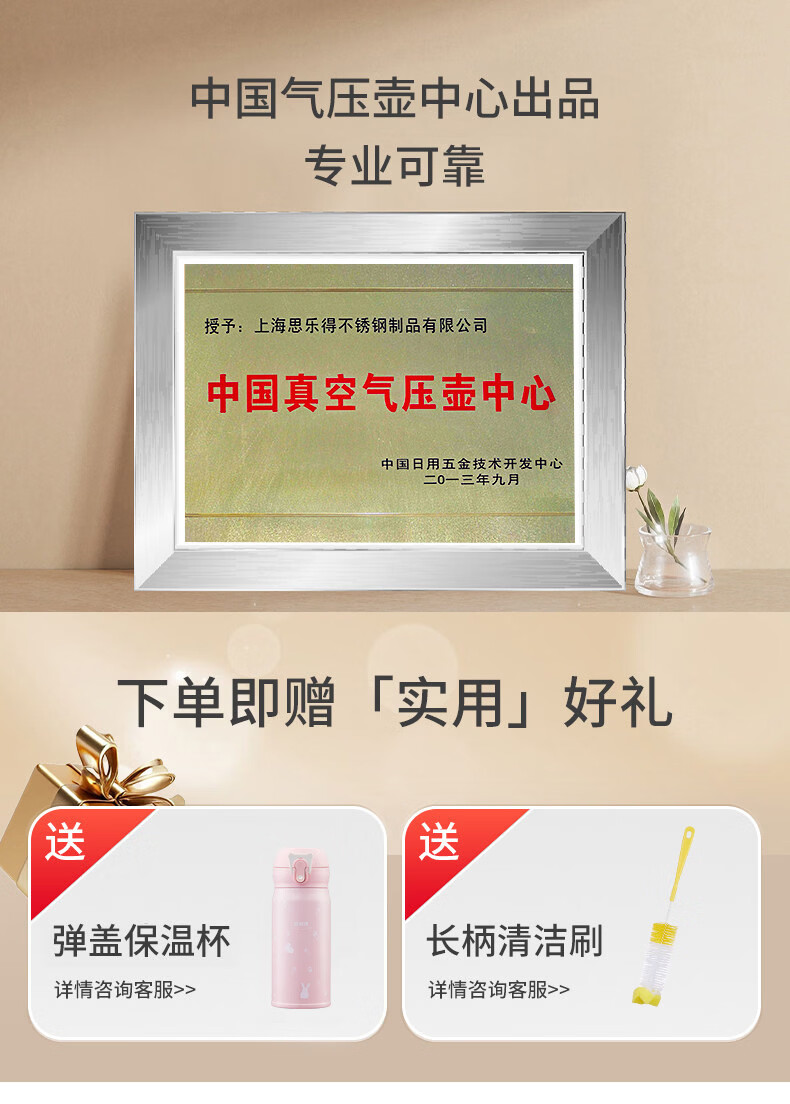 思乐得(SOLIDWARE)304不锈钢保温壶气压壶家用大容量热水壶办公室车载老式暖壶暖瓶 旗舰款-香槟金2.5L