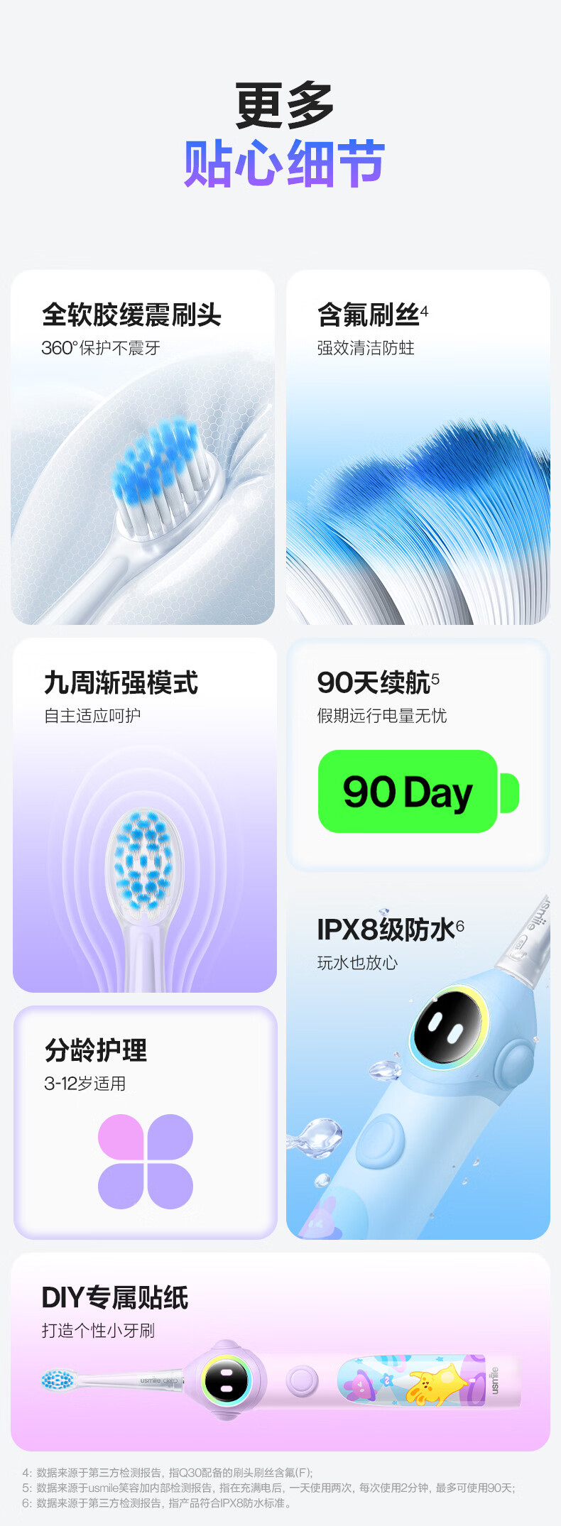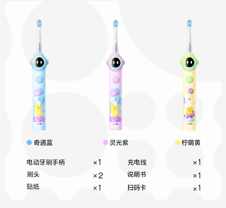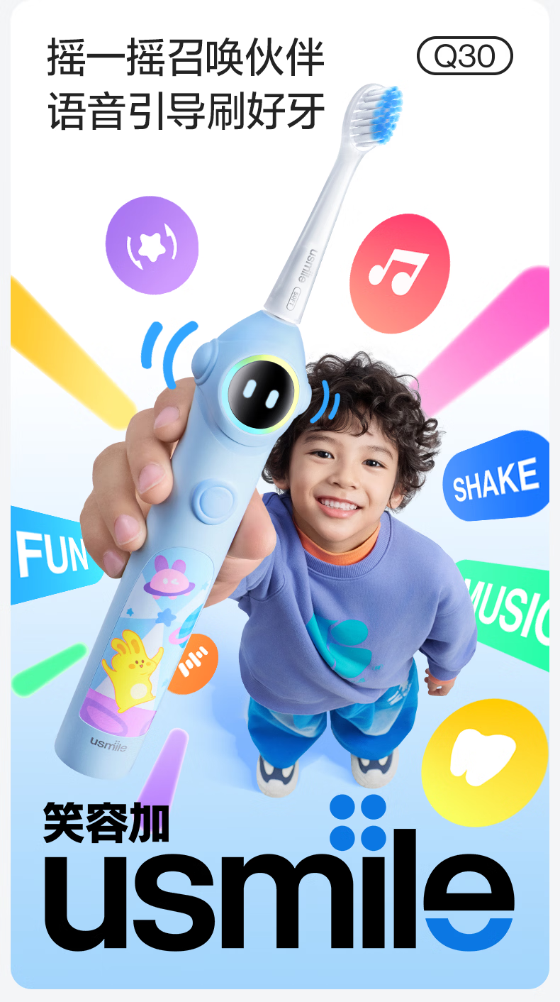 usmile笑容加儿童电动牙刷 数字牙刷 漏刷提醒 Q30灵光紫 适用3-15岁 生日礼物 儿童礼物 新年礼物