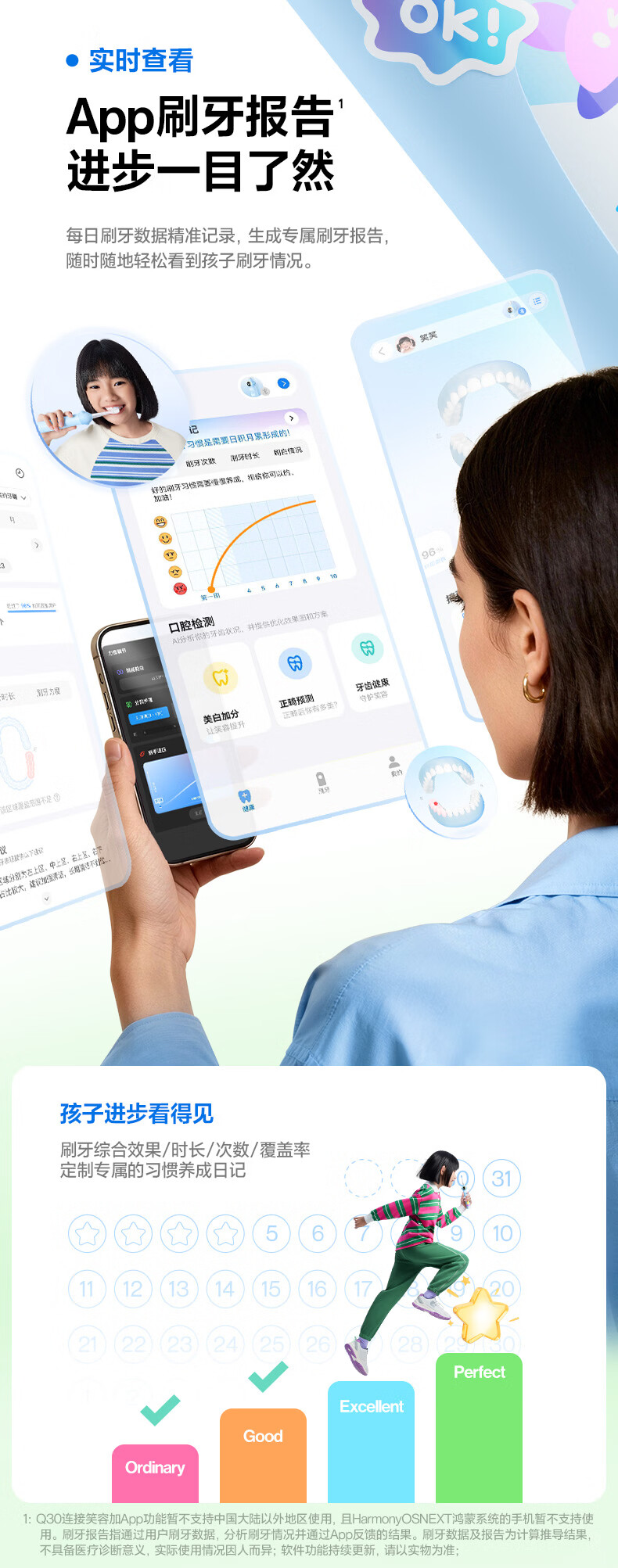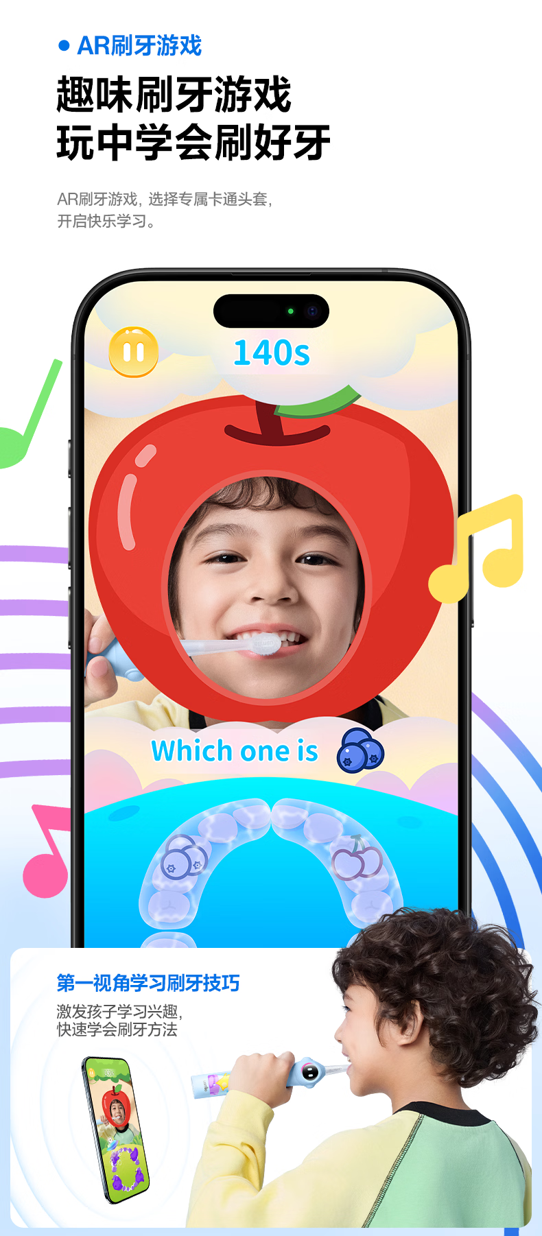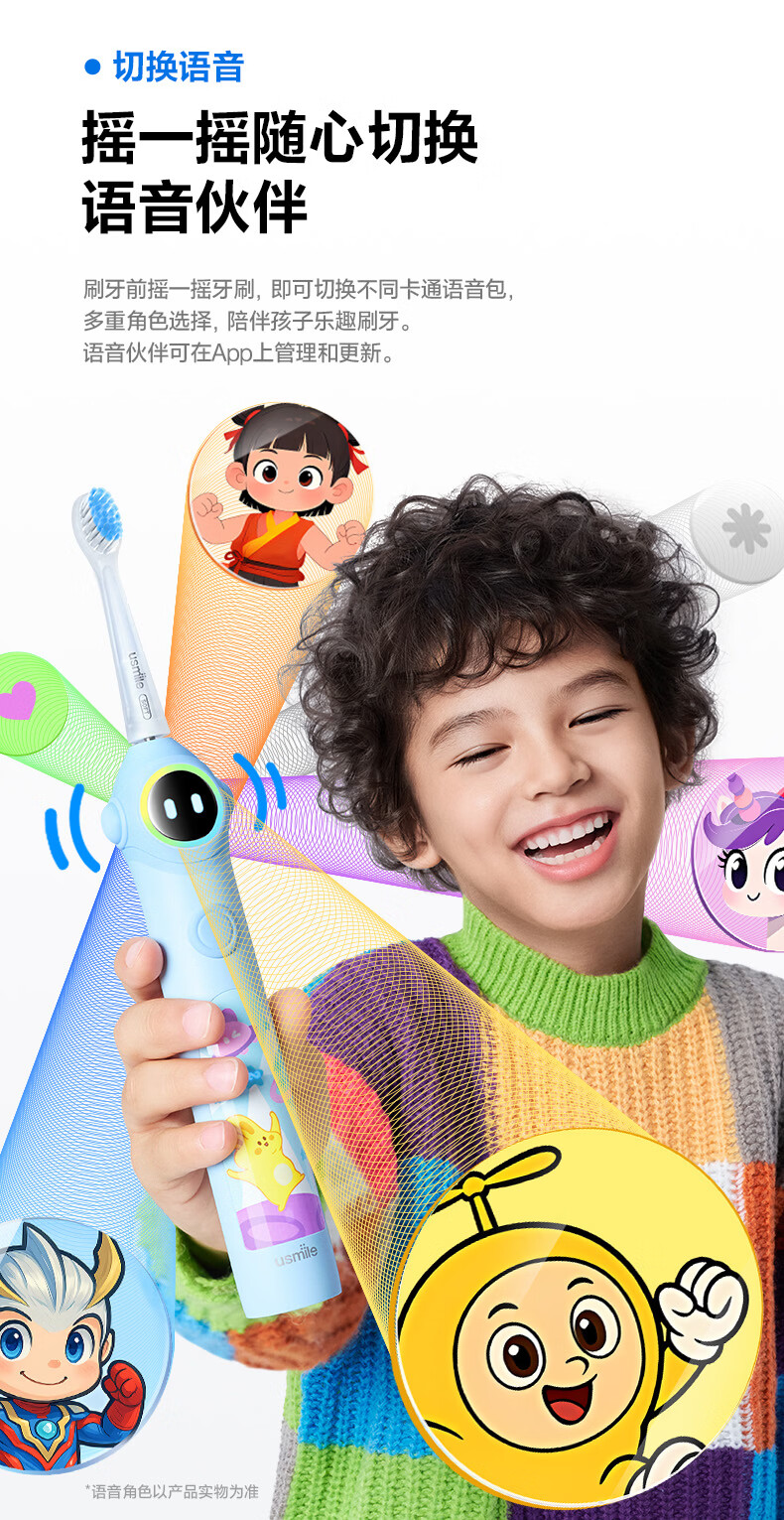 usmile笑容加儿童电动牙刷 数字牙刷 漏刷提醒 Q30灵光紫 适用3-15岁 生日礼物 儿童礼物 新年礼物