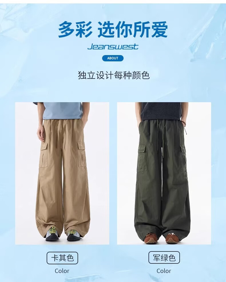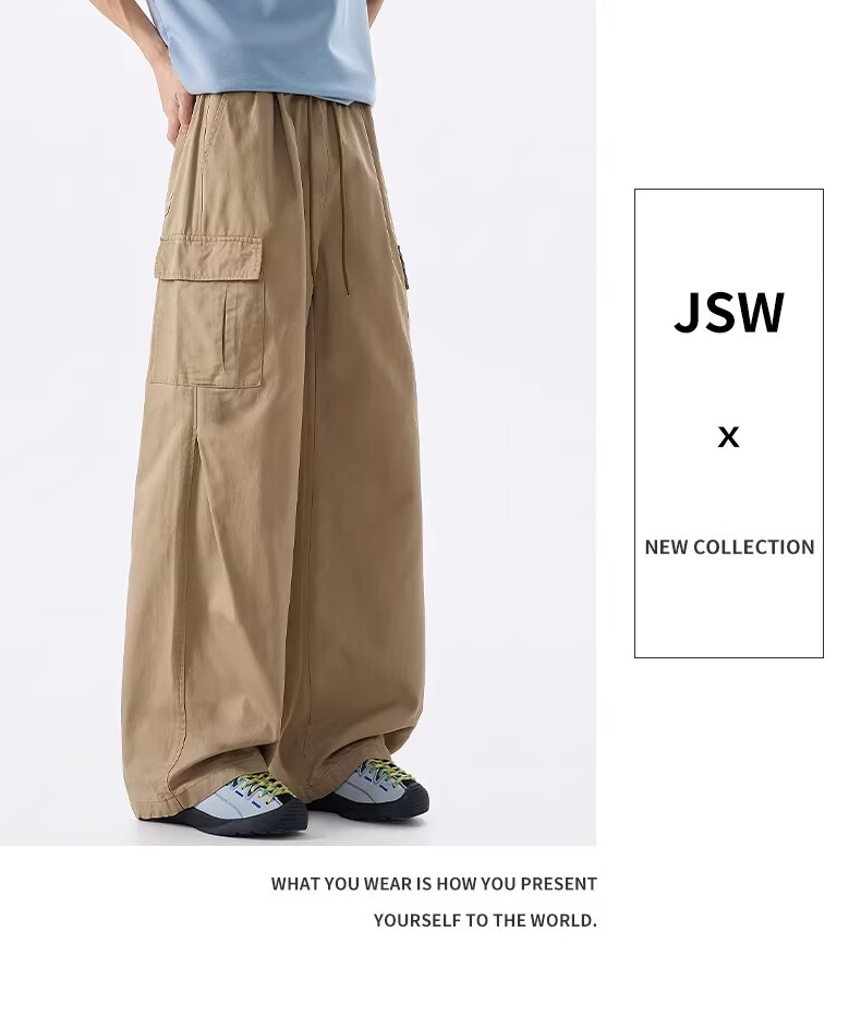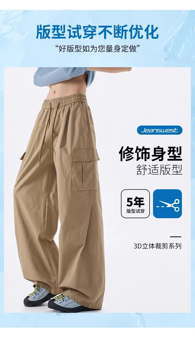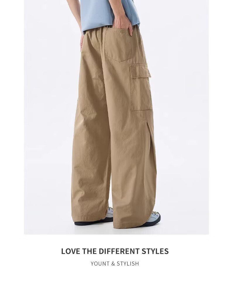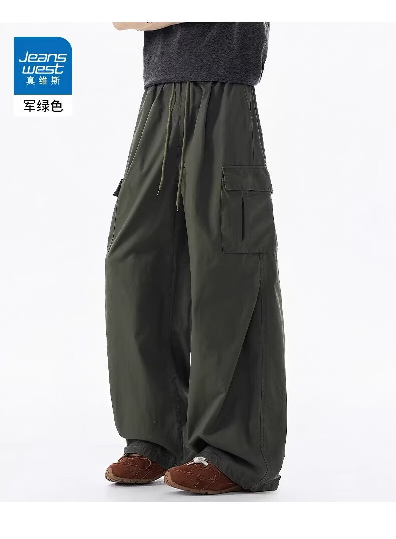 真维斯美式透气工装裤男2026春季新款宽松直筒多口袋设计休闲长裤 卡其色 【直筒显瘦】 M 【建议100-110斤】