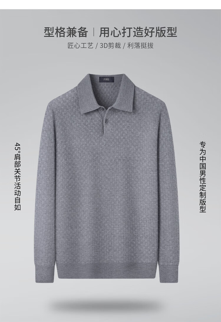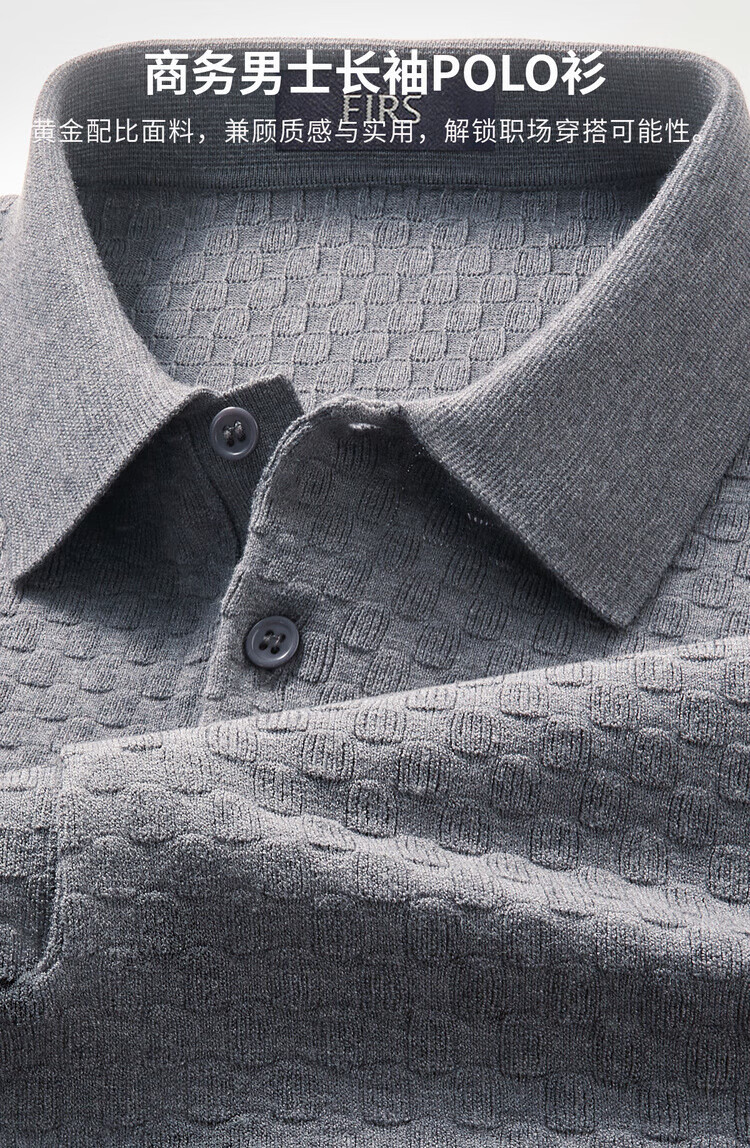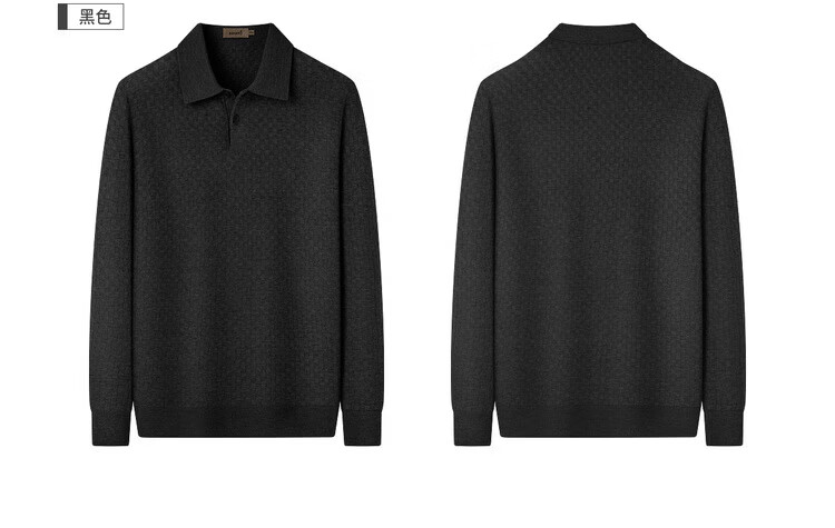 杉杉(FIRS)【含绵羊毛】2025春秋款含精纺羊毛柔软轻盈商务男士长袖POLO衫 黑色 M 170/88A