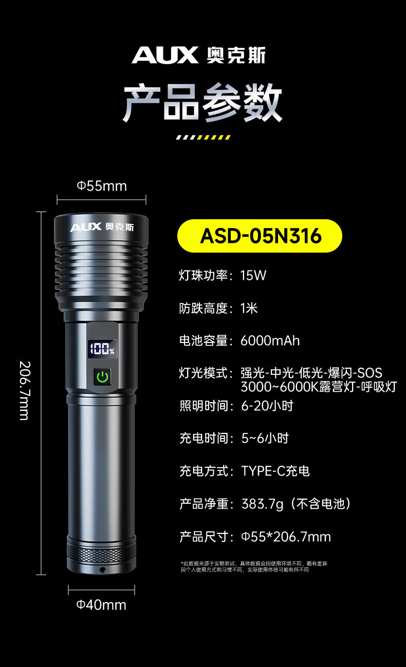 奥克斯强光手电筒 变焦远射银龙Ultra便携手电长续航钓鱼户外露营呼吸灯 全能机皇-呼吸露营灯-伸缩变焦