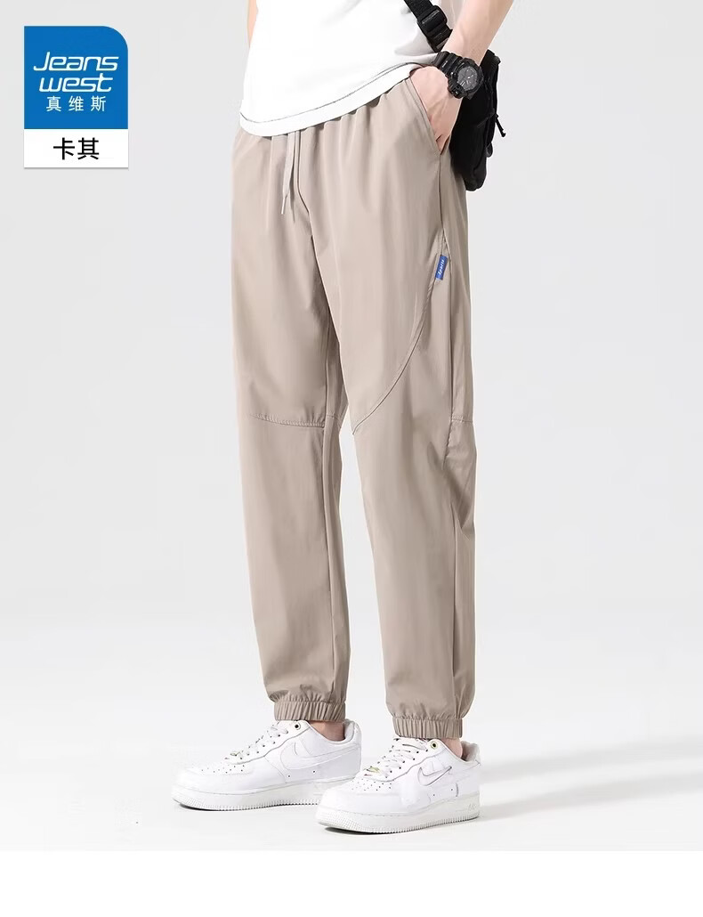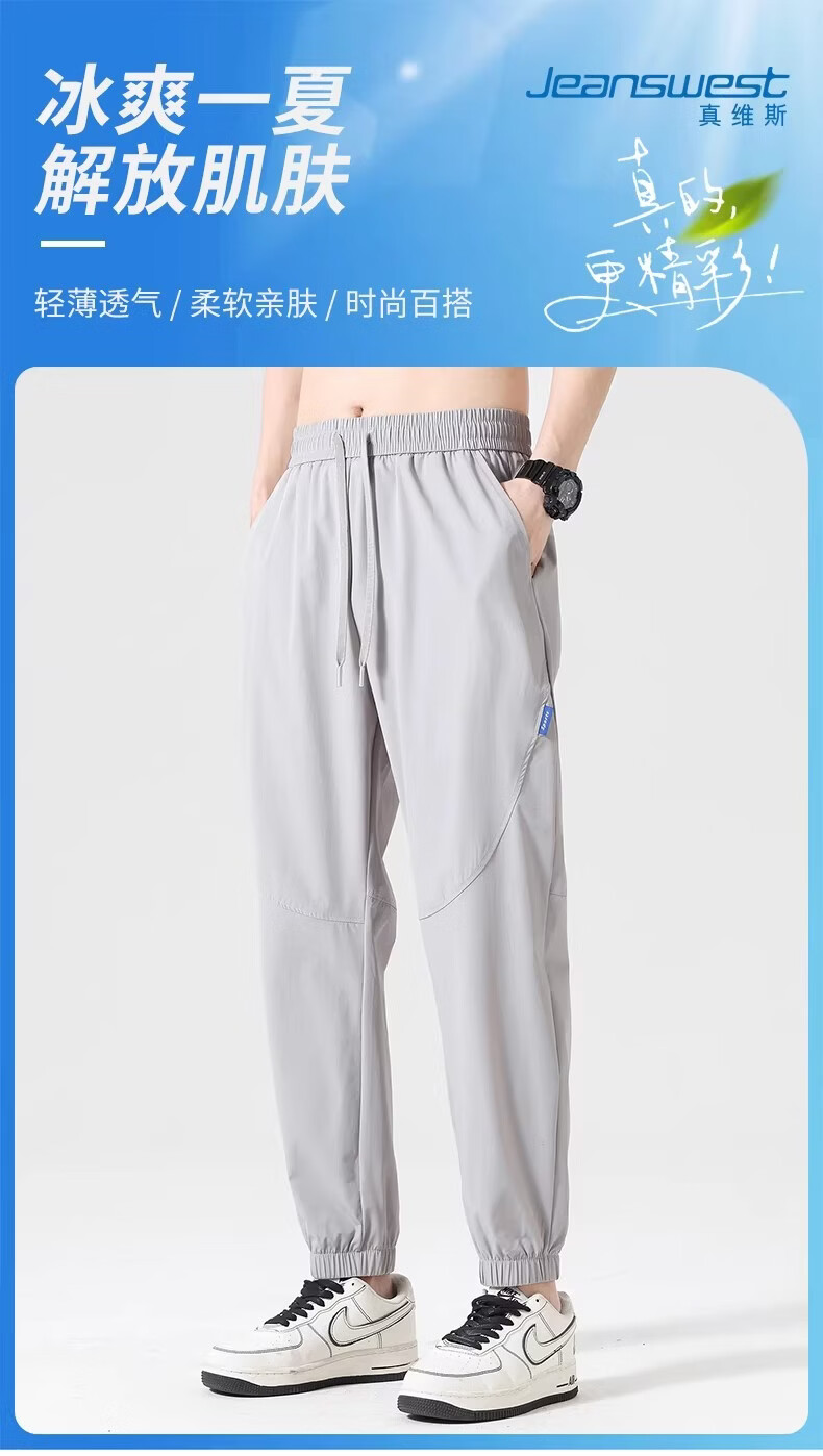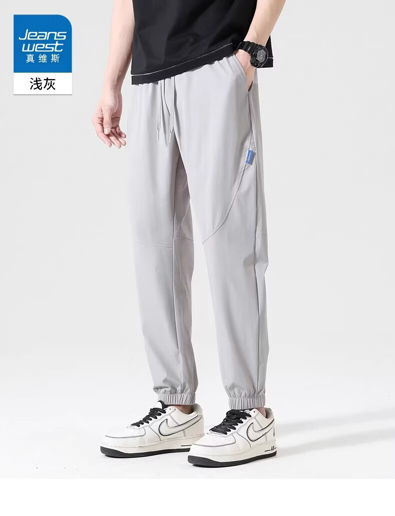 真维斯(Jeanswest)美式冰丝轻薄透气休闲裤男士夏季薄款时尚潮流宽松百搭长裤 浅灰 【亲肤透气】 M 【建议95-120斤】