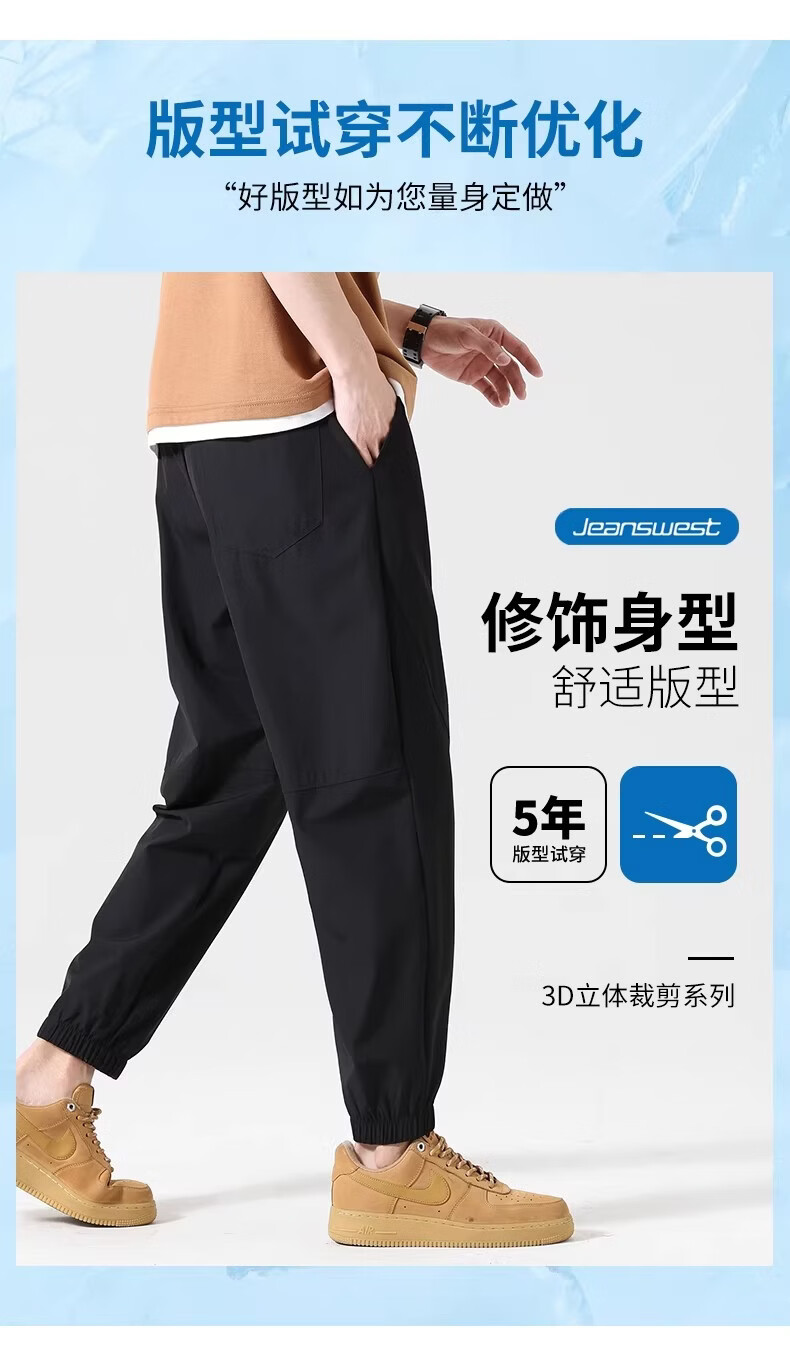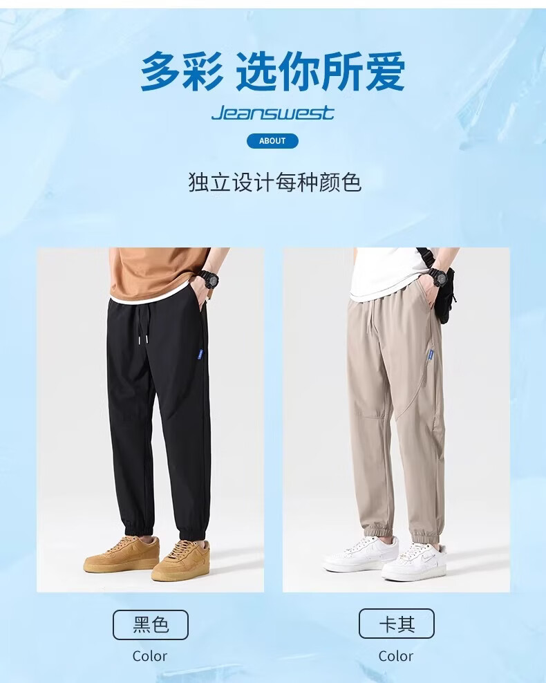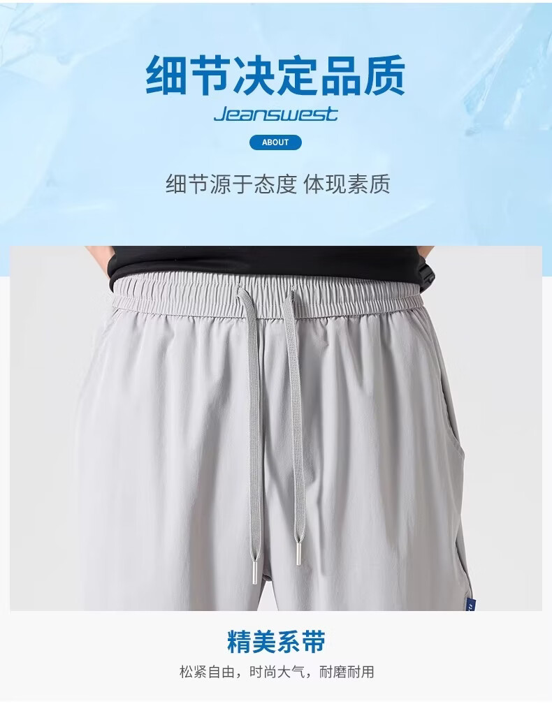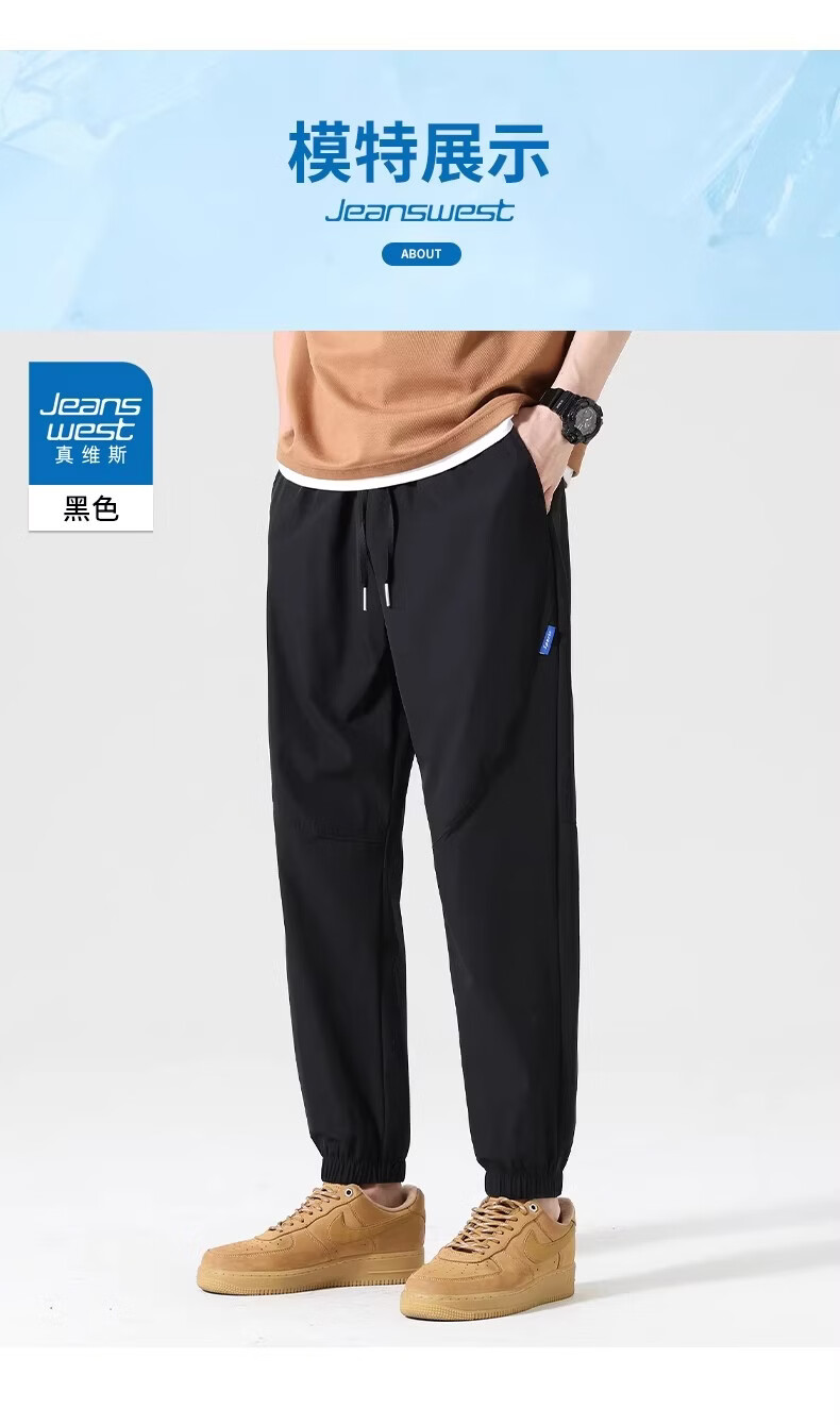 真维斯(Jeanswest)美式冰丝轻薄透气休闲裤男士夏季薄款时尚潮流宽松百搭长裤 浅灰 【亲肤透气】 M 【建议95-120斤】