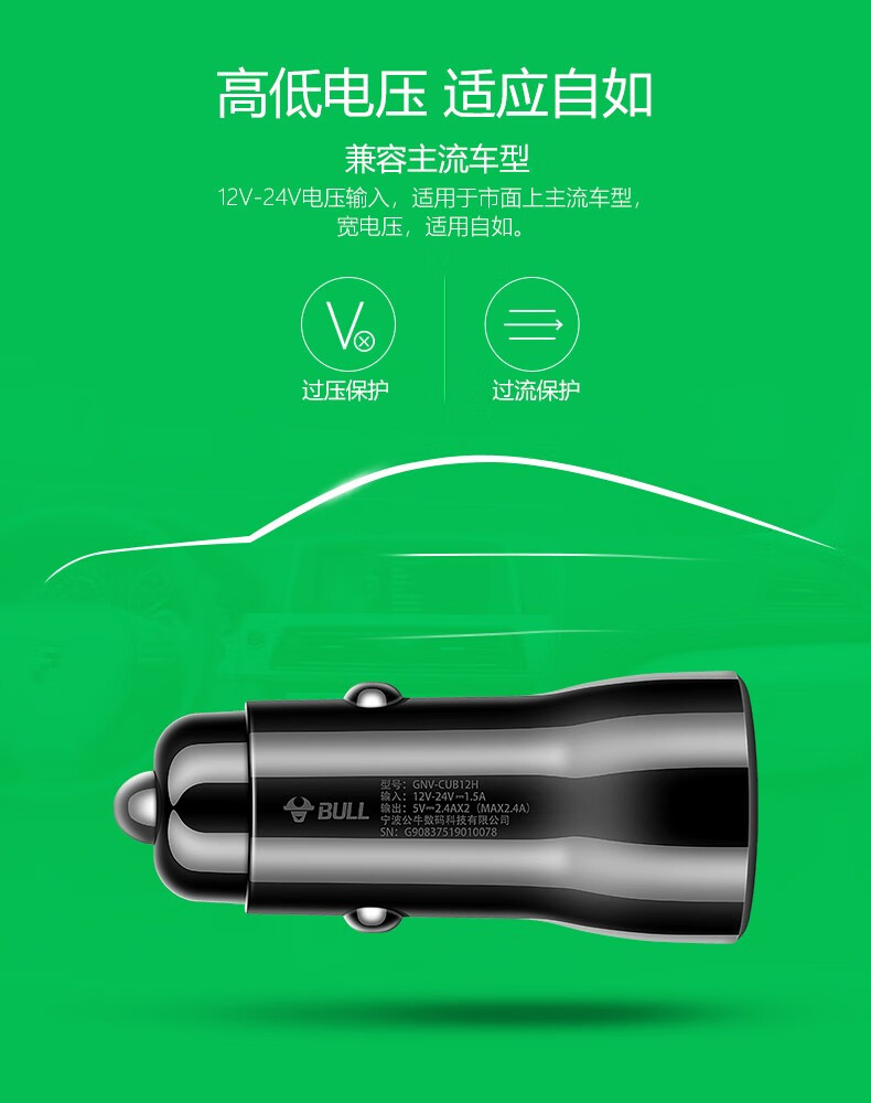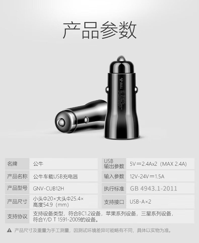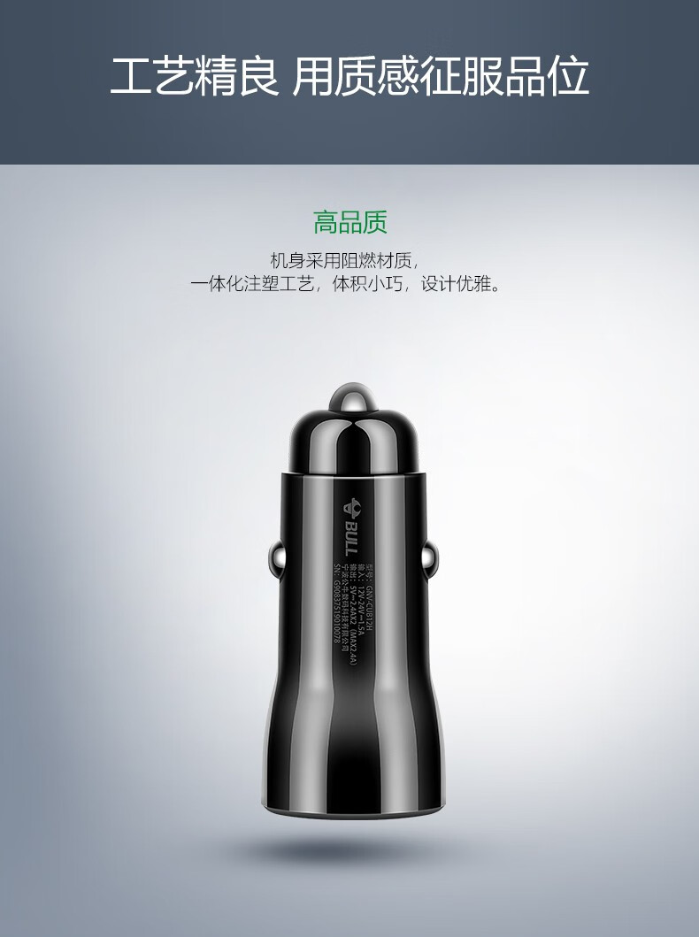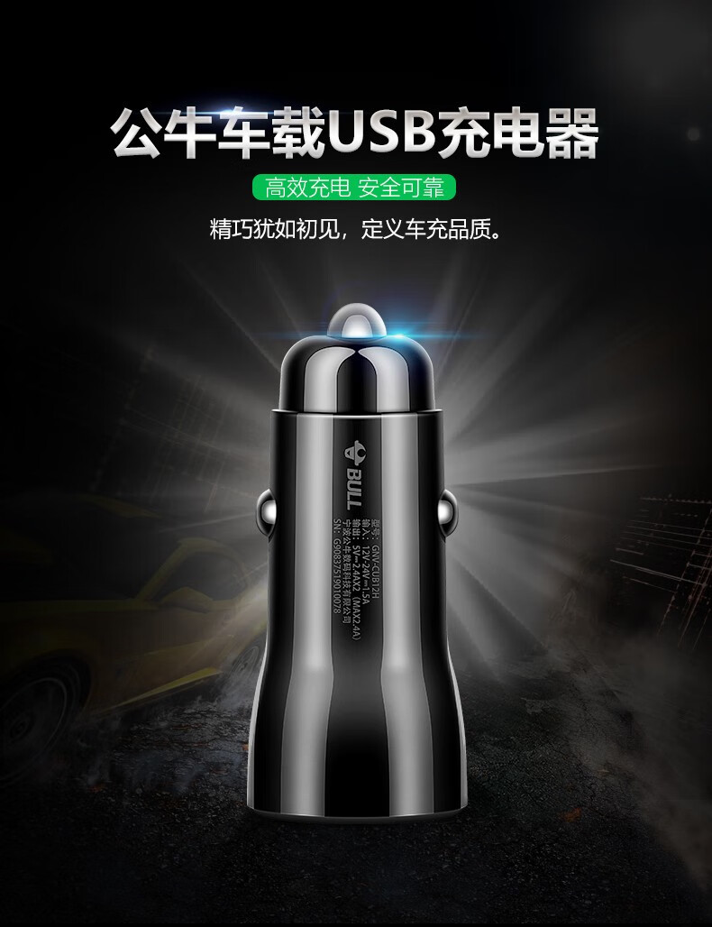 公牛(BULL)车载充电器/车充点烟器 车充/双口USB一拖二车载吸尘器放电转接头 黑色塑料双USB一拖二GNV-CUB12H