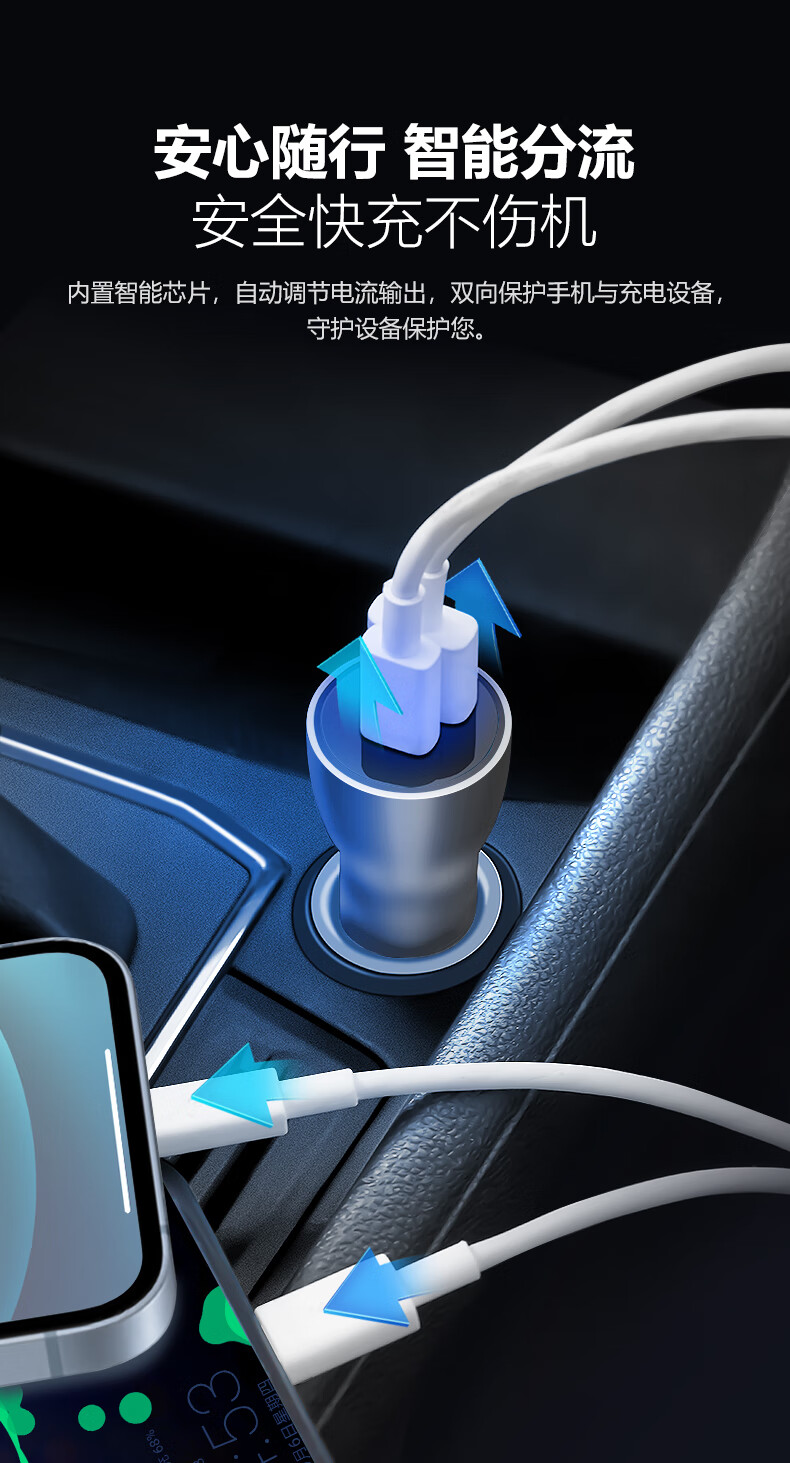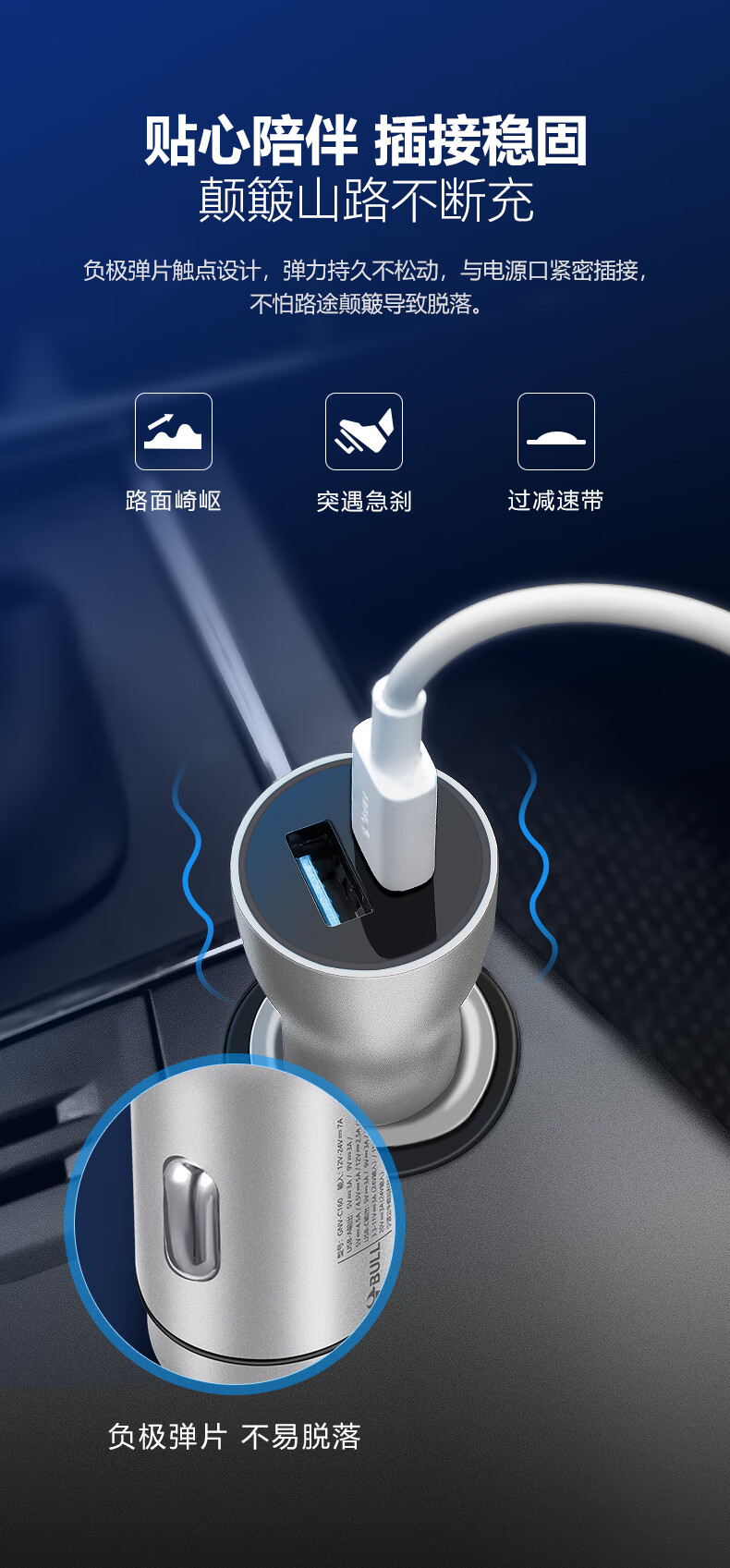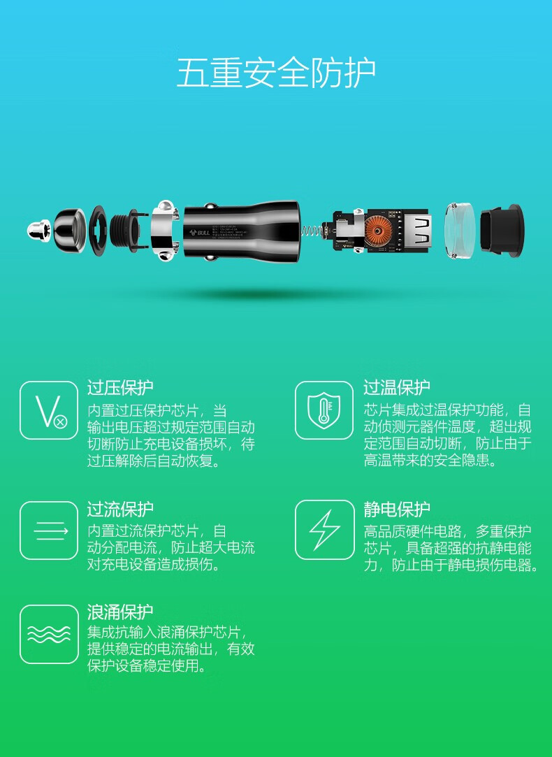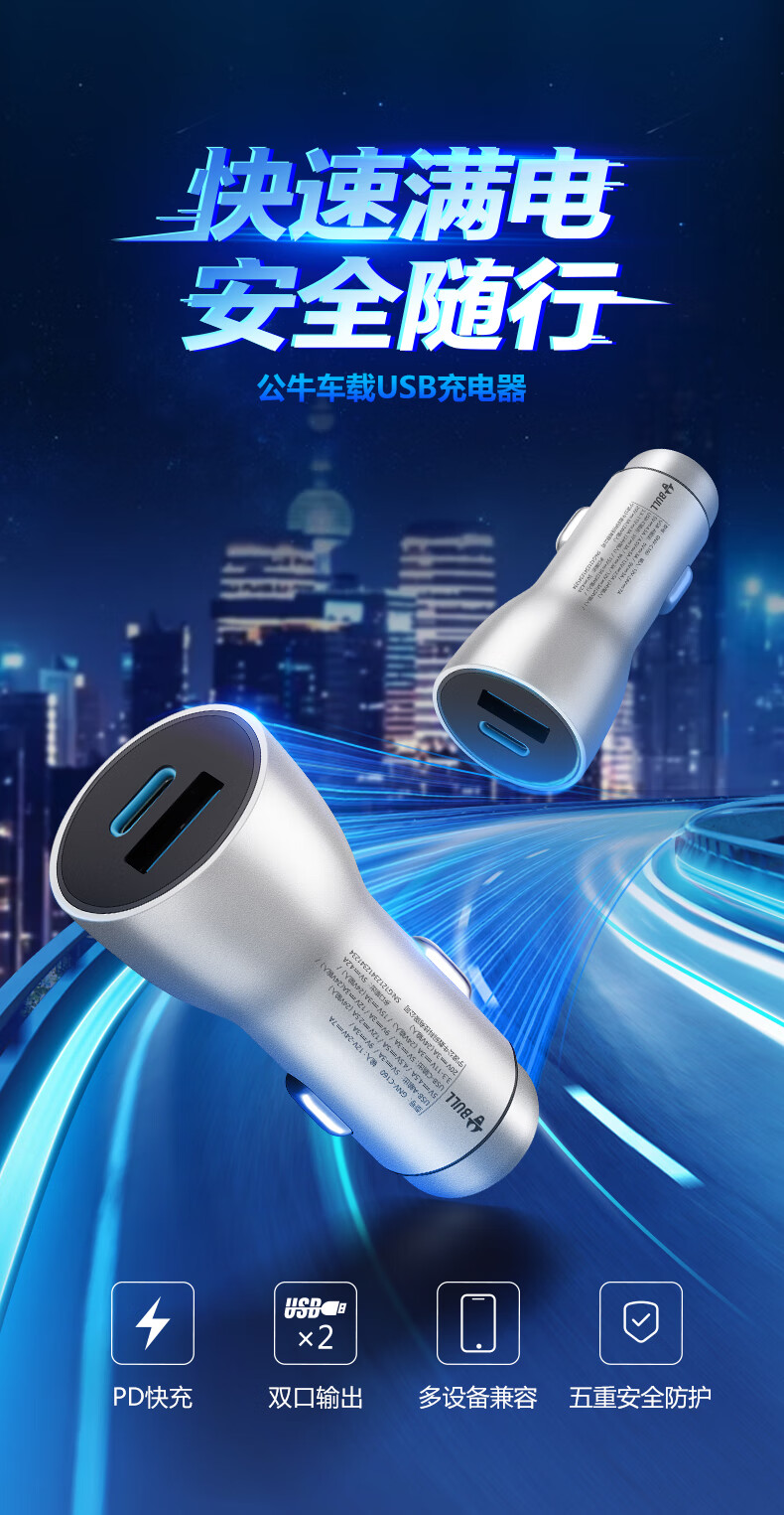 公牛(BULL)车载充电器/车充点烟器 车充/双口USB一拖二车载吸尘器放电转接头 黑色塑料双USB一拖二GNV-CUB12H