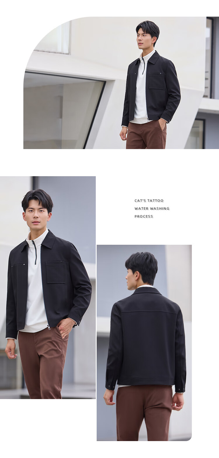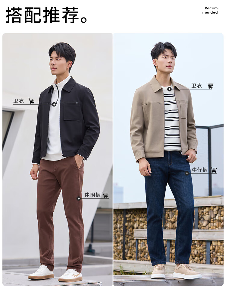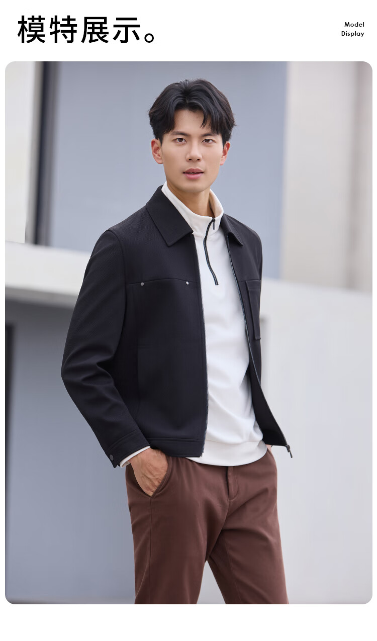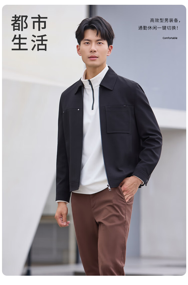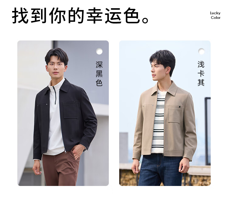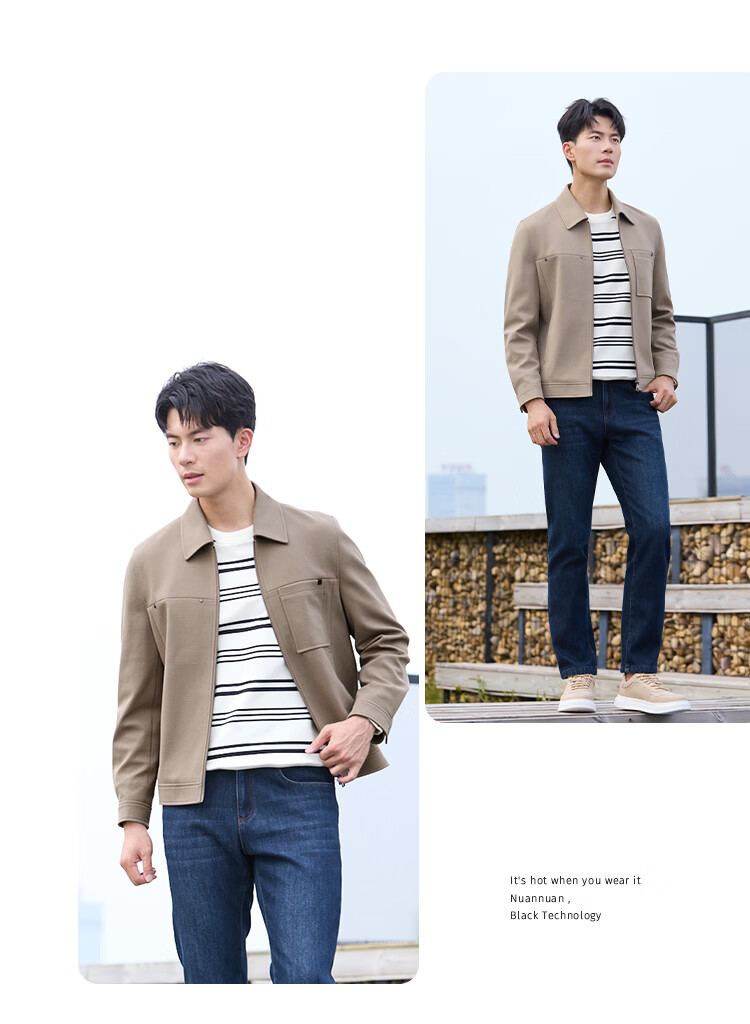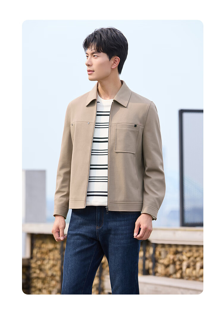 莱克斯顿(laxdn)夹克外套男秋冬新品保暖防风易打理纯色休闲翻领外套3 浅卡其 M