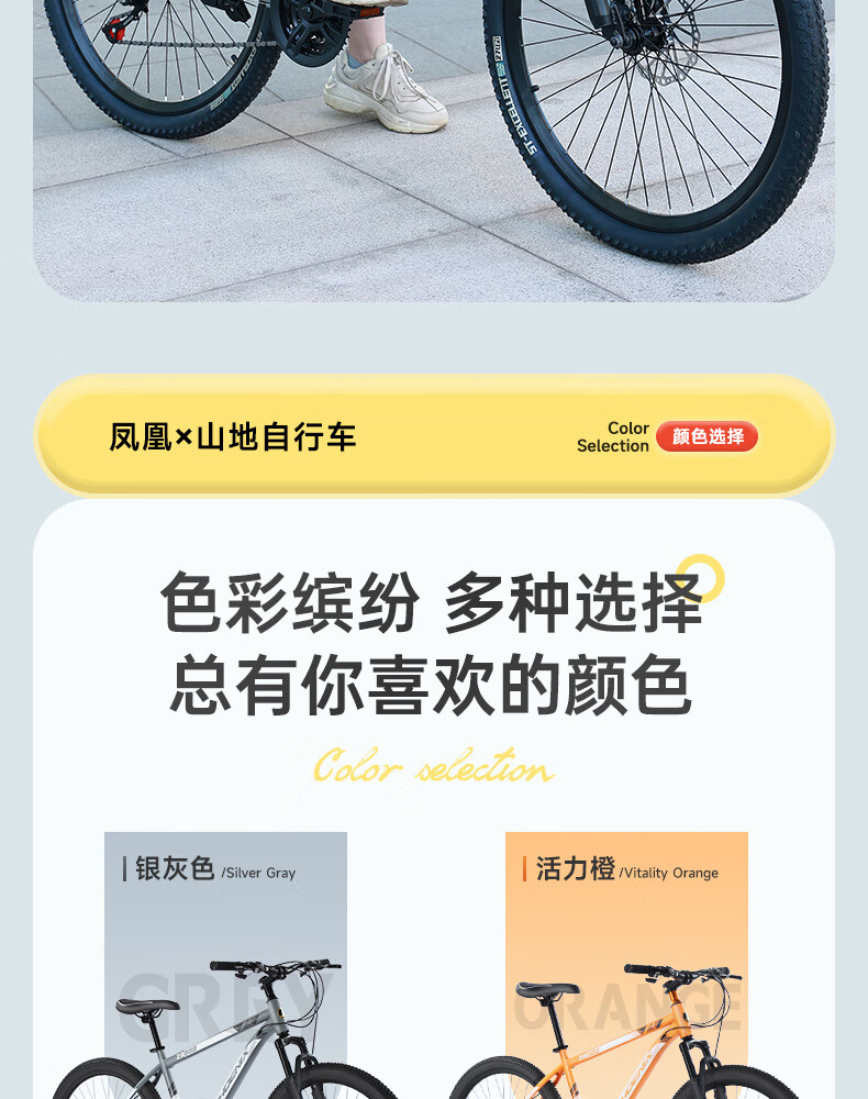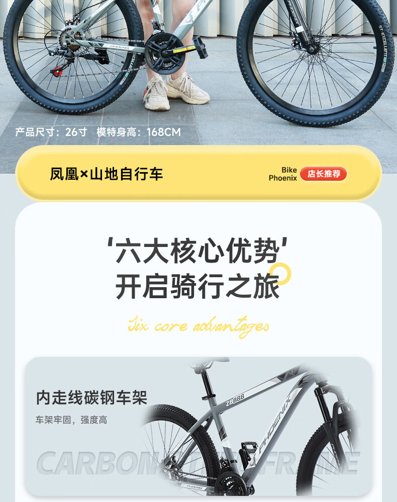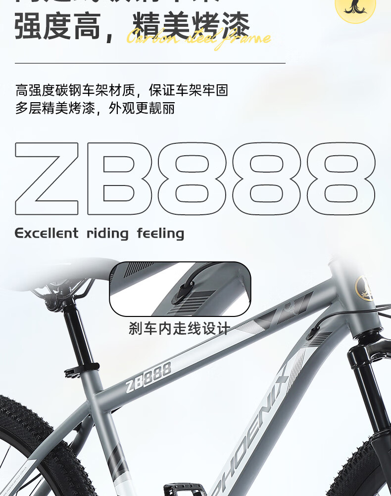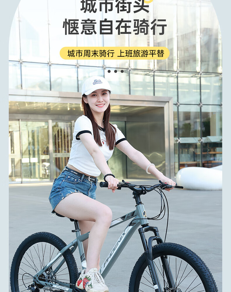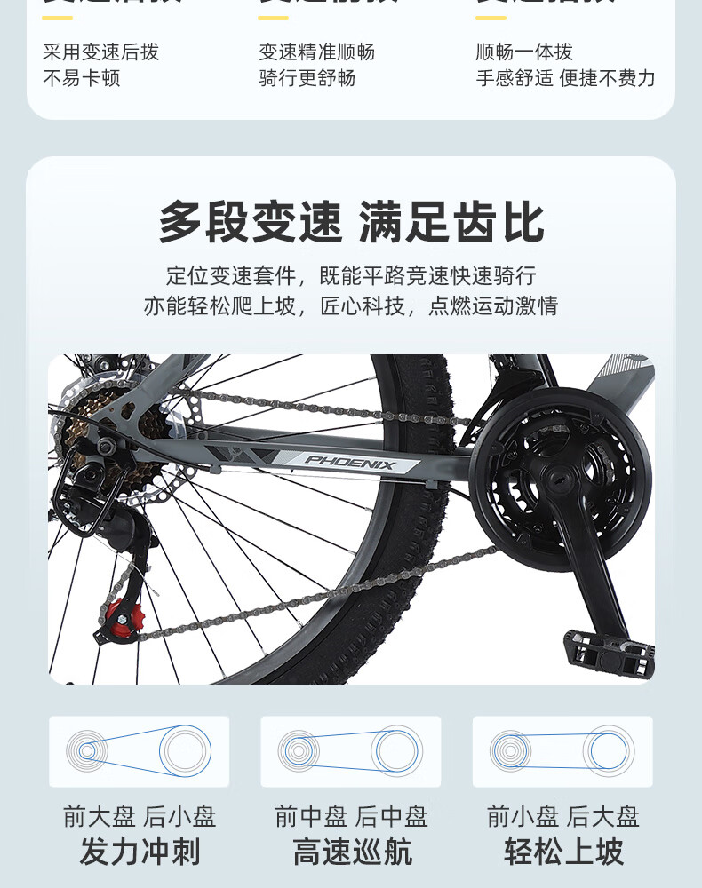 凤凰(Phoenix)山地自行车成人学生儿童碟刹越野变速单车 ZB888 26英寸24速灰色