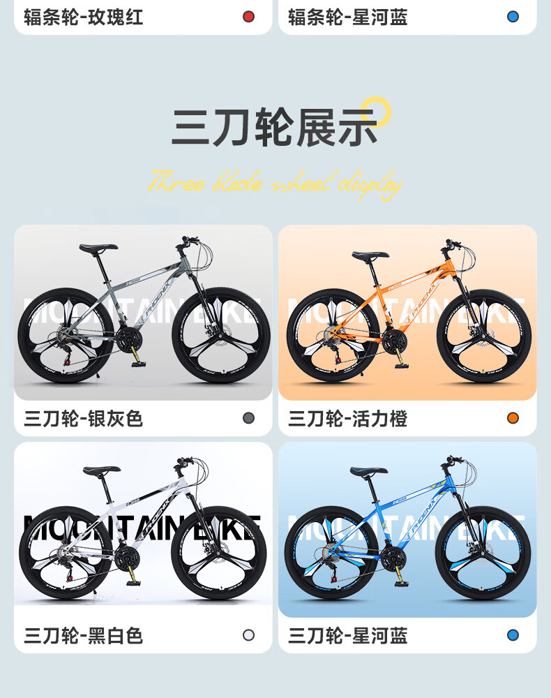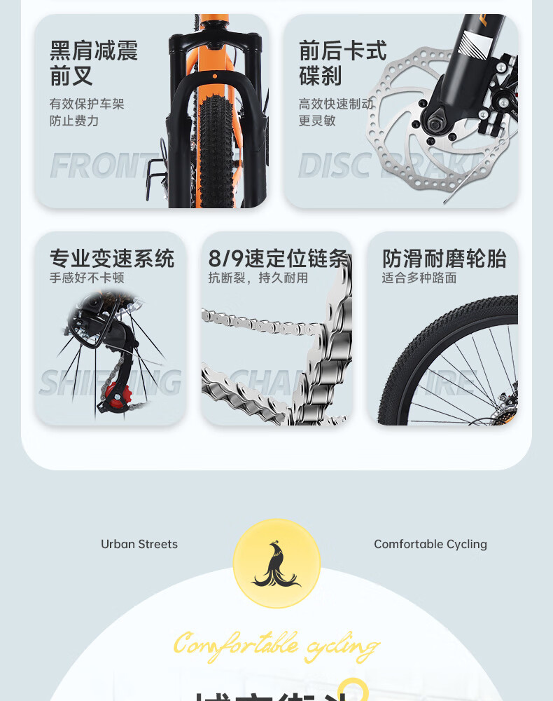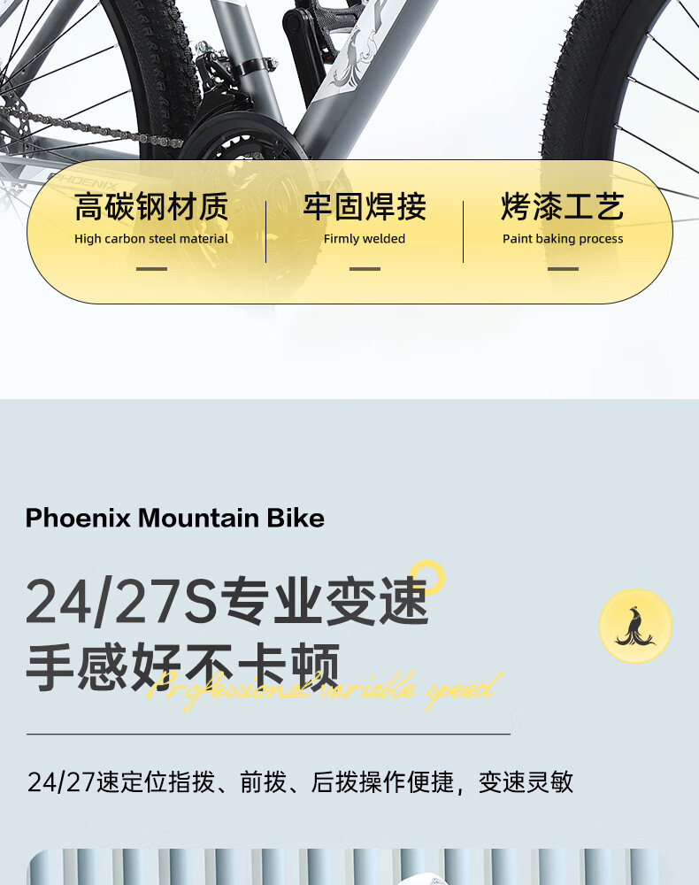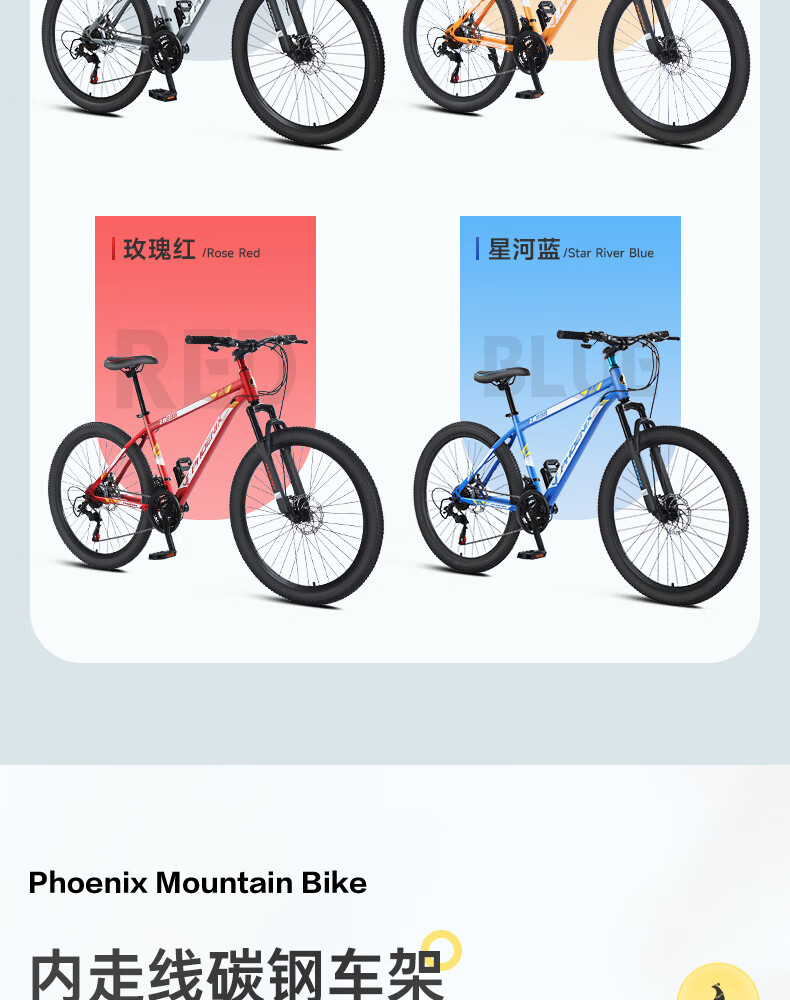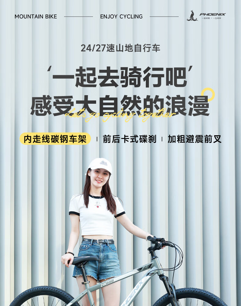 凤凰(Phoenix)山地自行车成人学生儿童碟刹越野变速单车 ZB888 26英寸24速灰色