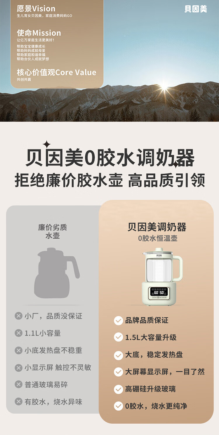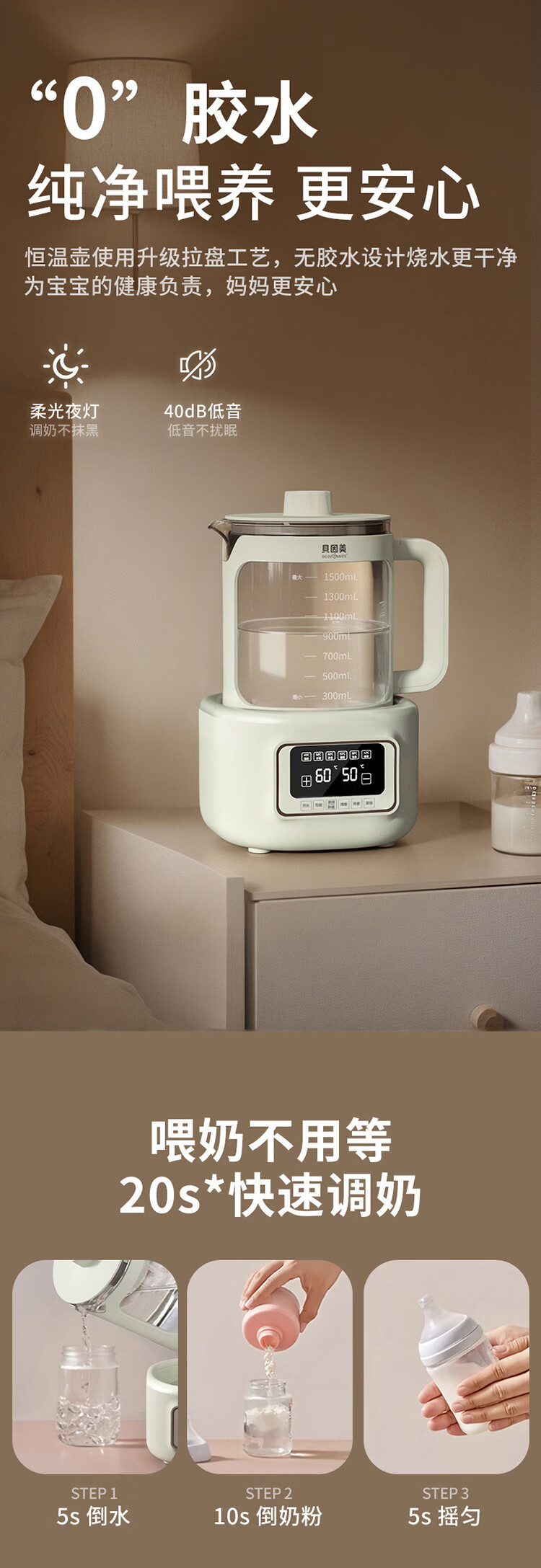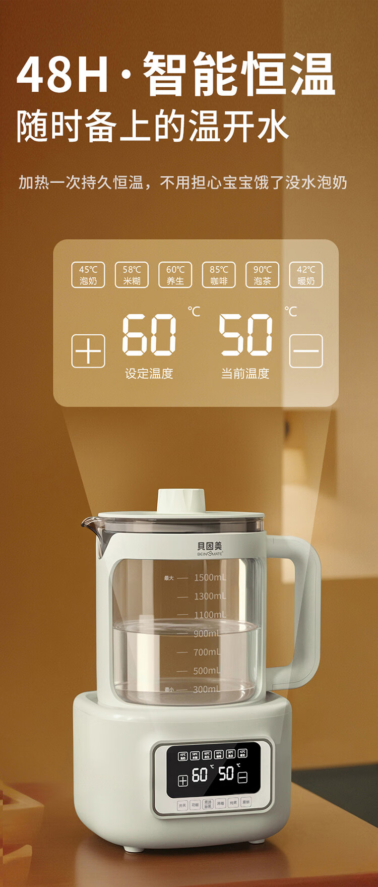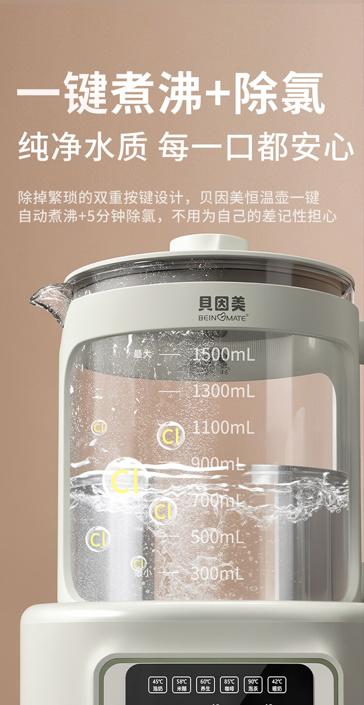 贝因美(Beingmate)【热门商品】恒温水壶0胶水婴儿调奶器家用冲奶粉电热烧水 1.5L