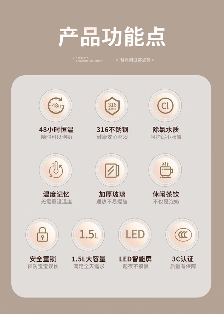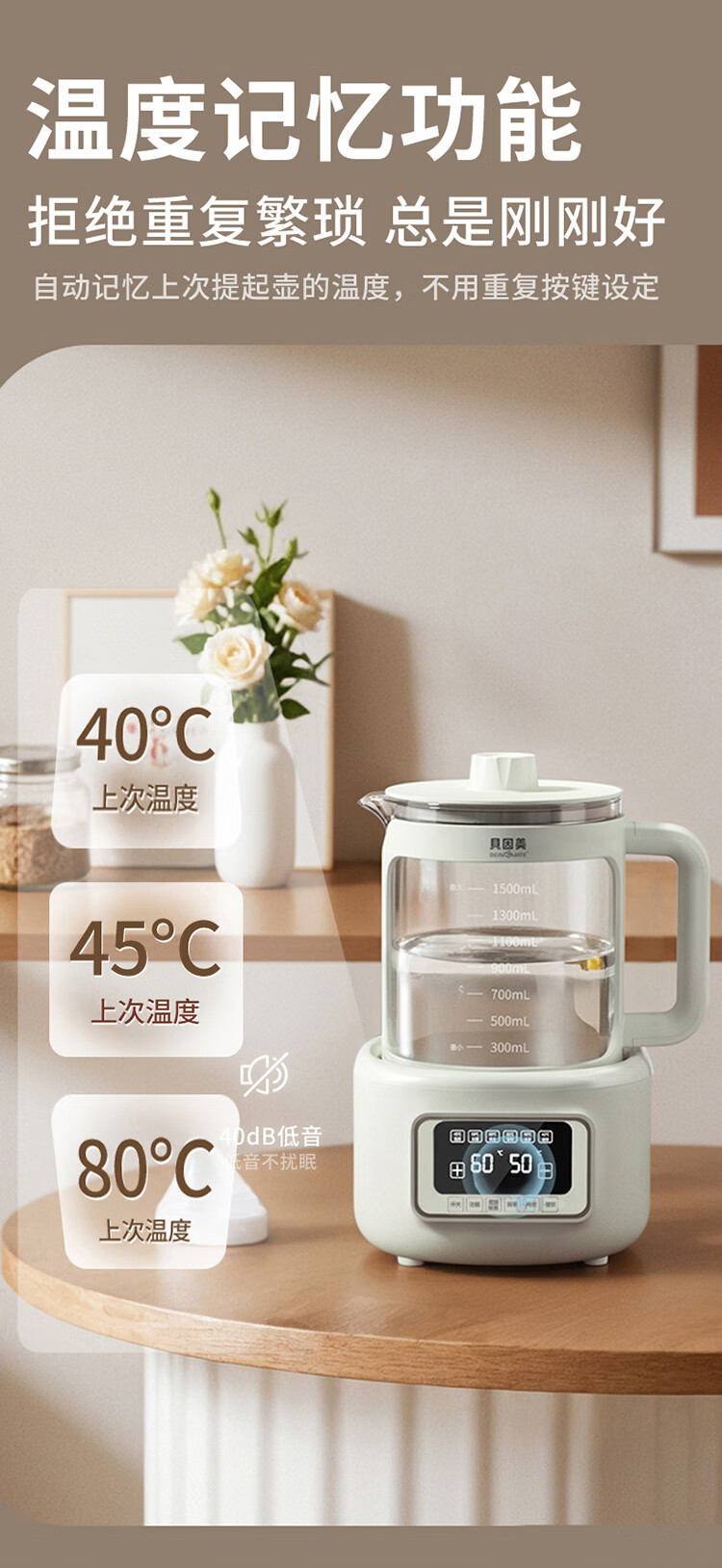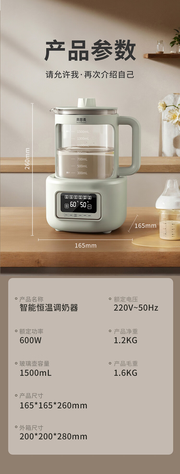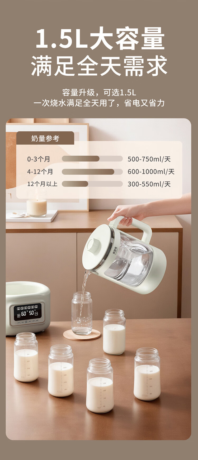 贝因美(Beingmate)【热门商品】恒温水壶0胶水婴儿调奶器家用冲奶粉电热烧水 1.5L