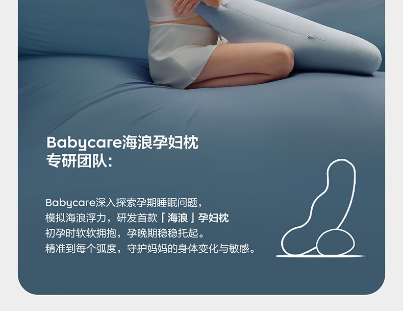 babycare海浪孕妇枕头护腰侧卧枕托腹侧睡枕长条靠枕孕期睡觉 海岸蓝