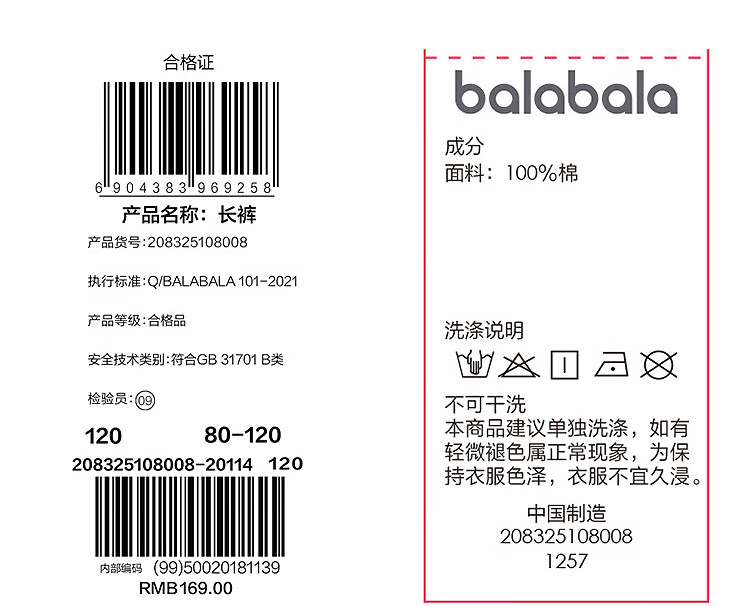 巴拉巴拉balaOne宝宝长裤裤子女童2025秋休闲裤甜美时尚208325108008