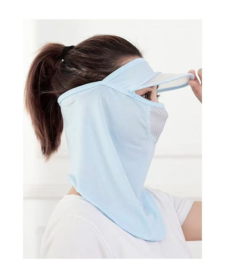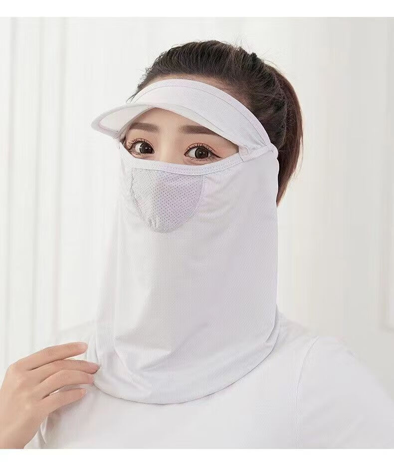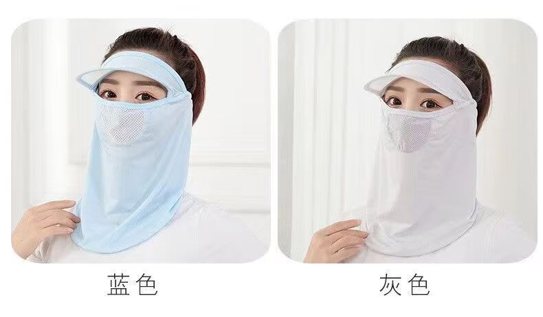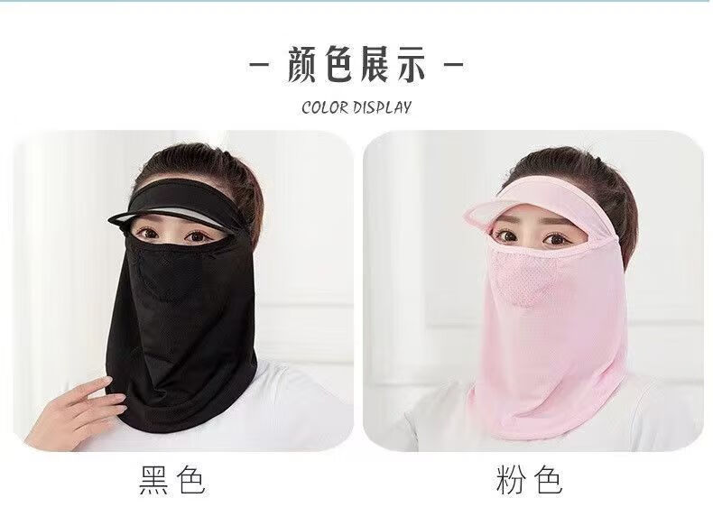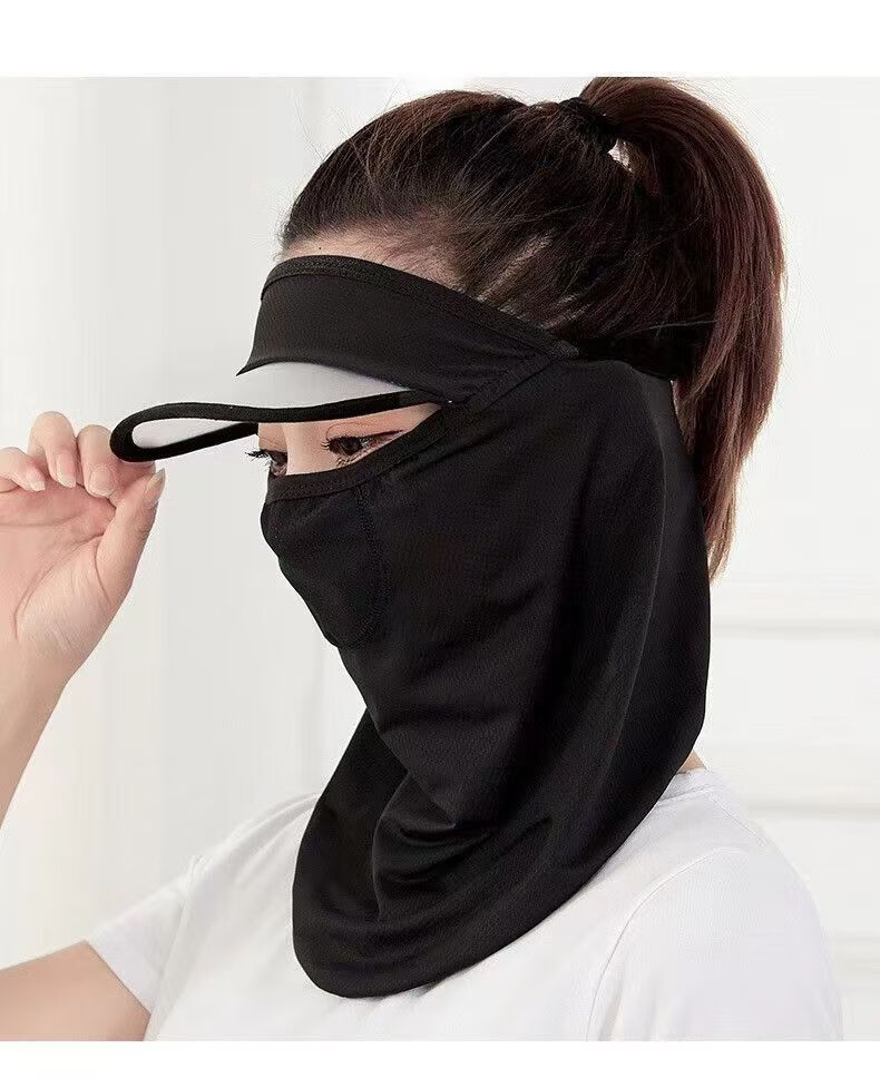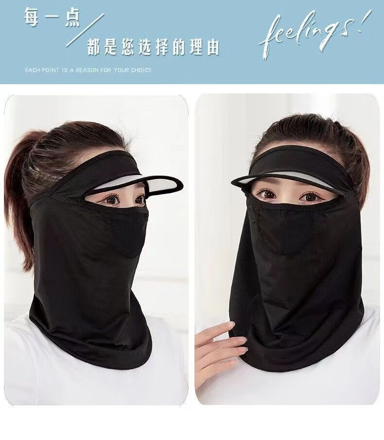 |夏季脸部防晒面罩呼吸面膜带帽檐口罩呼吸款冰丝透气遮脸 黑色2个装 防晒面罩