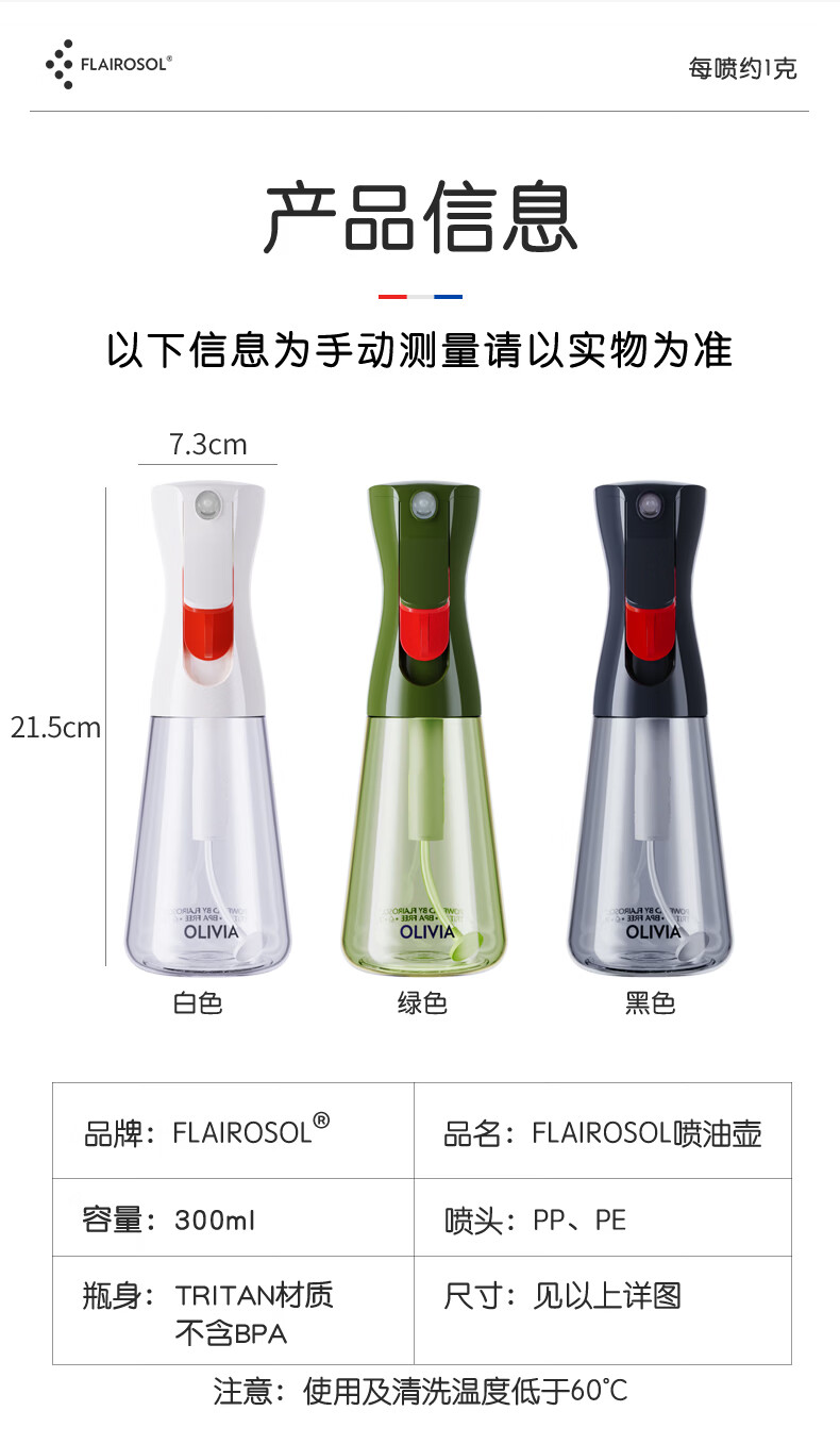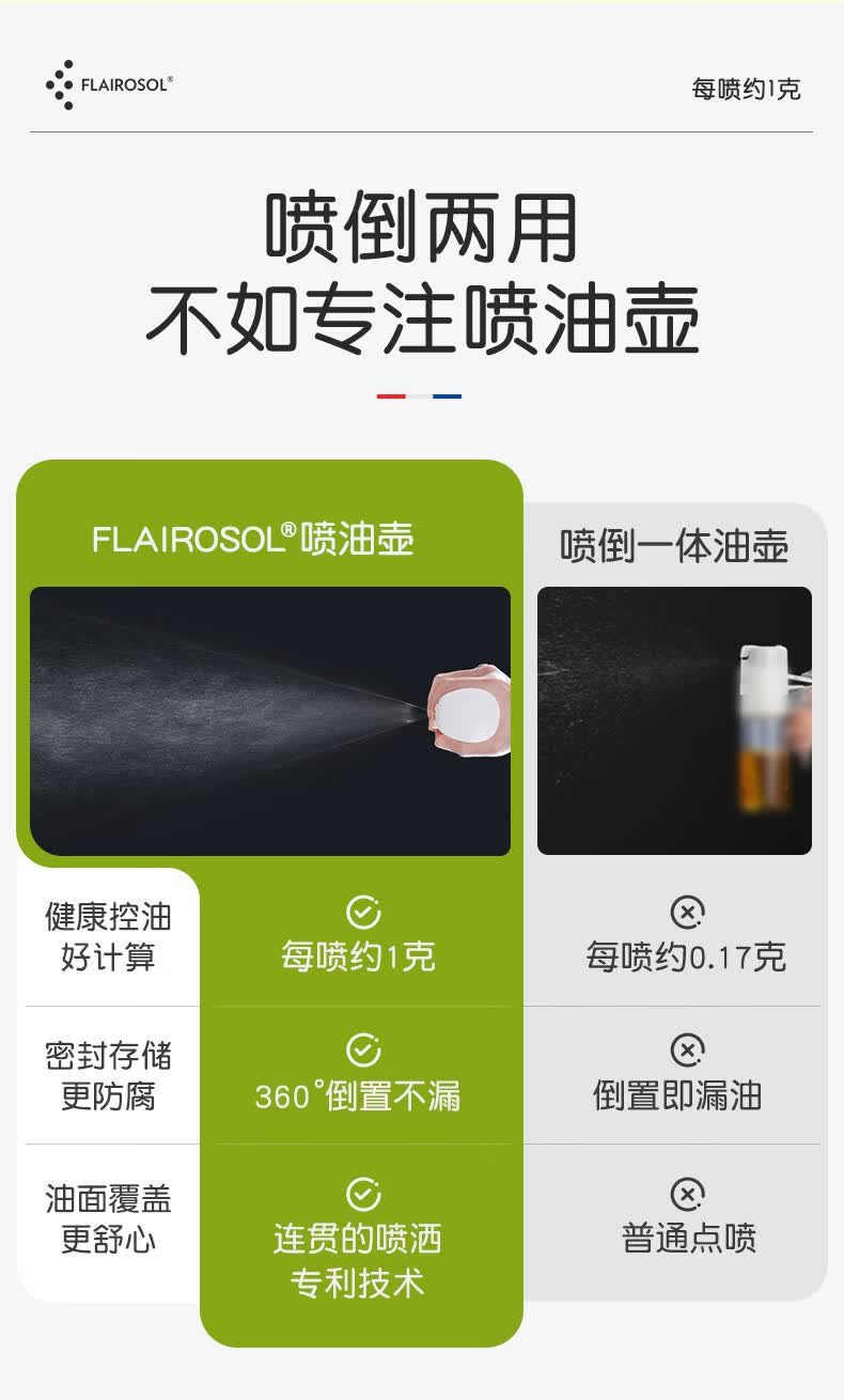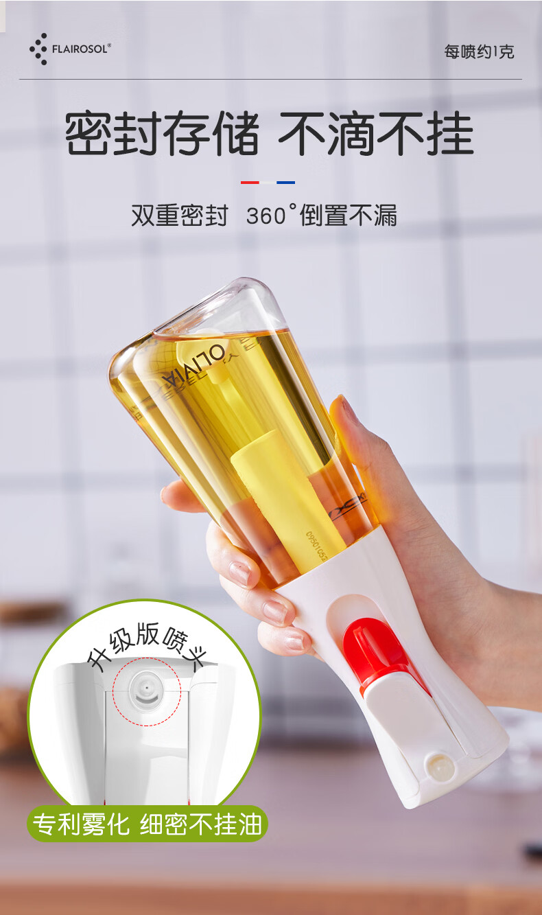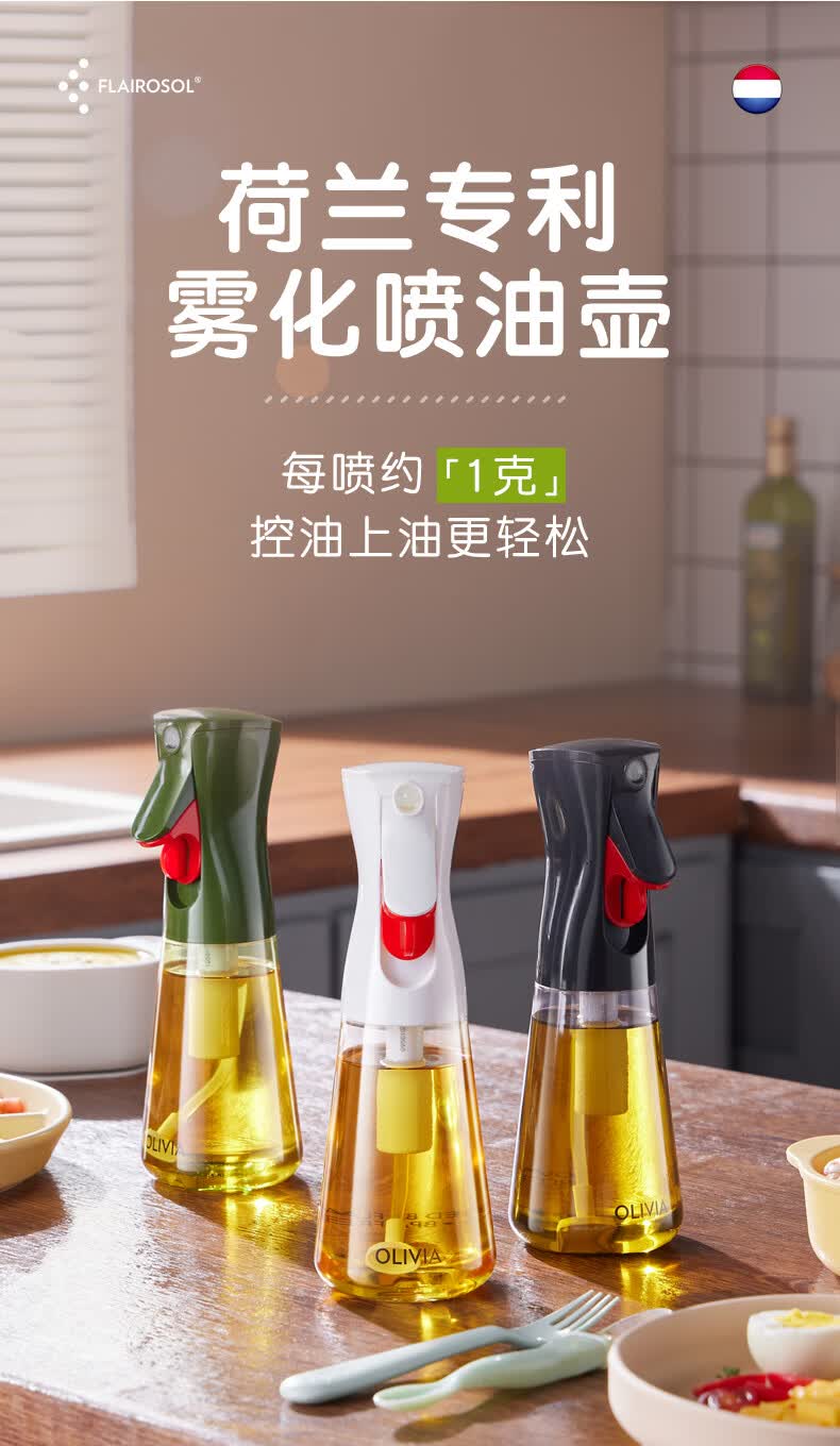 FLAIROSOL新款喷油瓶荷兰专利雾化喷油壶空气炸锅家用厨房控油瓶300ML 300ml绿喷油瓶