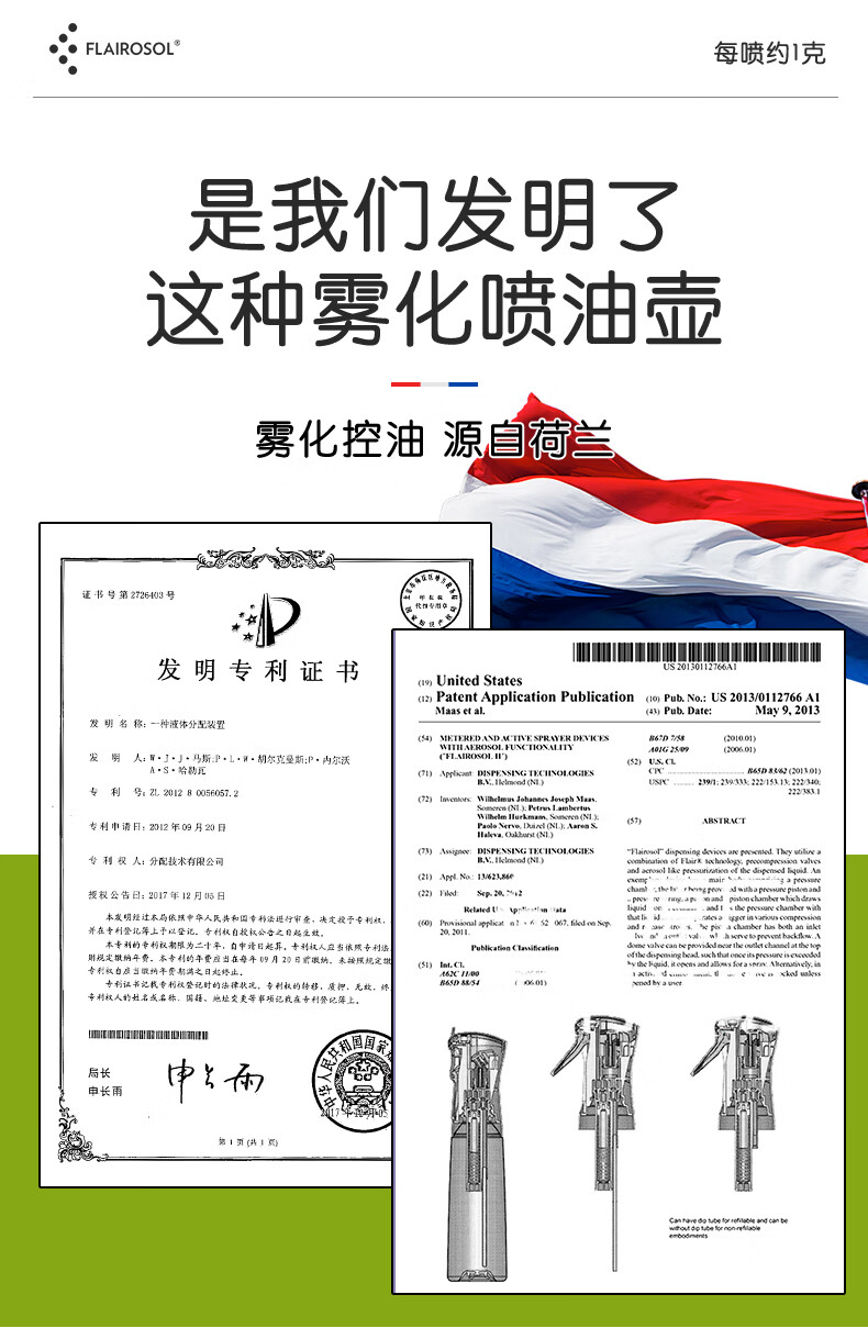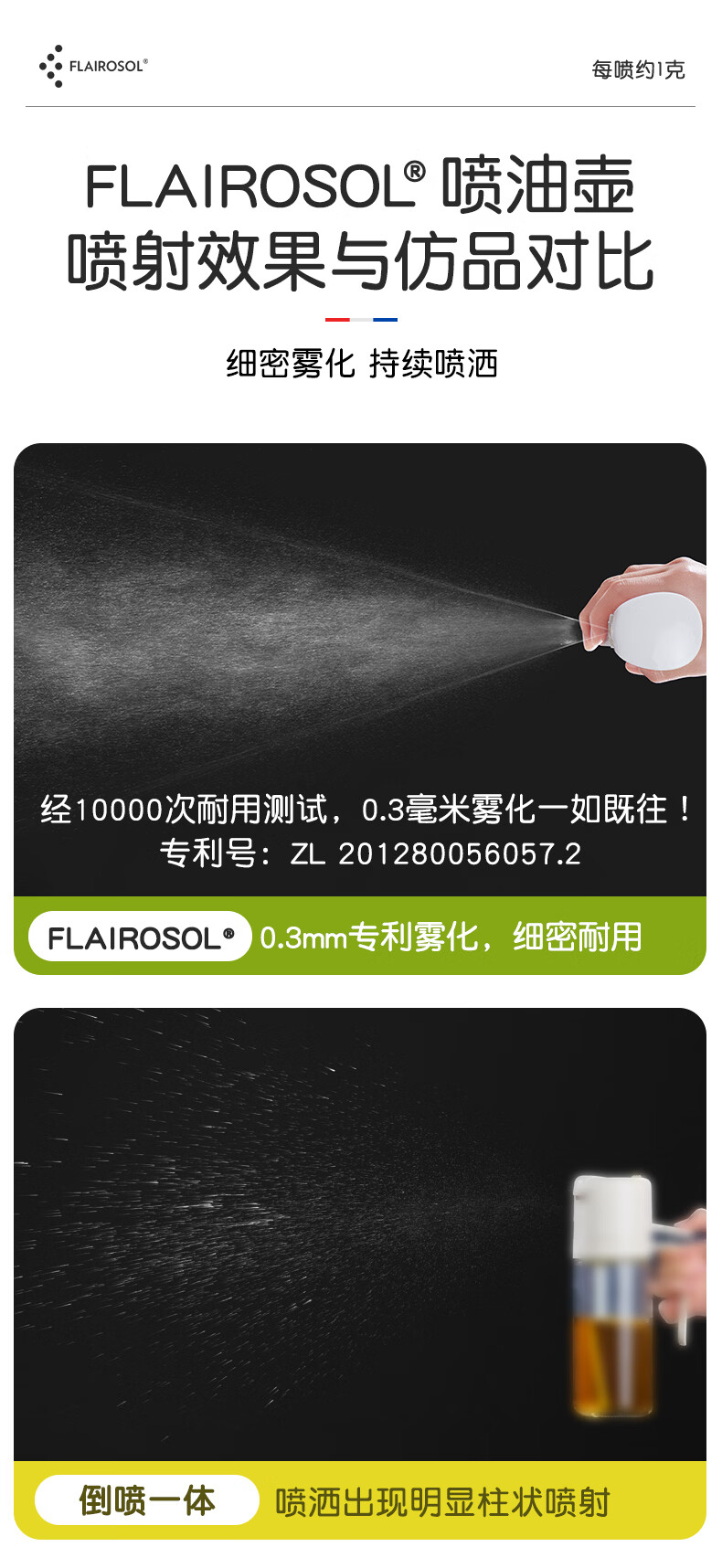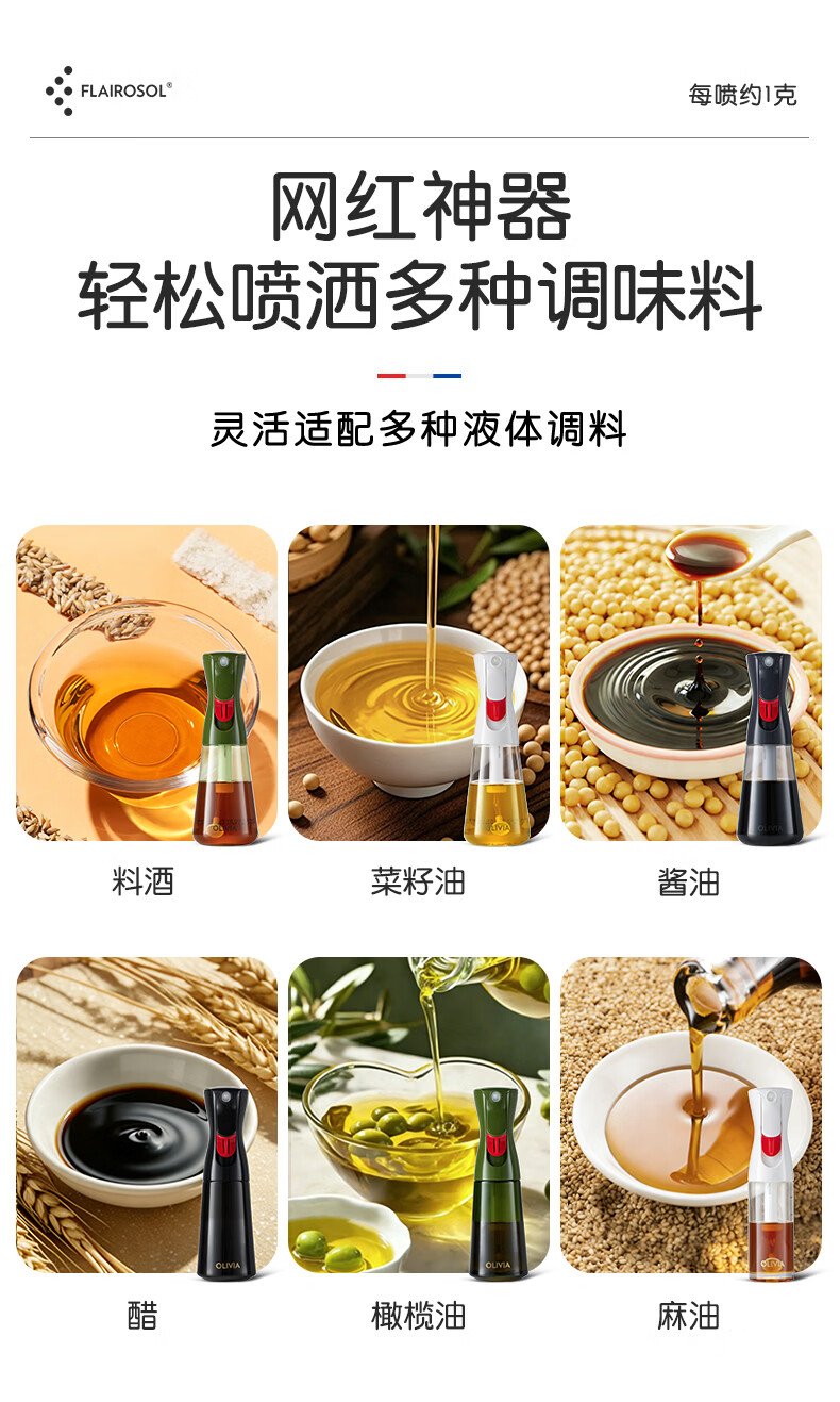 FLAIROSOL新款喷油瓶荷兰专利雾化喷油壶空气炸锅家用厨房控油瓶300ML 300ml绿喷油瓶