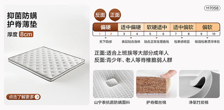 海马天然乳胶椰棕黄麻护脊席梦思防螨1.8米软硬独立袋装弹簧床垫 独立弹簧+2cm乳胶(23cm) 1.8*2米