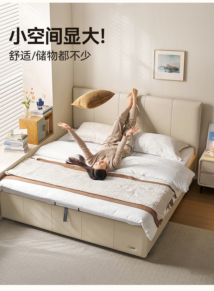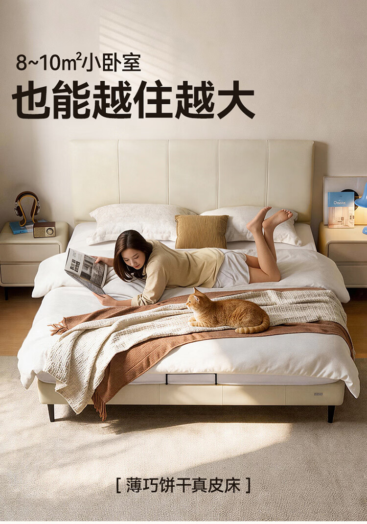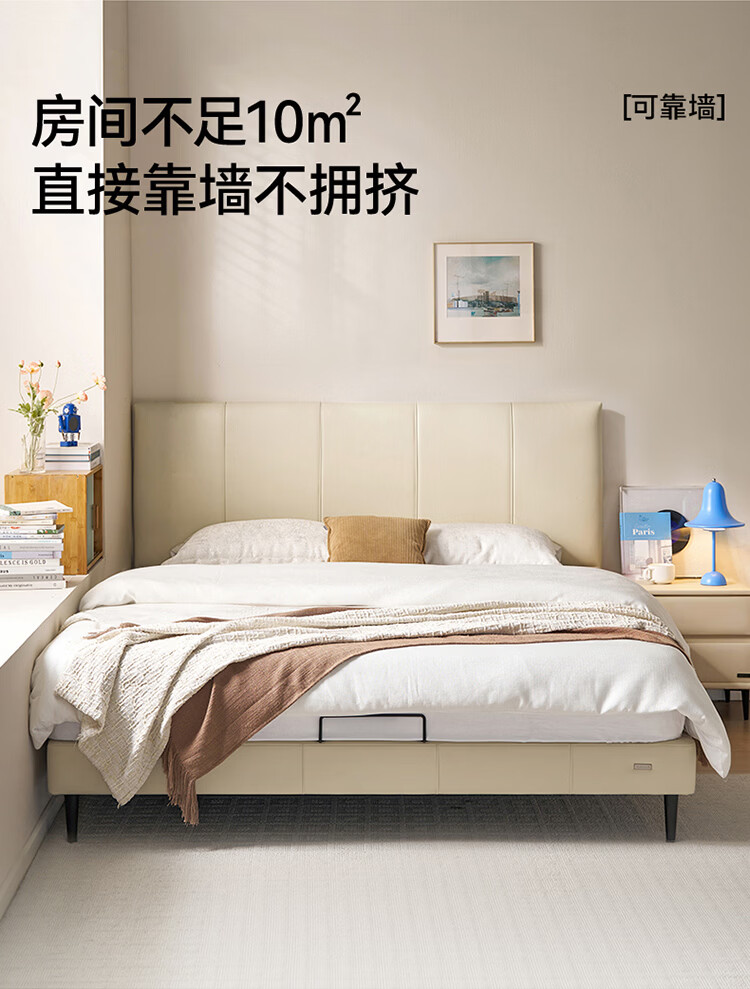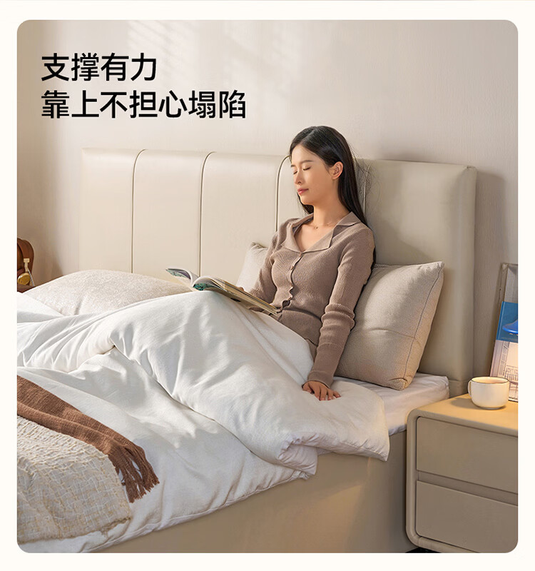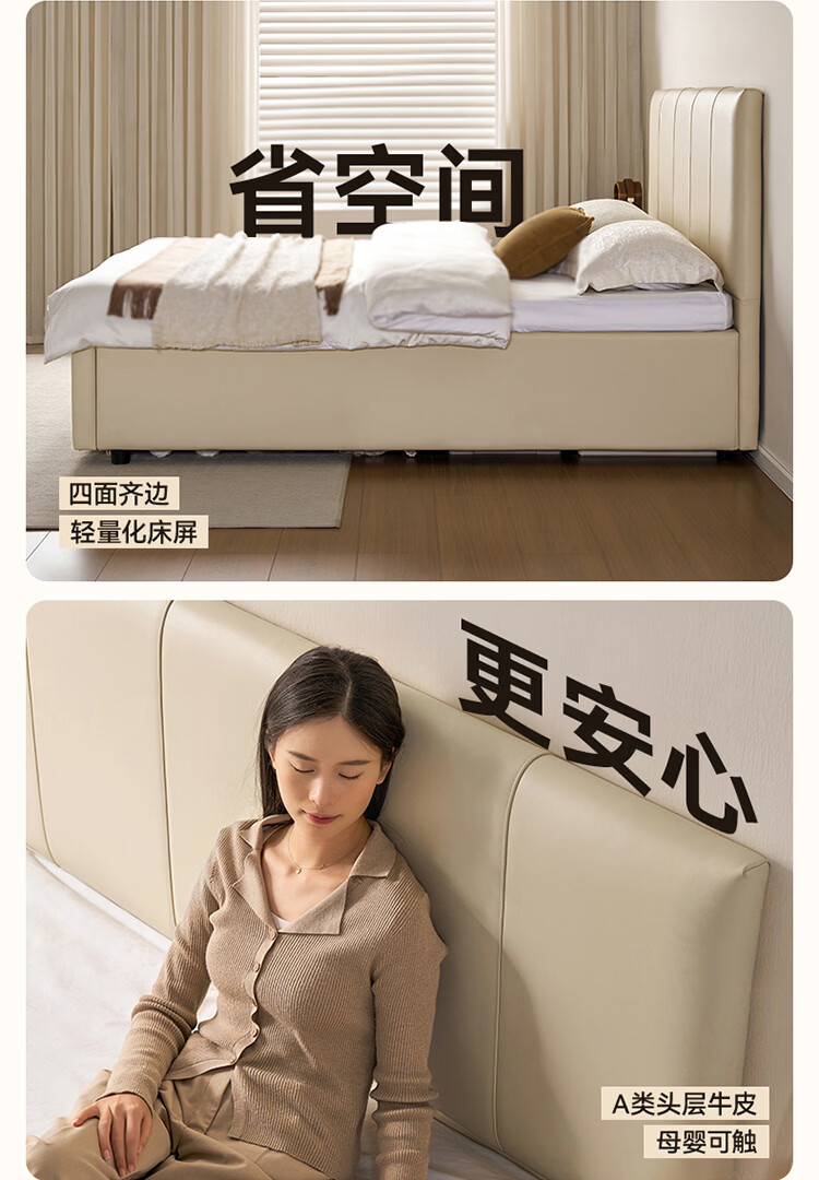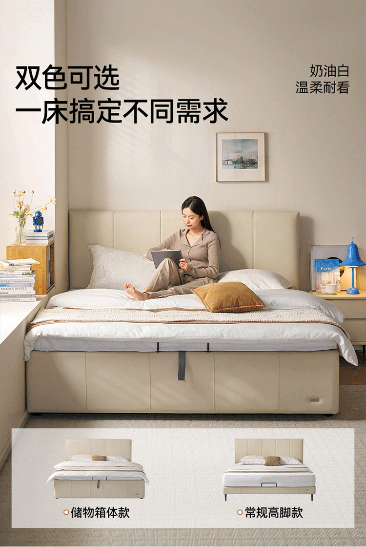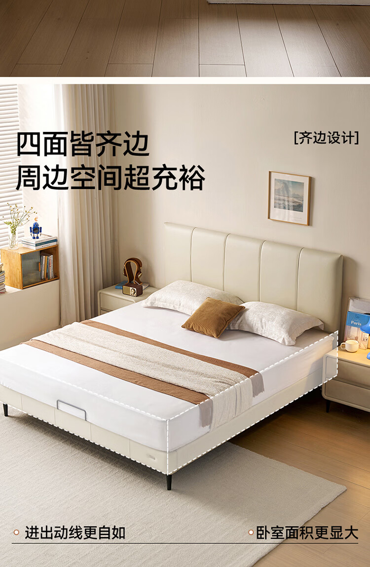 全友家居现代简约皮艺床小户型家用卧室齐边床加床垫一套家具双人大床 【奶油白 | 母婴级头层牛皮】高脚床 1.5米x2米 单床+床垫