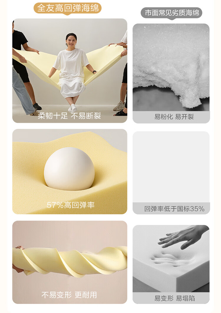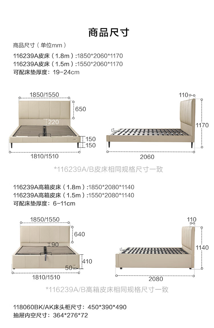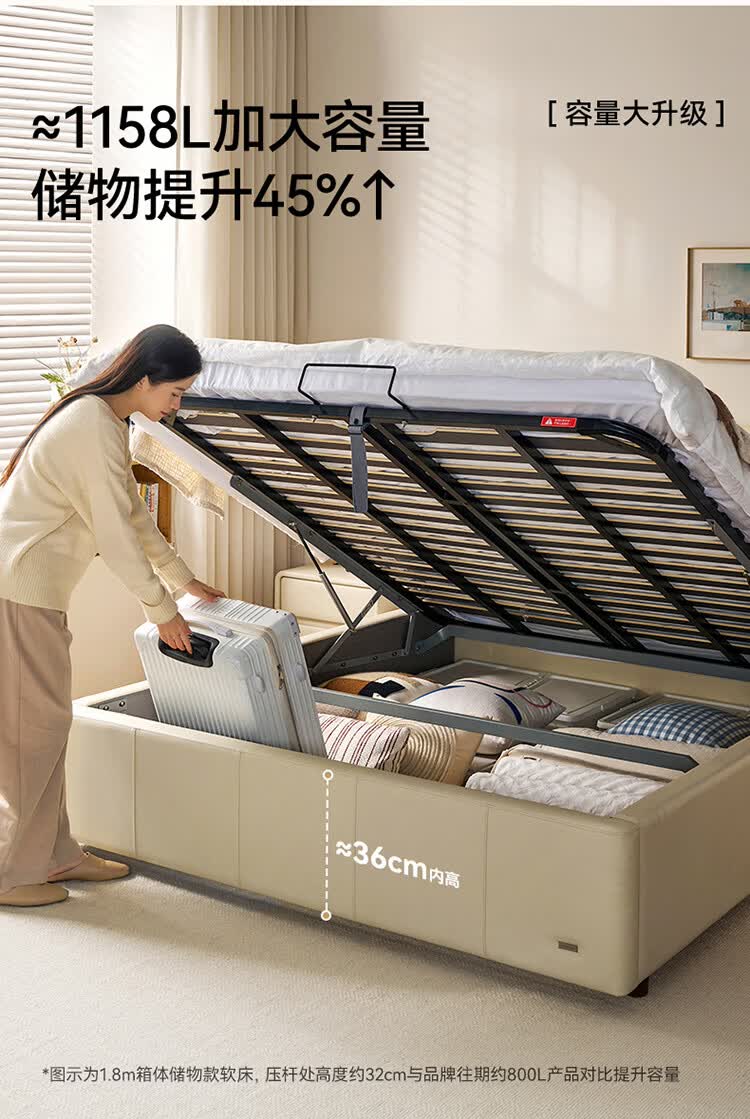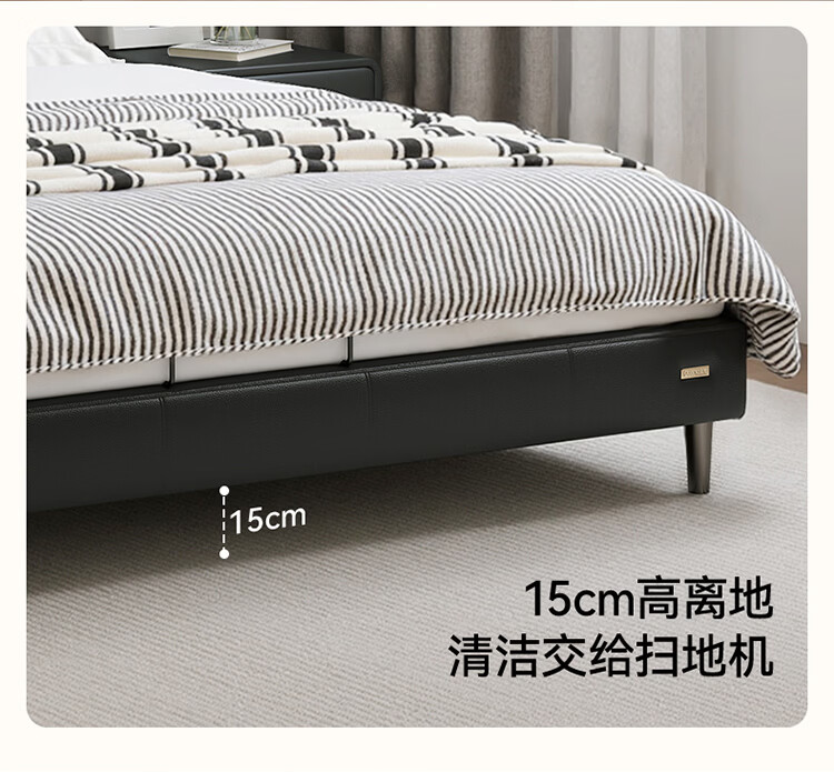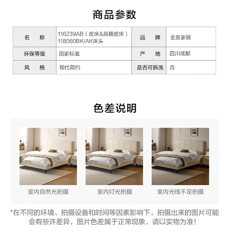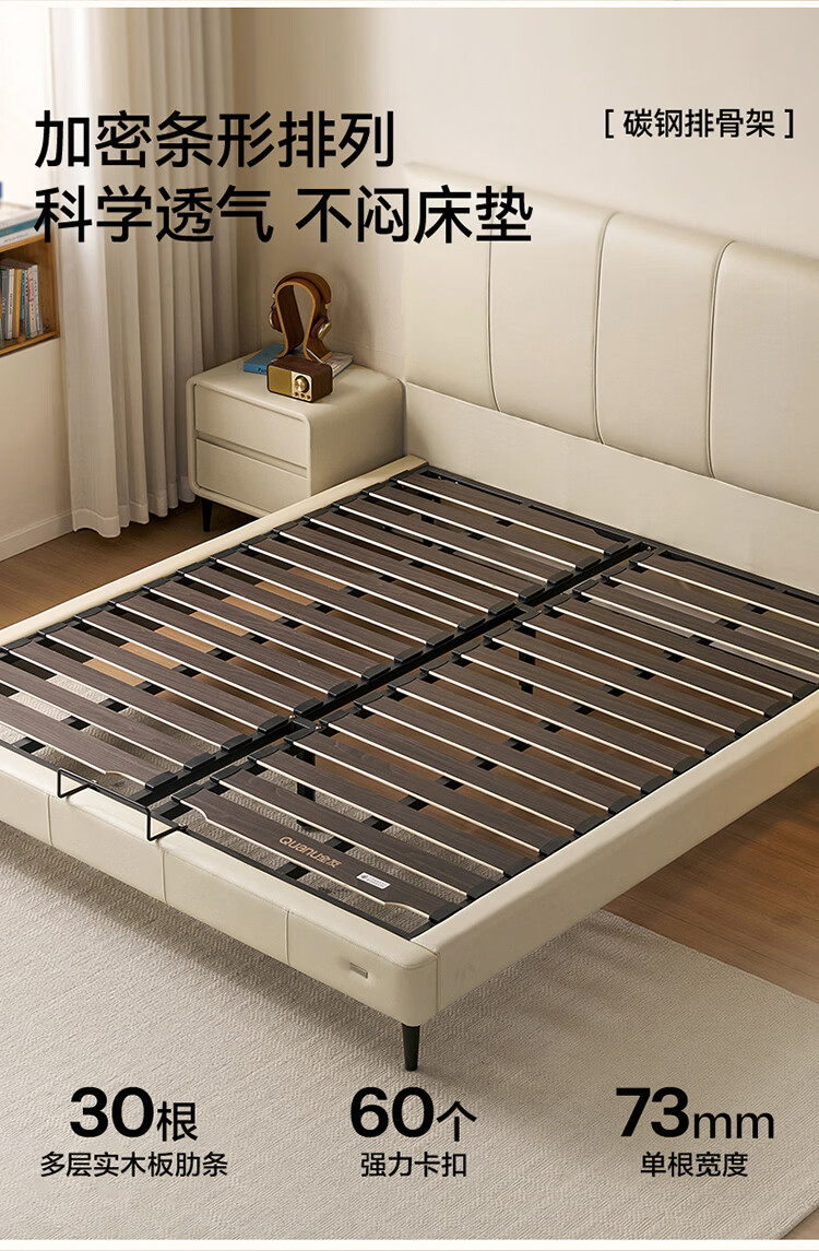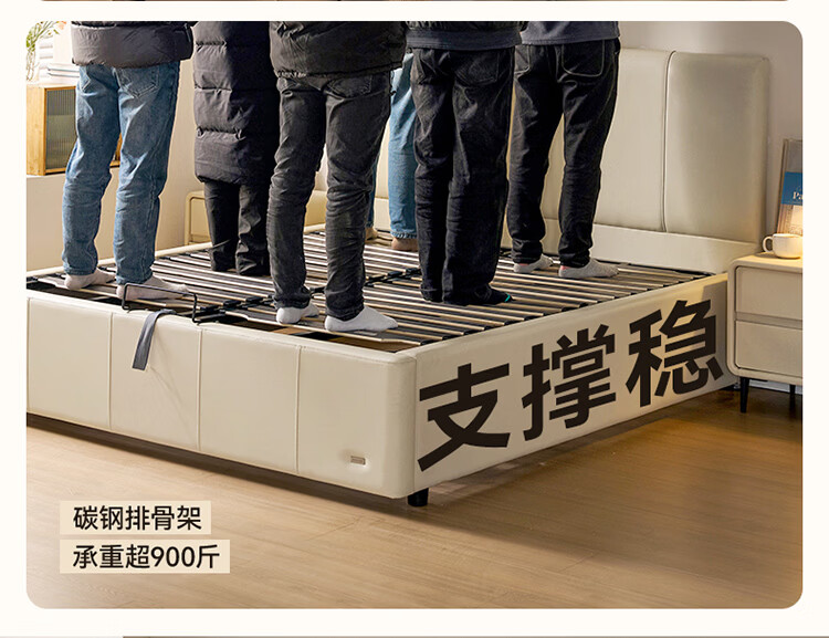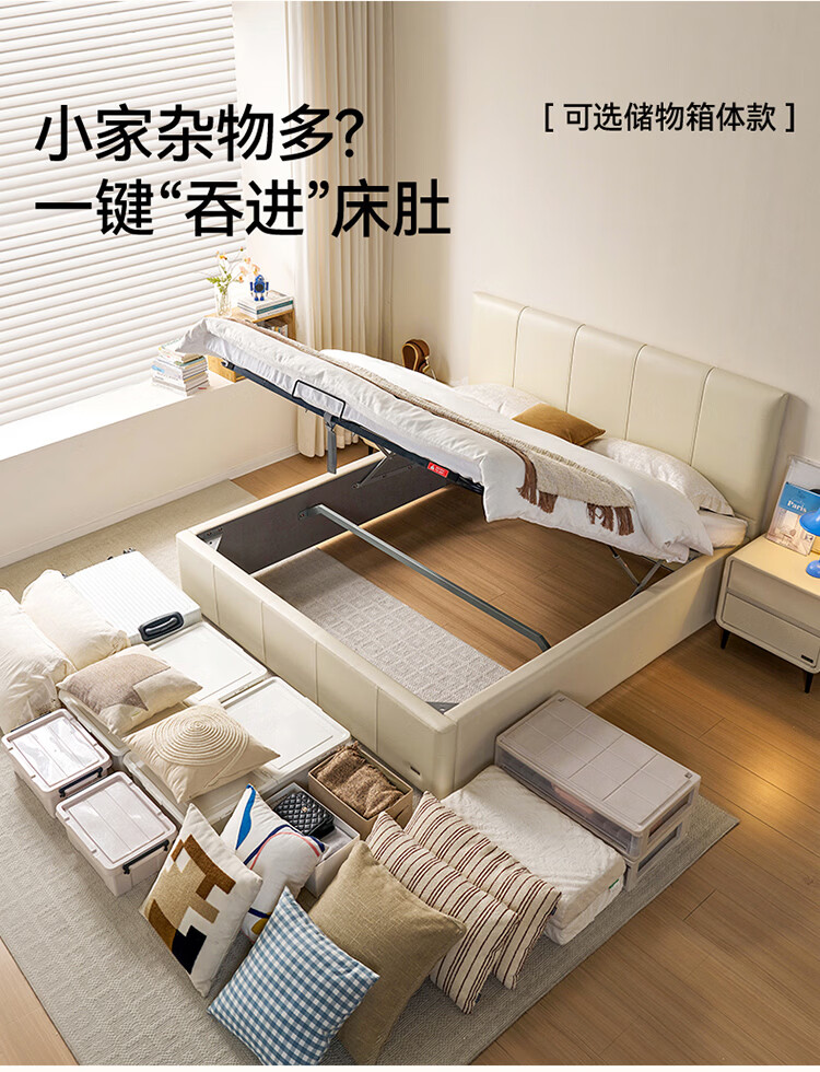全友家居现代简约皮艺床小户型家用卧室齐边床加床垫一套家具双人大床 【奶油白 | 母婴级头层牛皮】高脚床 1.5米x2米 单床+床垫