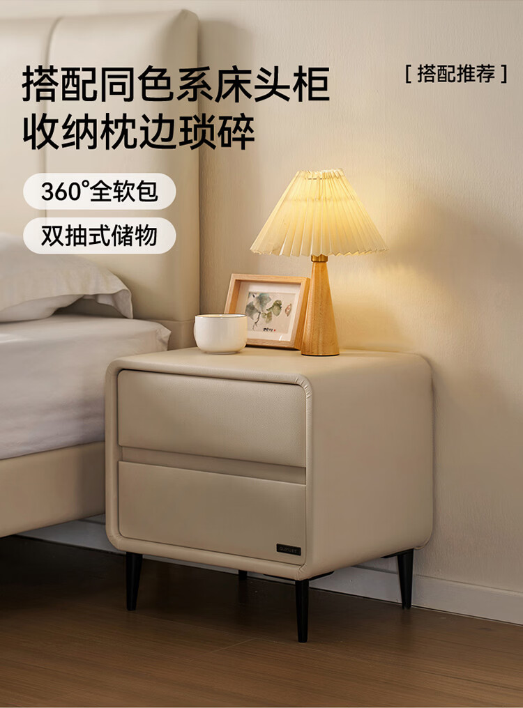 全友家居奶油风可移动茶几组合家用收纳储物小柜子沙发边柜置物柜家具 【米白】高茶几+矮茶几