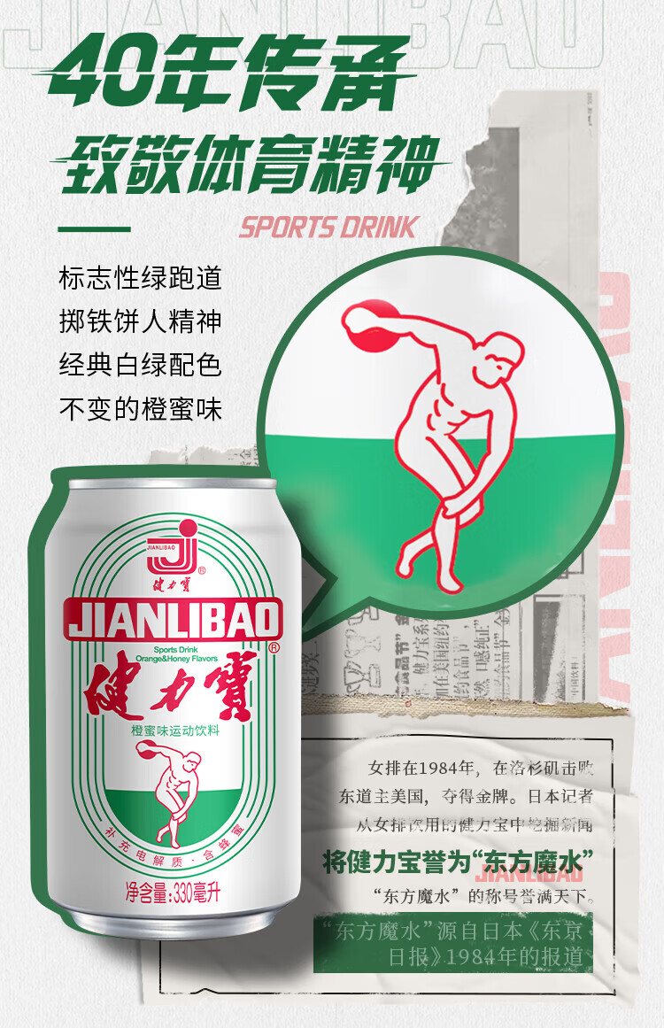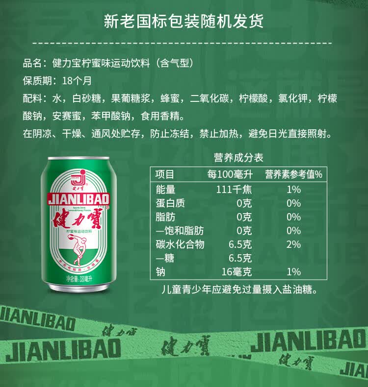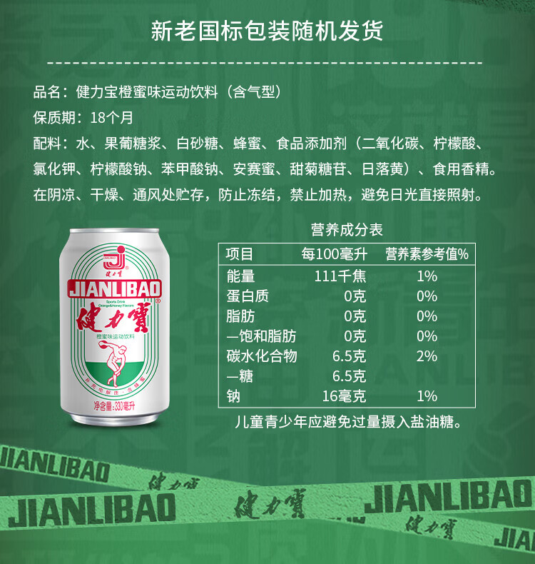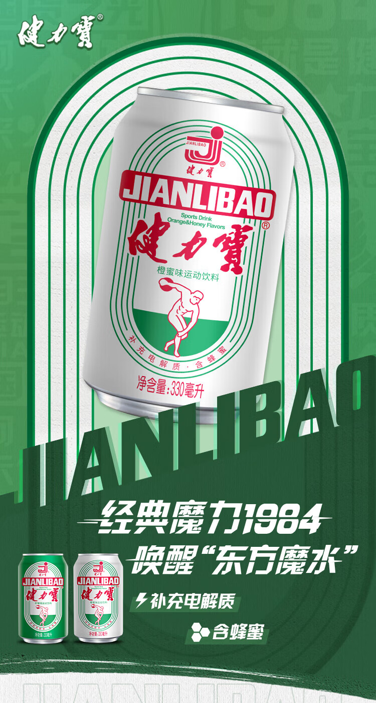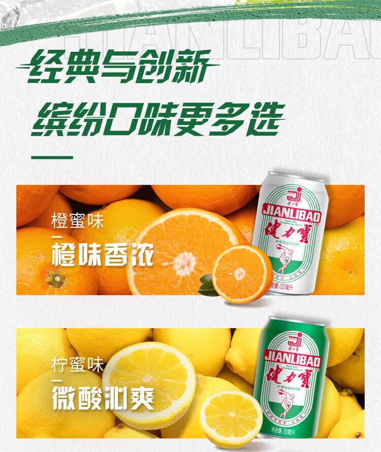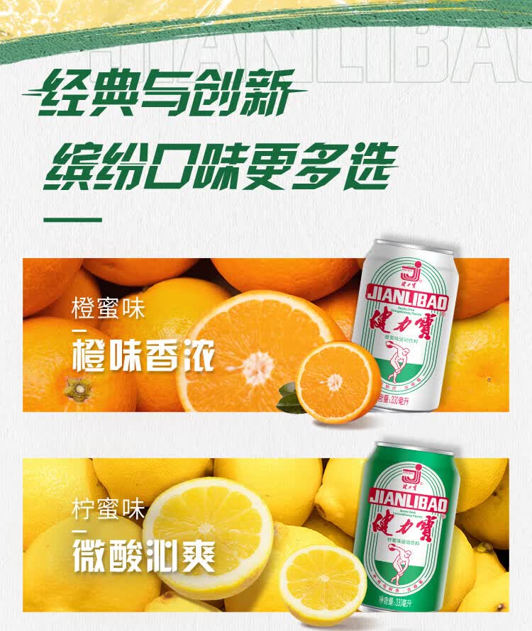 健力宝(JIANLIBAO)碳酸运动饮料汽水330ml*6罐 膜包装 橙蜜味330ml*6瓶装