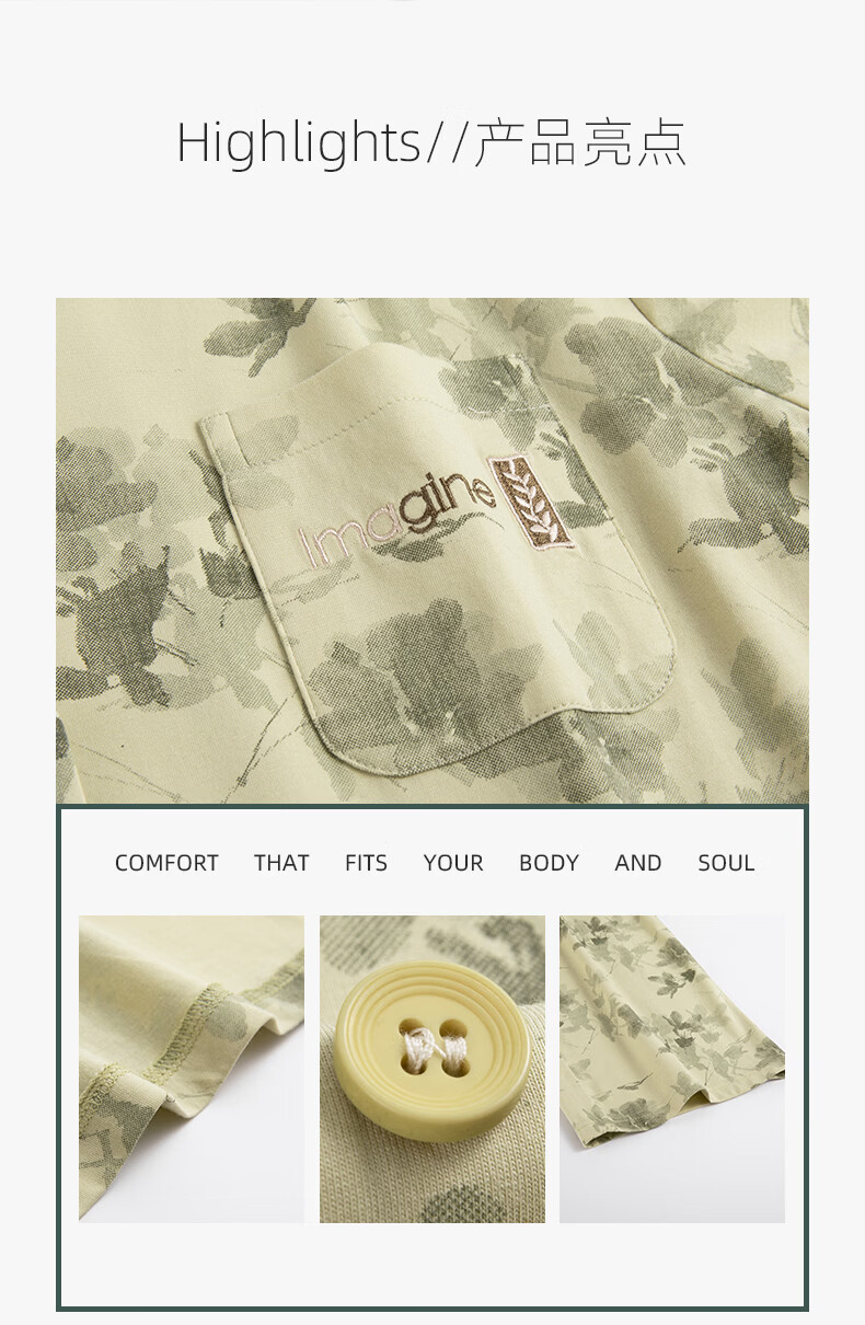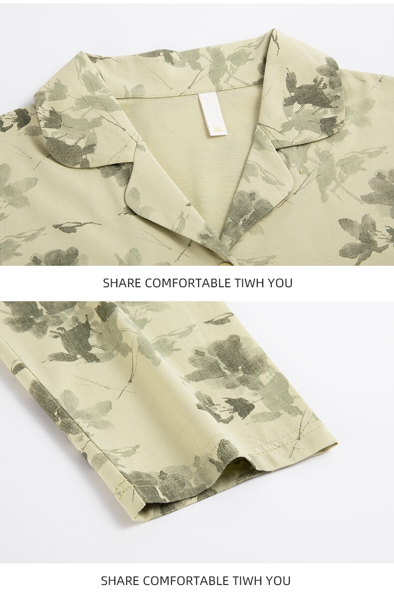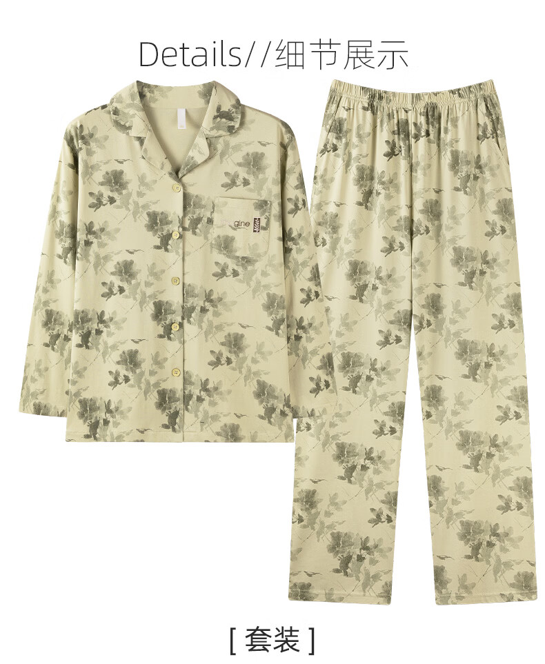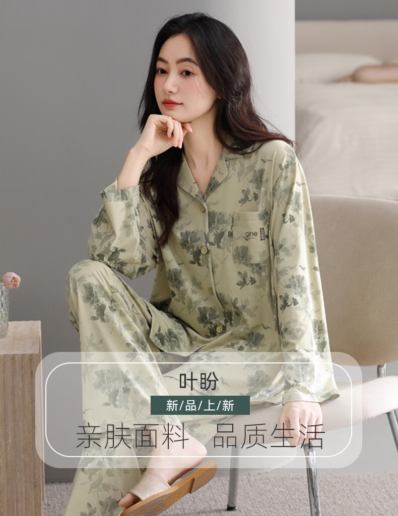 叶盼(yepan)【柔软】莱卡纯棉睡衣女长袖春秋季宽松大码可外穿女士家居服套装 81136-麦茶绿 M (160) :建议90-110斤穿着