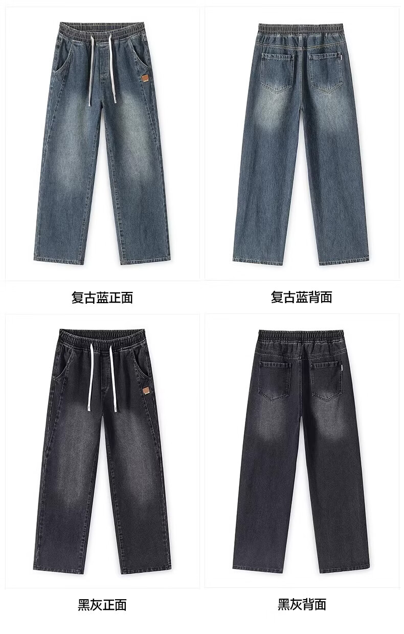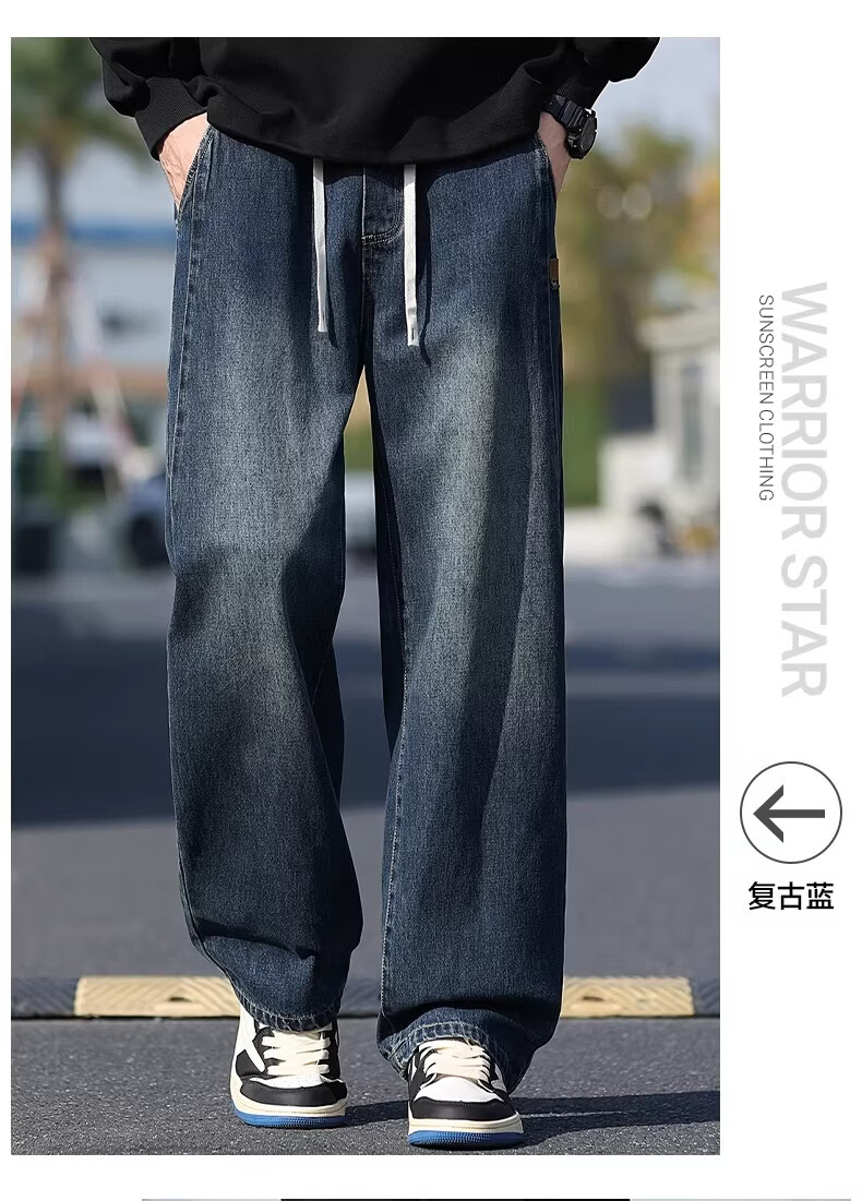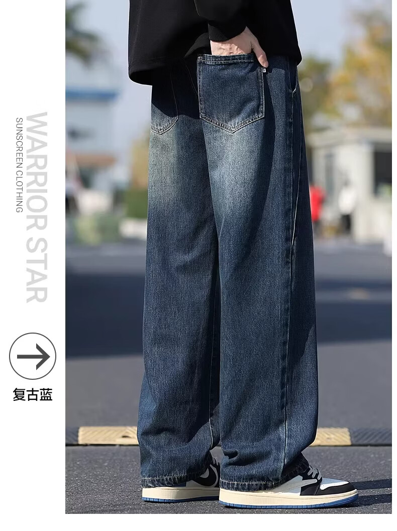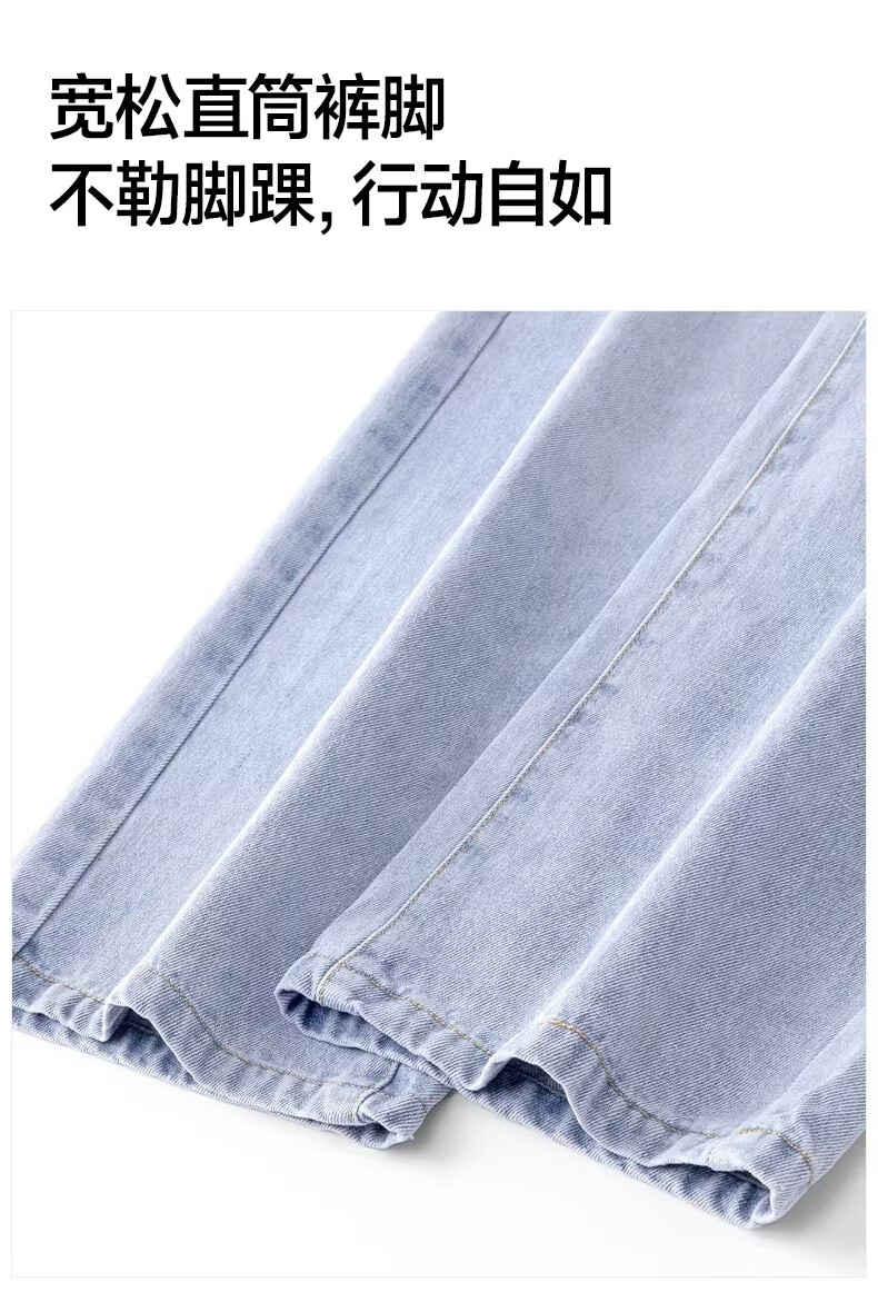真维斯牛仔裤男款春秋美式潮牌复古水洗休闲阔腿裤宽松直筒工装长裤子男 浅蓝色 M