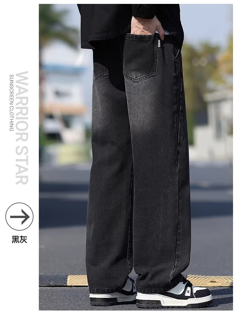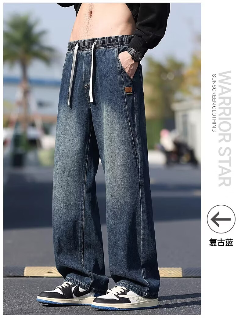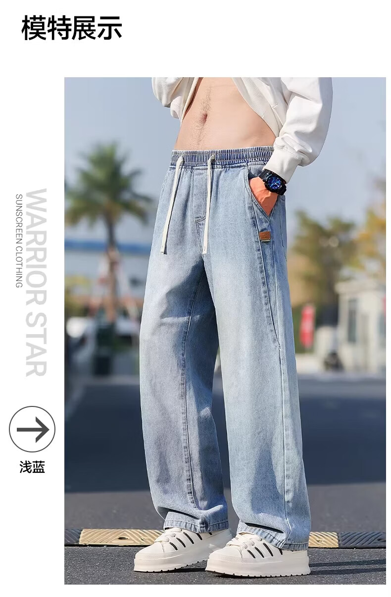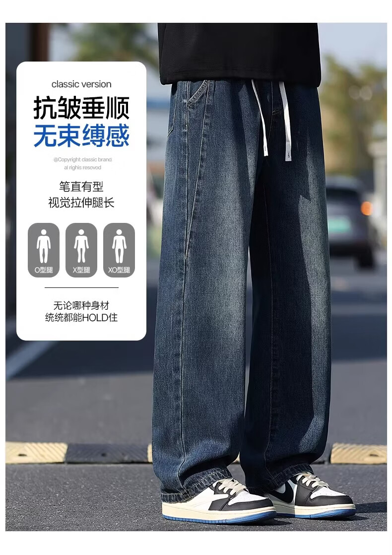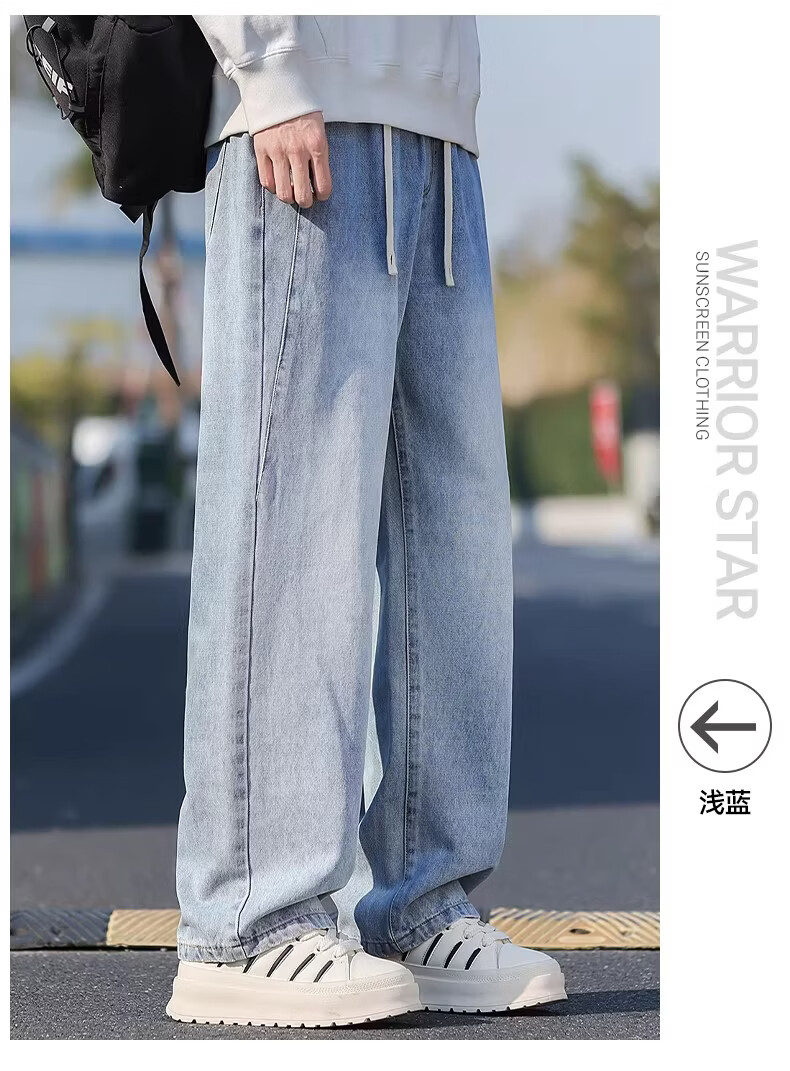 真维斯牛仔裤男款春秋美式潮牌复古水洗休闲阔腿裤宽松直筒工装长裤子男 浅蓝色 M