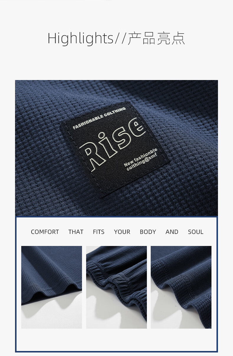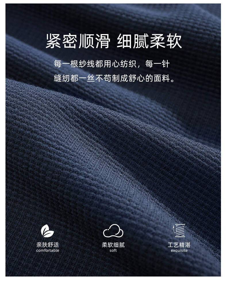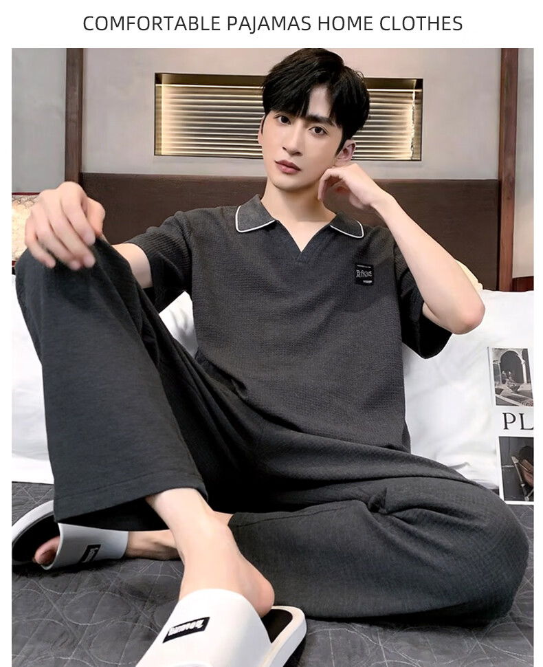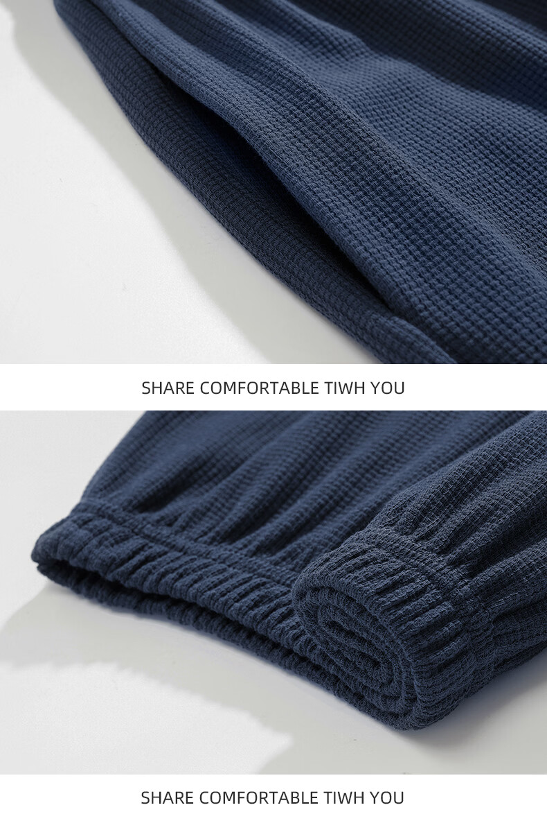允织华夫格纯棉睡衣男士夏季短袖长裤宽松大码夏天薄款男款家居服套装 2404-深蓝 L (170) :建议110-140斤穿着