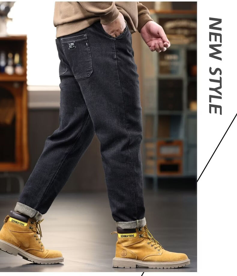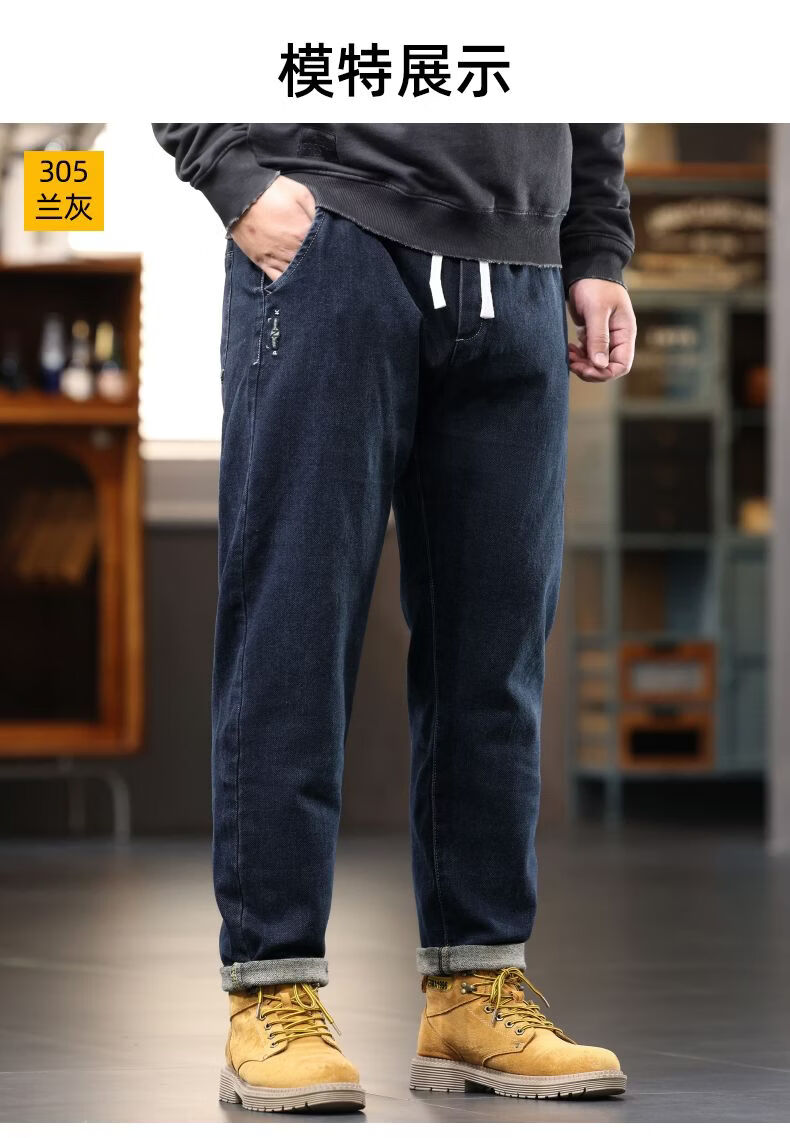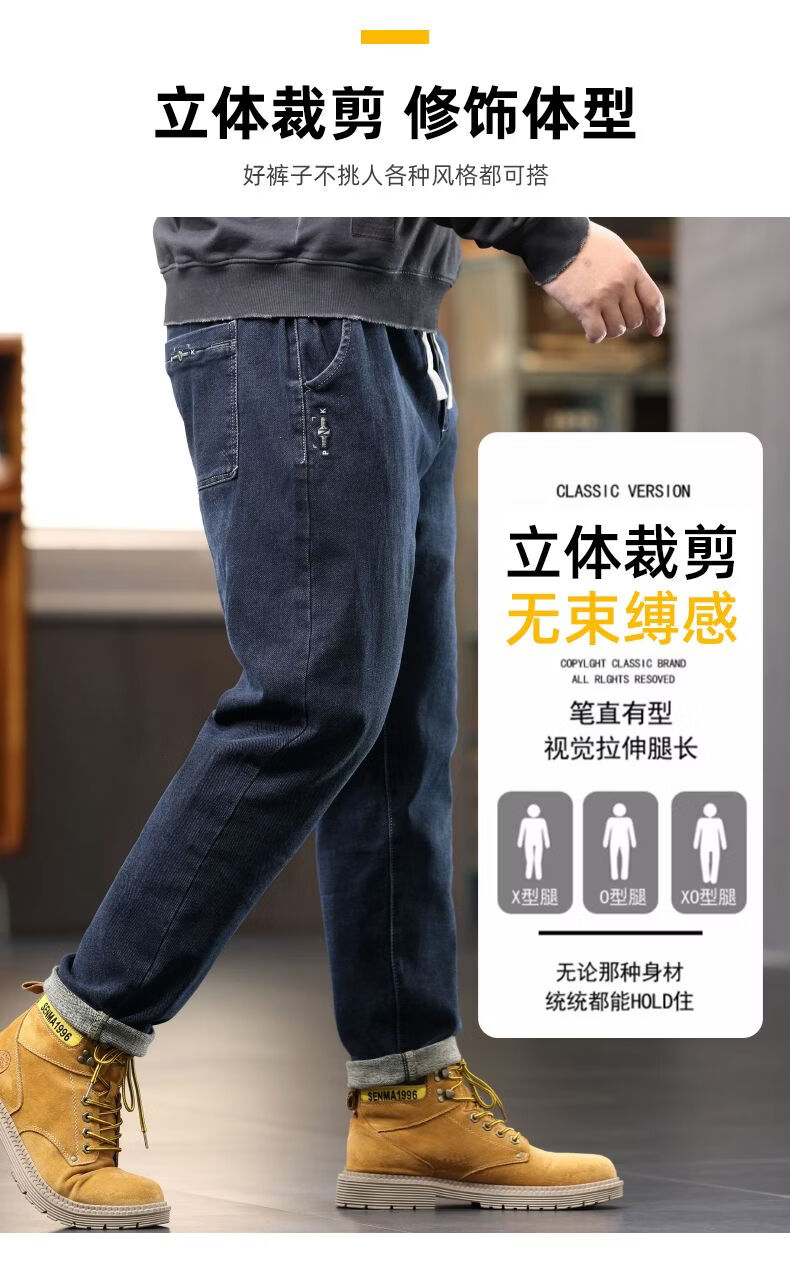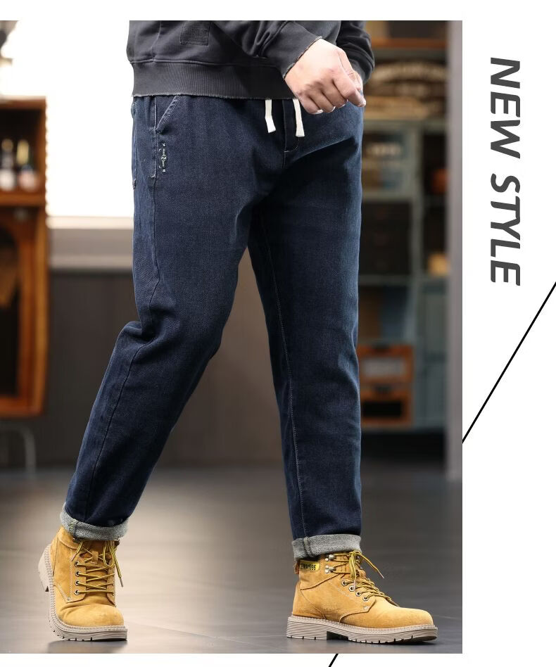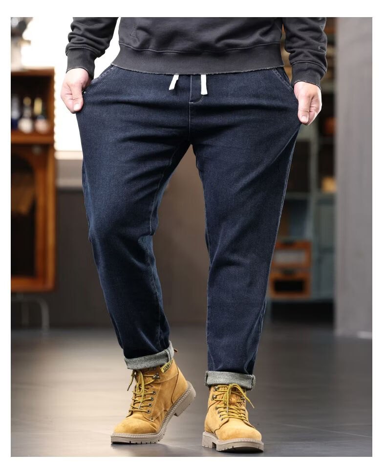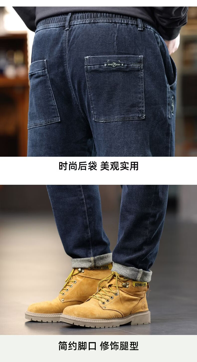 啄木鸟大码胖子松紧腰牛仔裤男秋冬加厚宽松直筒休闲百搭潮流潮牌男裤子 黑灰 1209 M