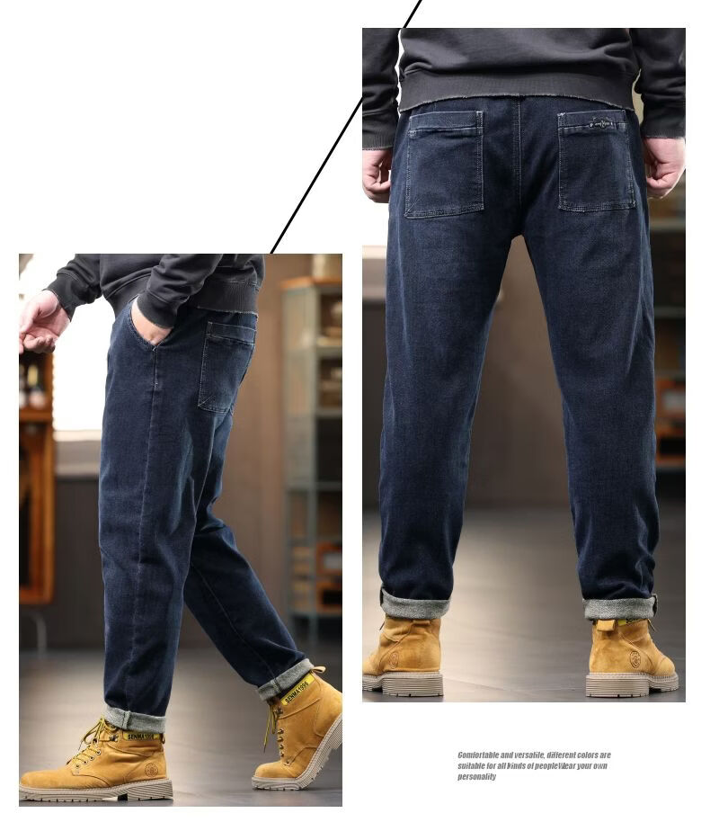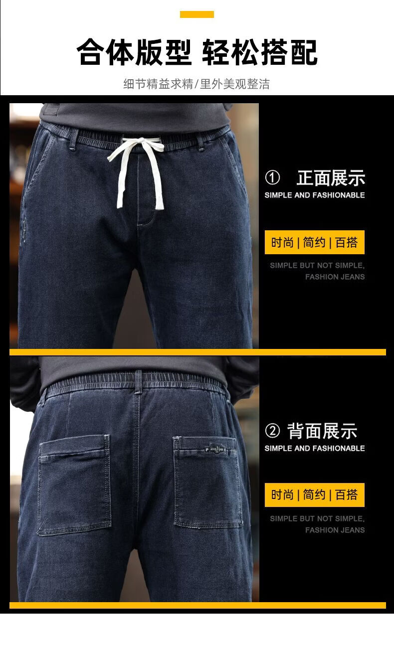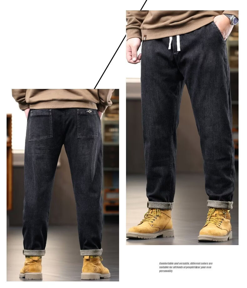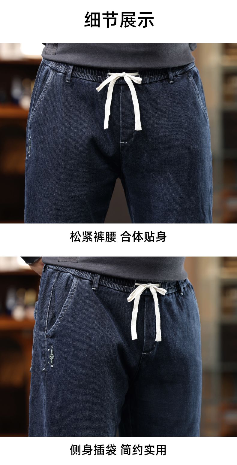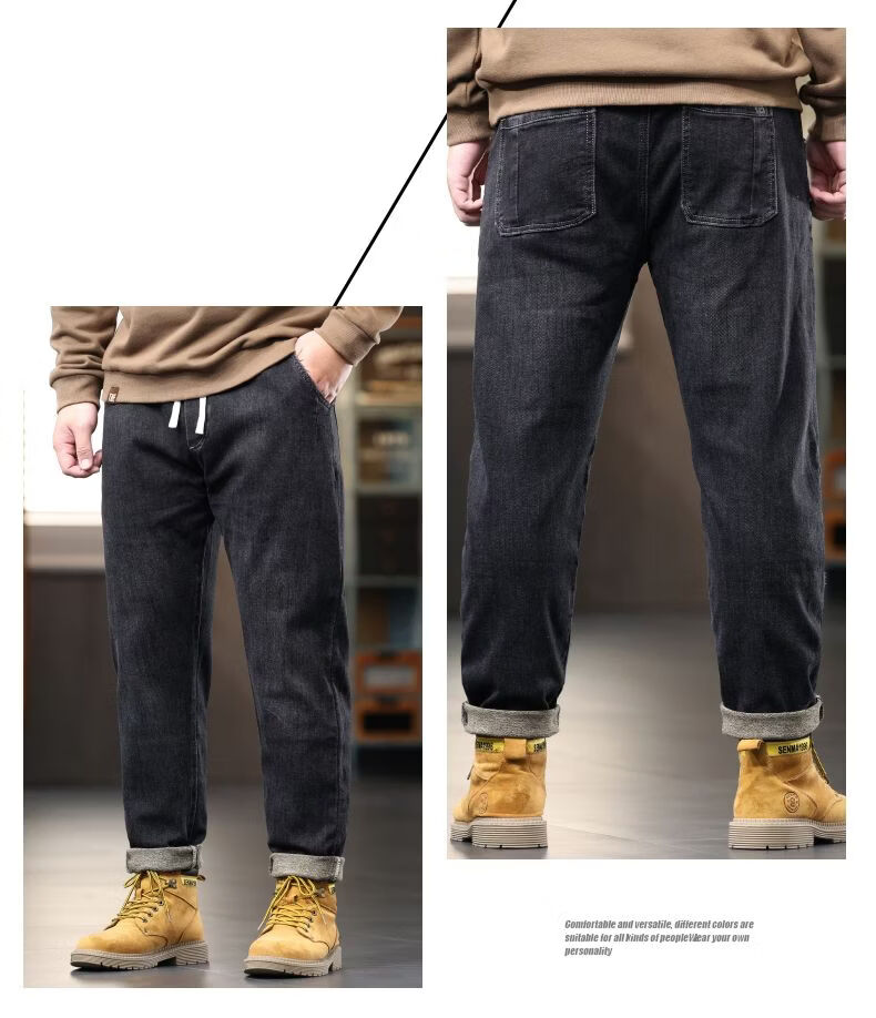 啄木鸟大码胖子松紧腰牛仔裤男秋冬加厚宽松直筒休闲百搭潮流潮牌男裤子 黑灰 1209 M