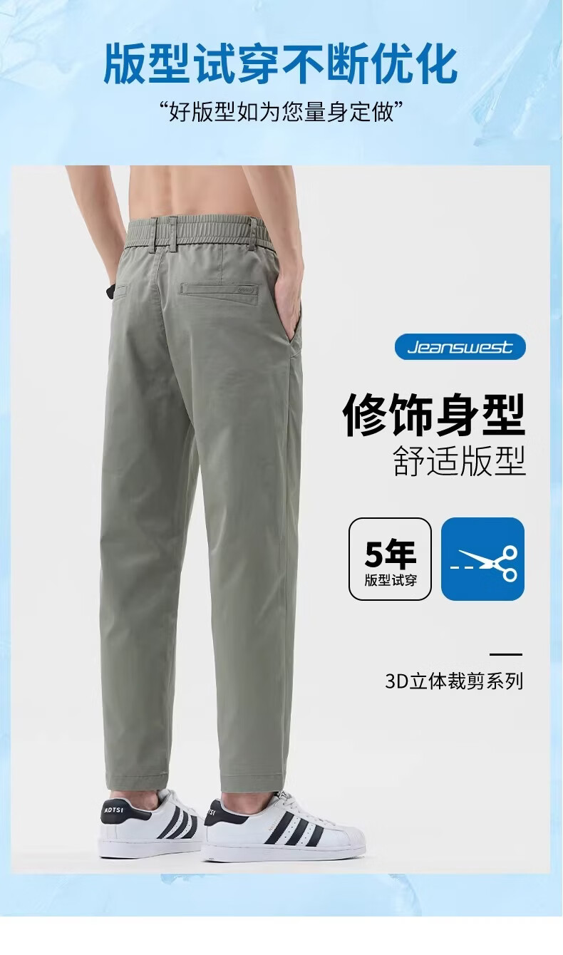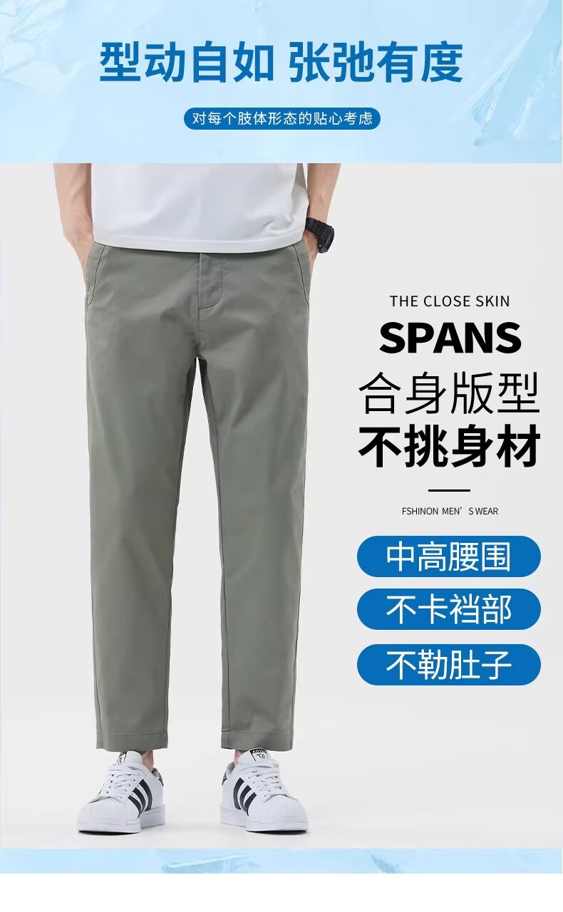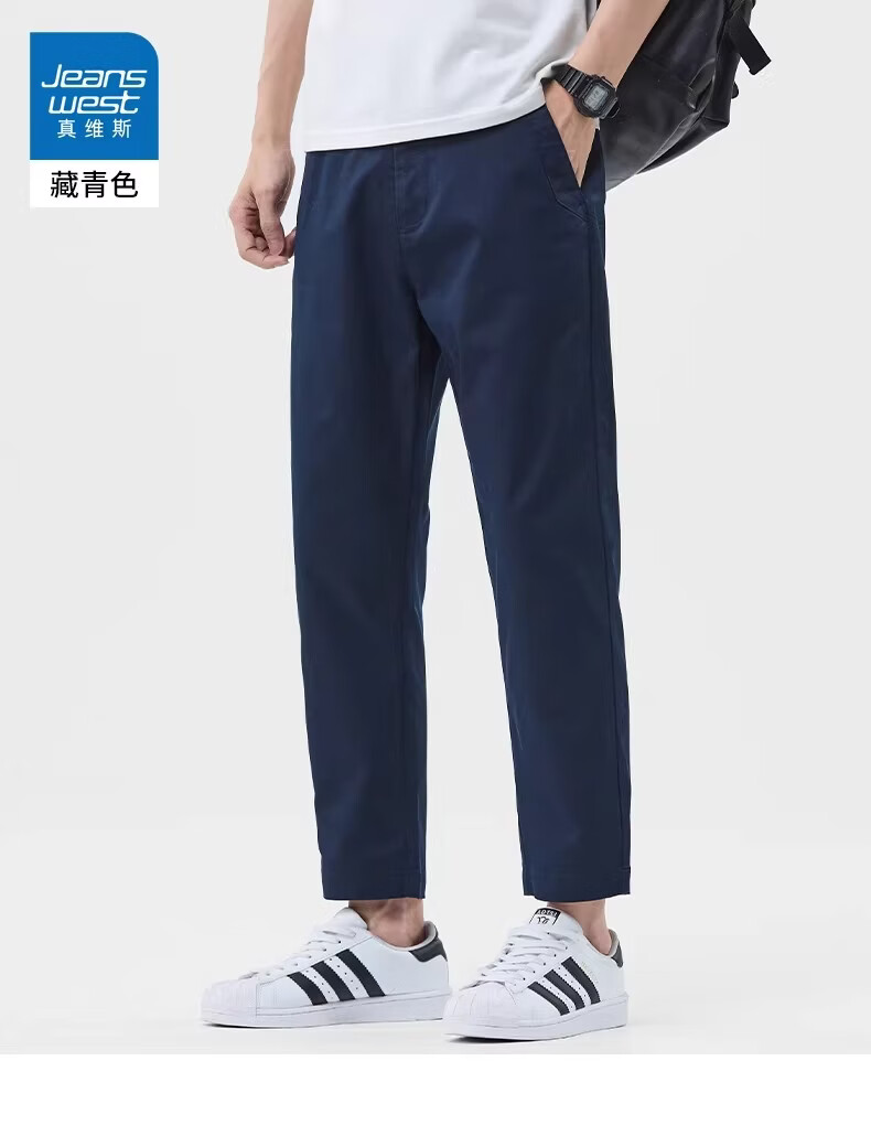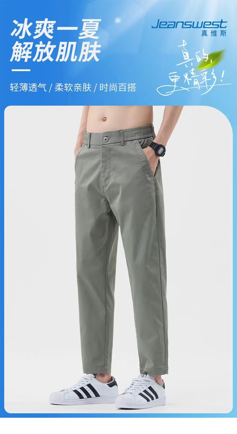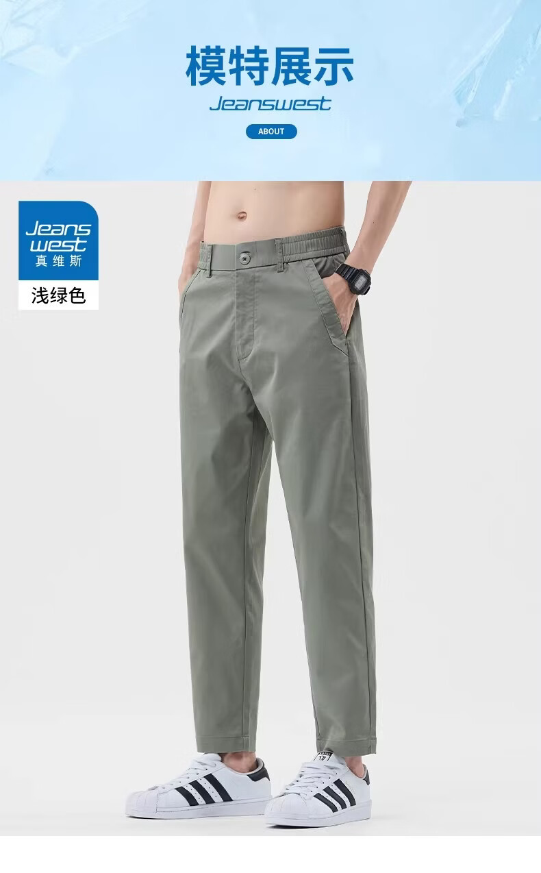 真维斯直筒九分休闲裤男士春夏2026新款宽松弹力小西裤男生长裤子 军绿色. 【弹力速干】 28 【建议90-100斤】