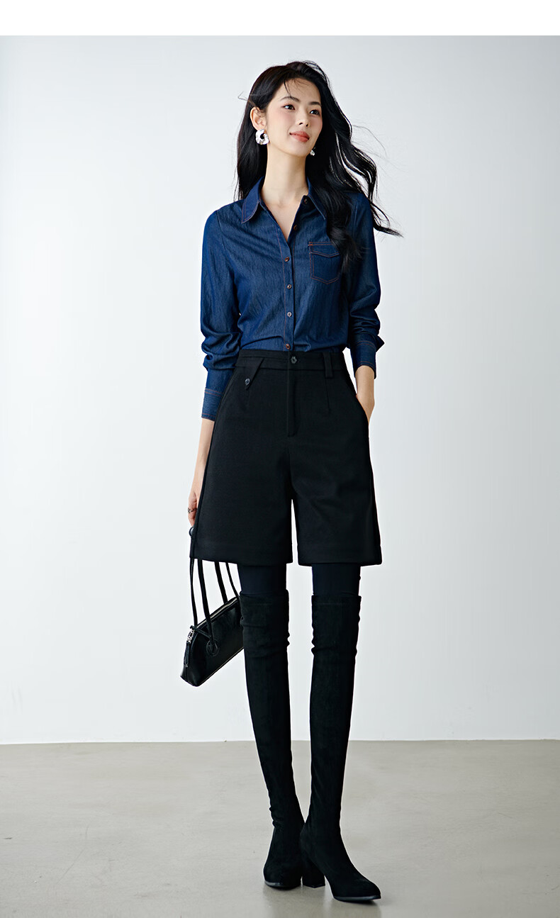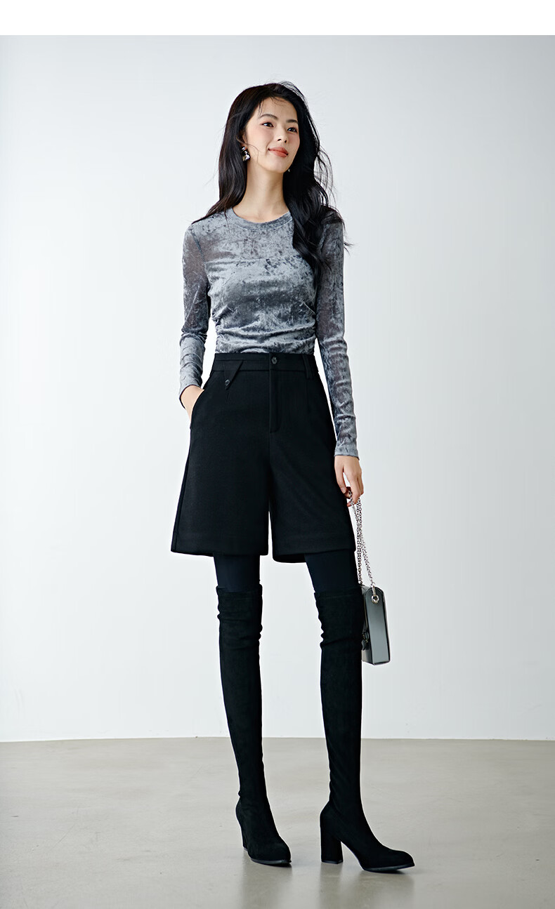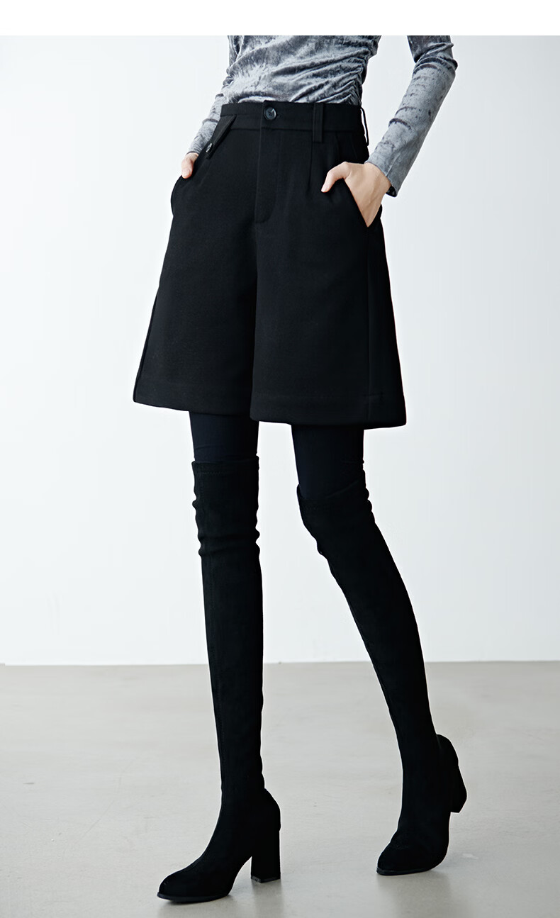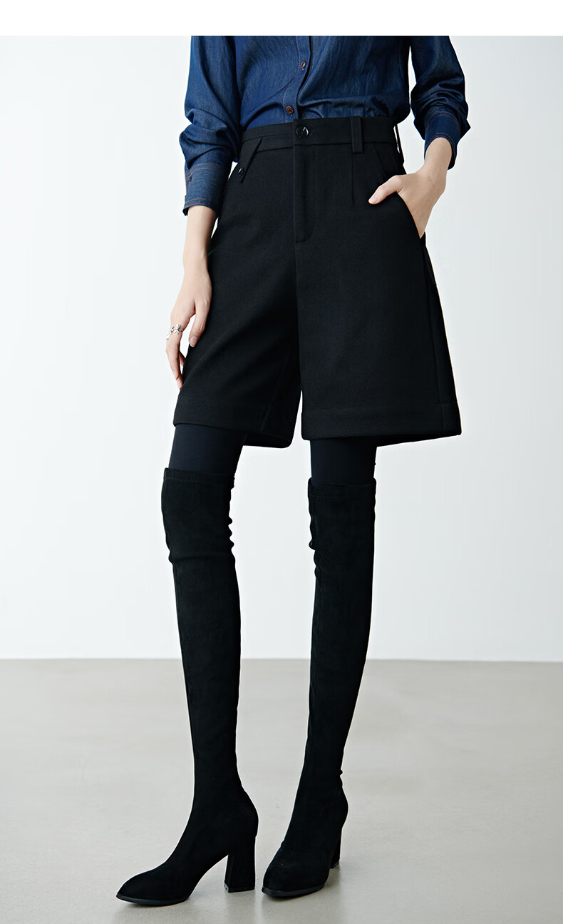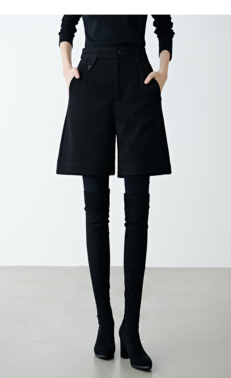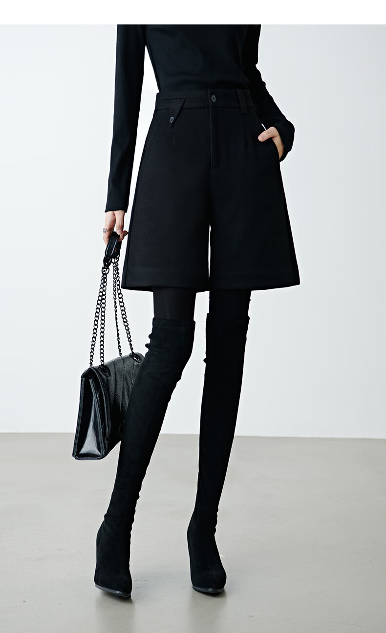 晚白【新品】冬款经典小个子穿搭高腰靴裤利落显瘦时尚百搭休闲短裤女 黑色 28