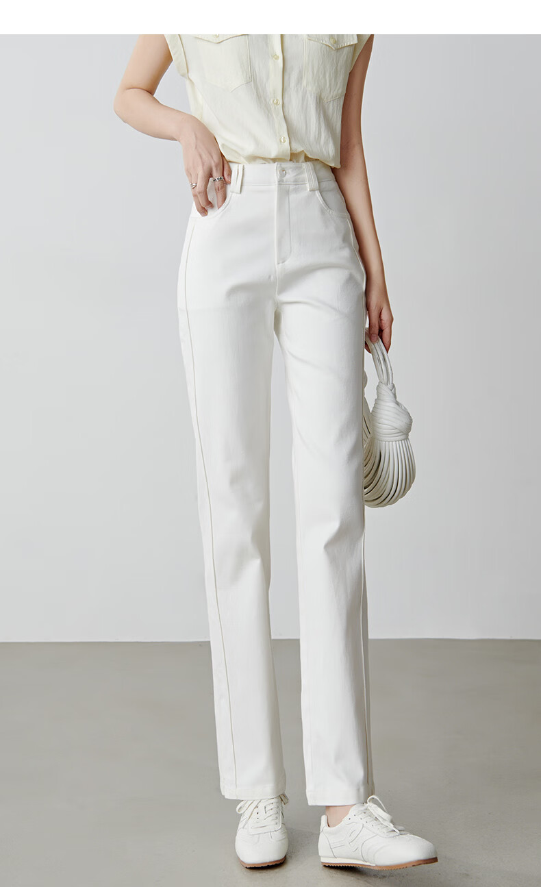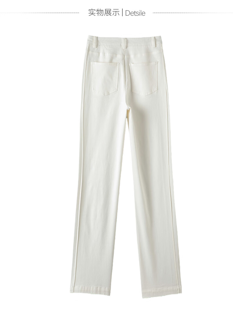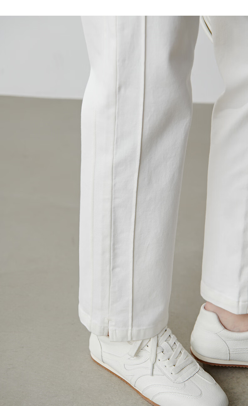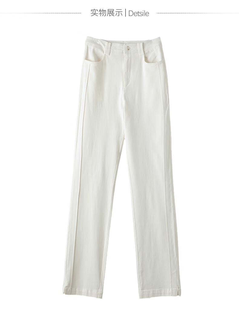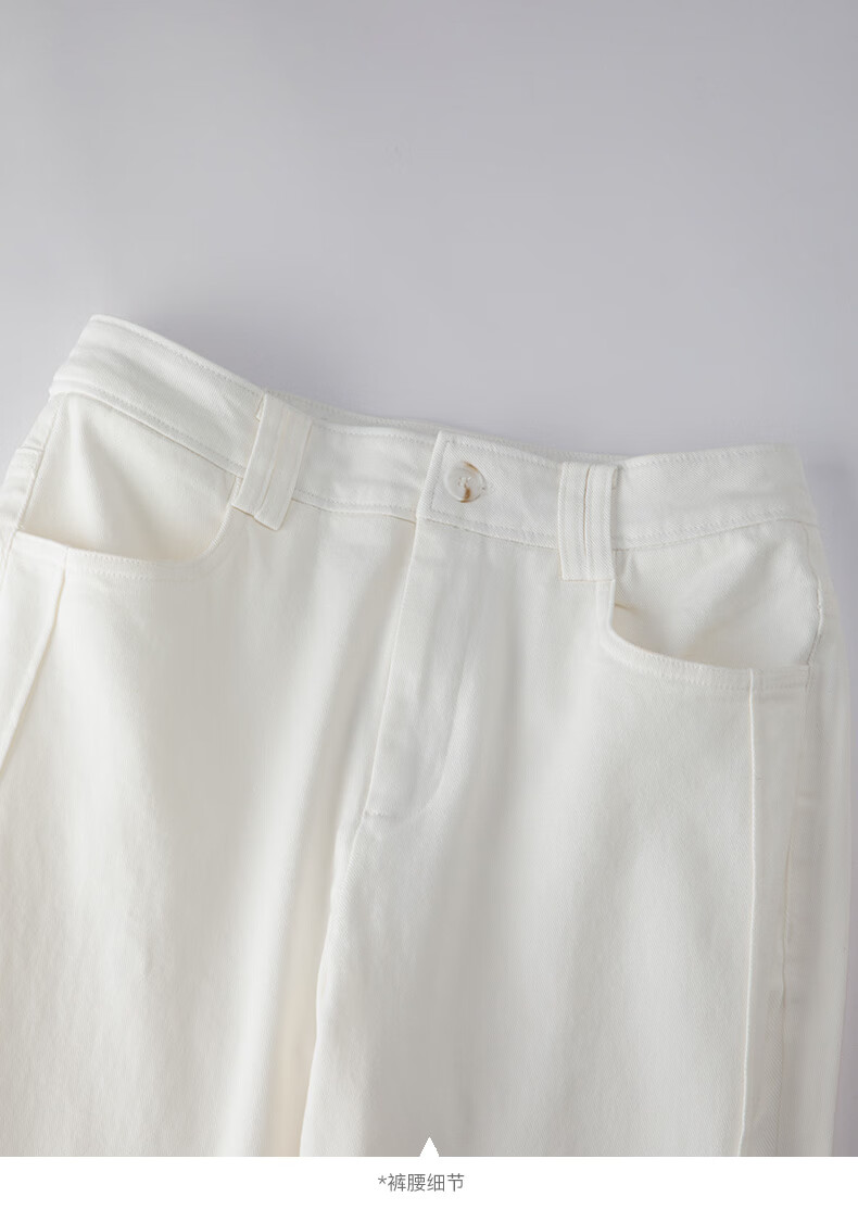晚白2026年春款休闲棉料牛仔裤立体分割瘦瘦裤舒适高腰显瘦窄版直筒裤 米白色 29