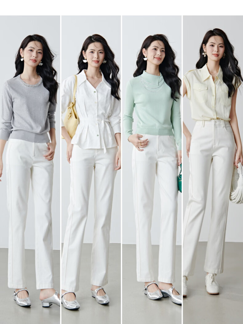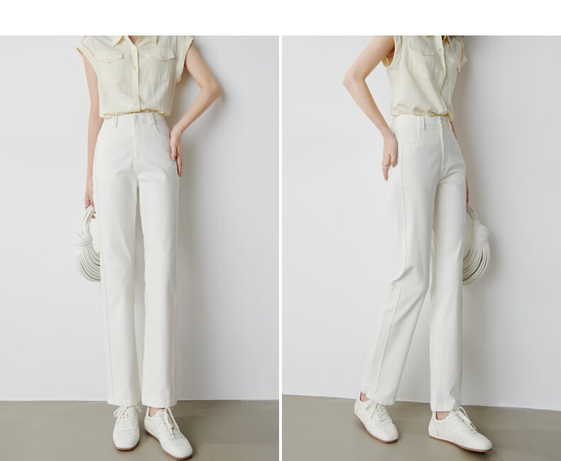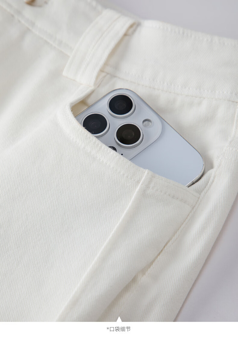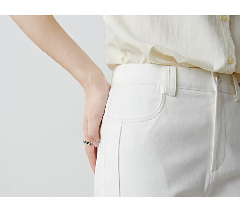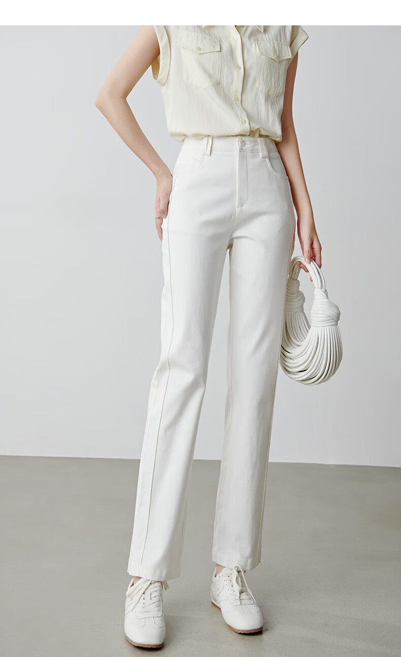 晚白2026年春款休闲棉料牛仔裤立体分割瘦瘦裤舒适高腰显瘦窄版直筒裤 米白色 29