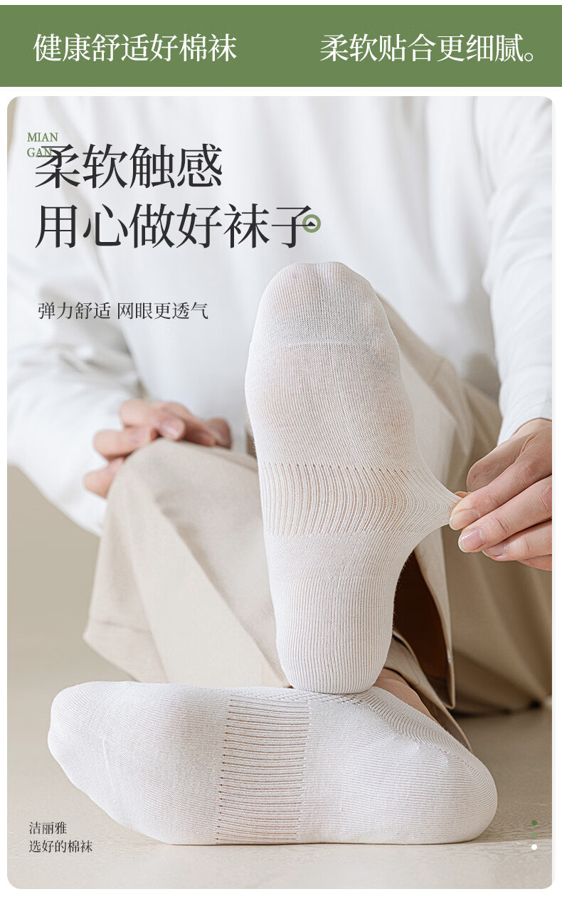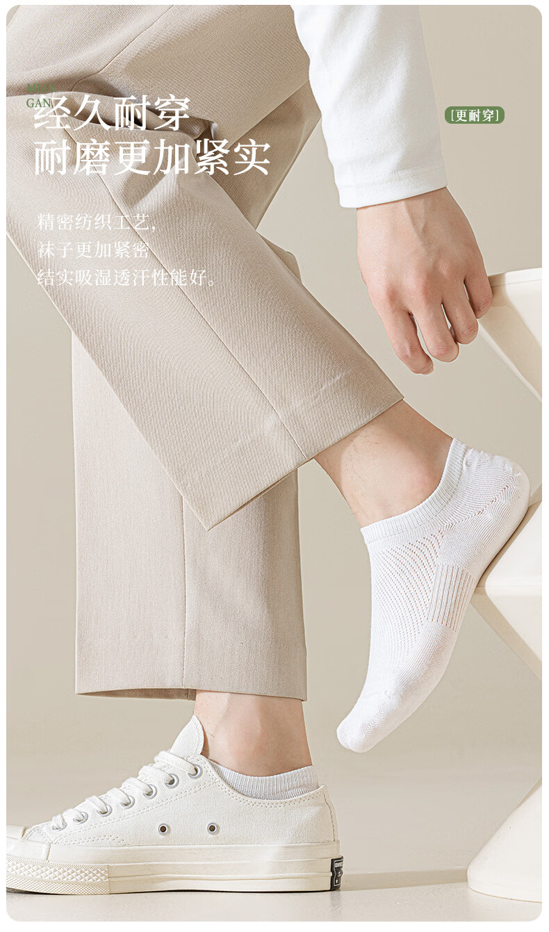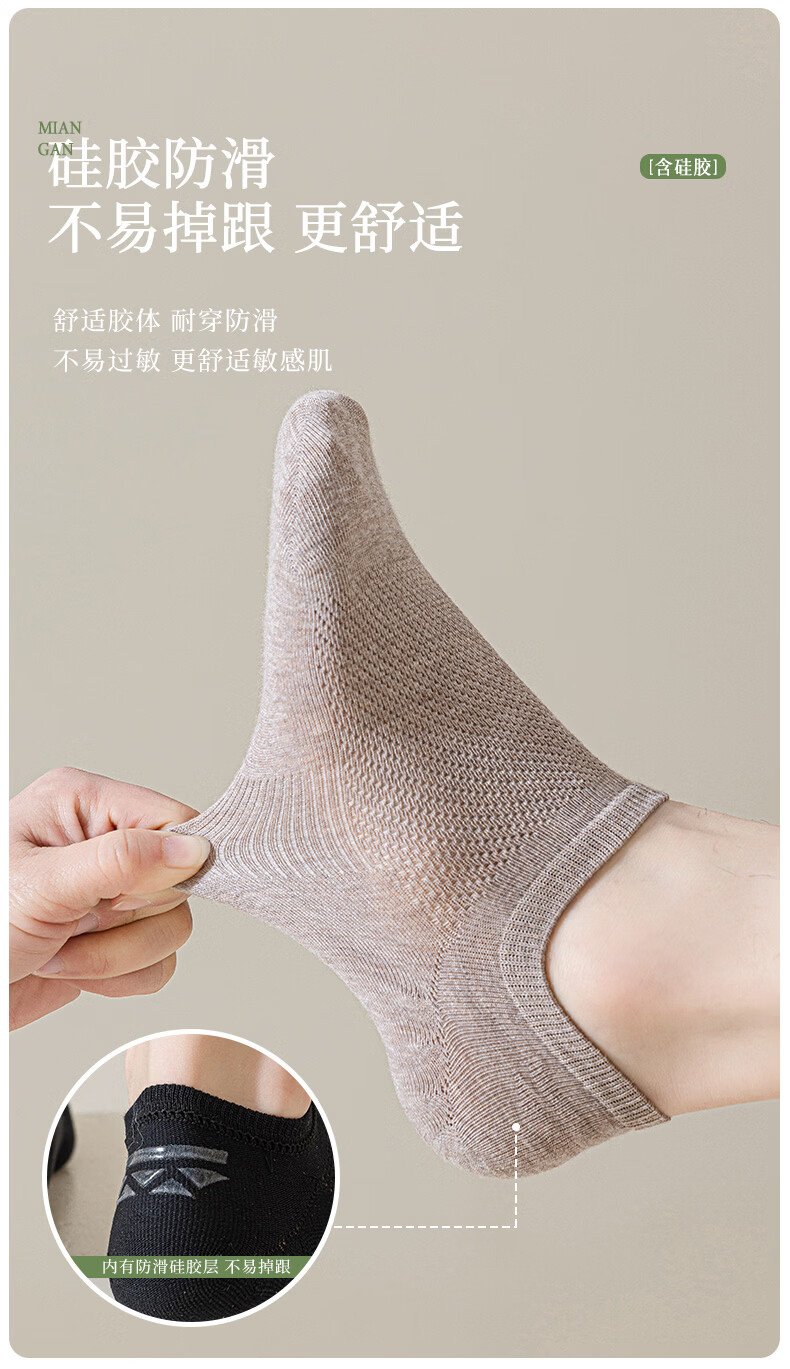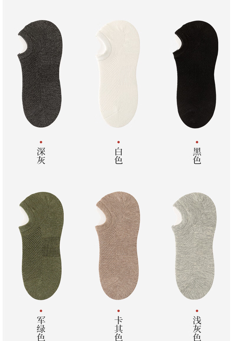 洁丽雅【5A抑菌】袜子男款船袜棉袜不掉跟夏季隐形防臭男士短袜吸汗防滑 黑色 均码 【26-28cm】