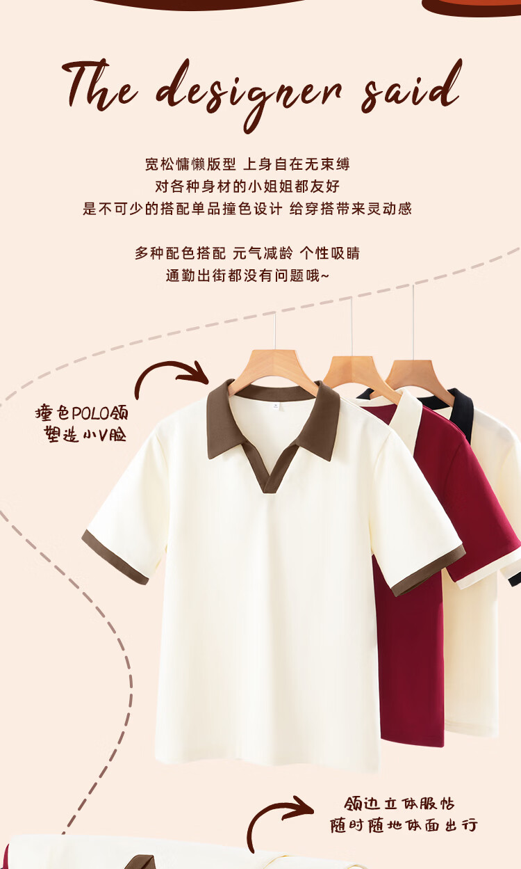 真维斯(Jeanswest)韩系穿搭米色纯棉短袖翻领T恤女2026夏季新款小个子polo领上衣服 黑色 幸运笑脸棕_K XL