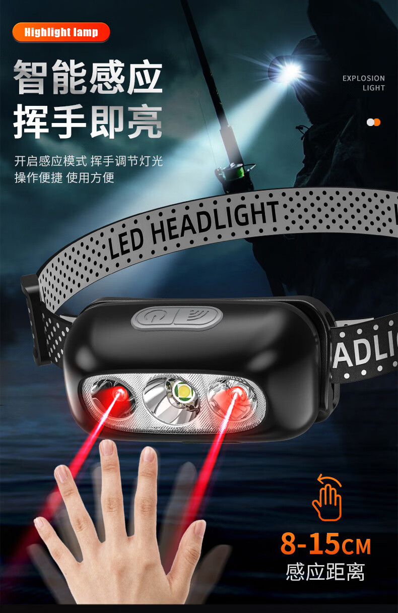 SHENYU头灯感应户外登山野外强光超亮头戴式工地矿灯超长续航钓鱼专用 强光头灯【可感应/长续航】