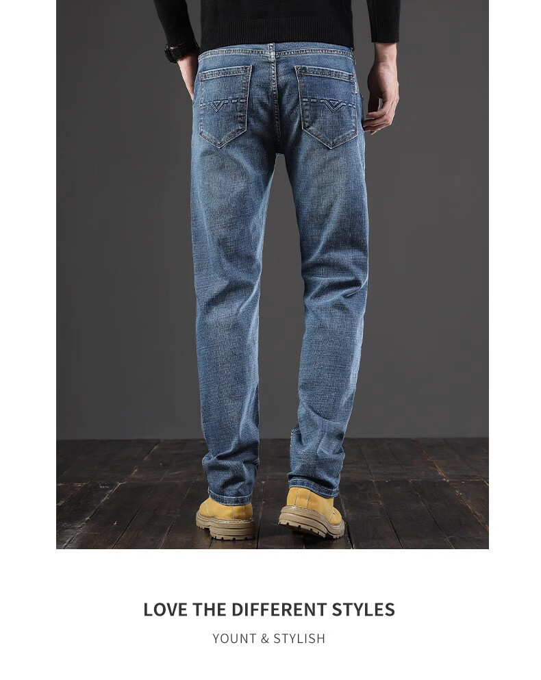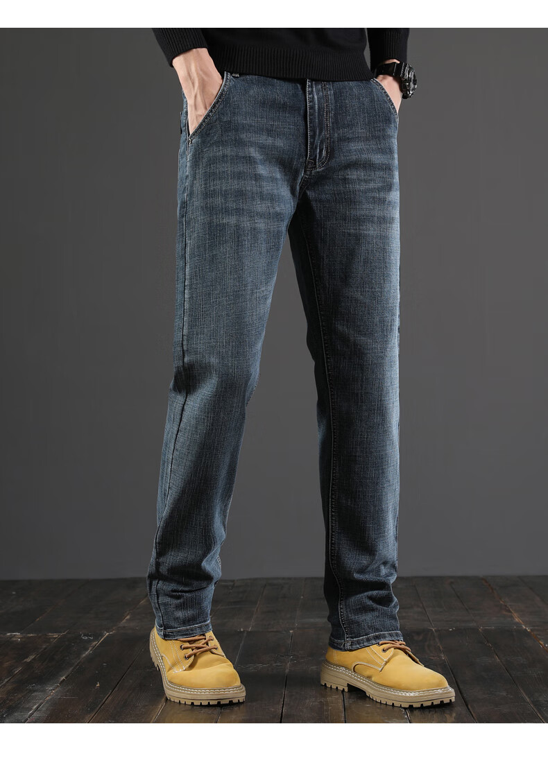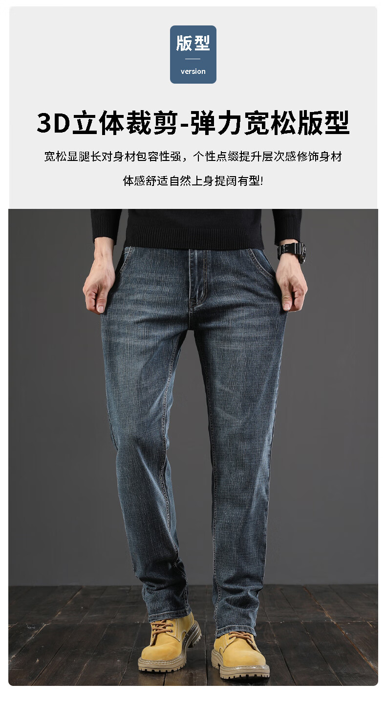 真维斯(Jeanswest)秋季厚款牛仔裤男直筒宽松中年复古男裤子休闲高级春秋款阔腿长裤 045H蓝色 28