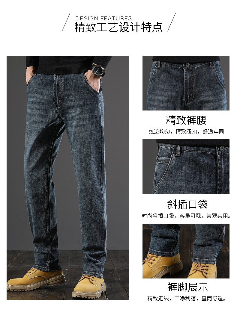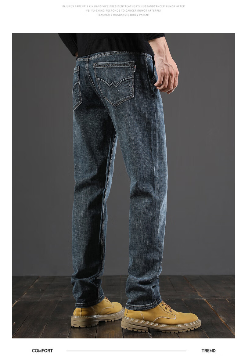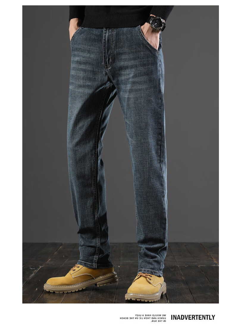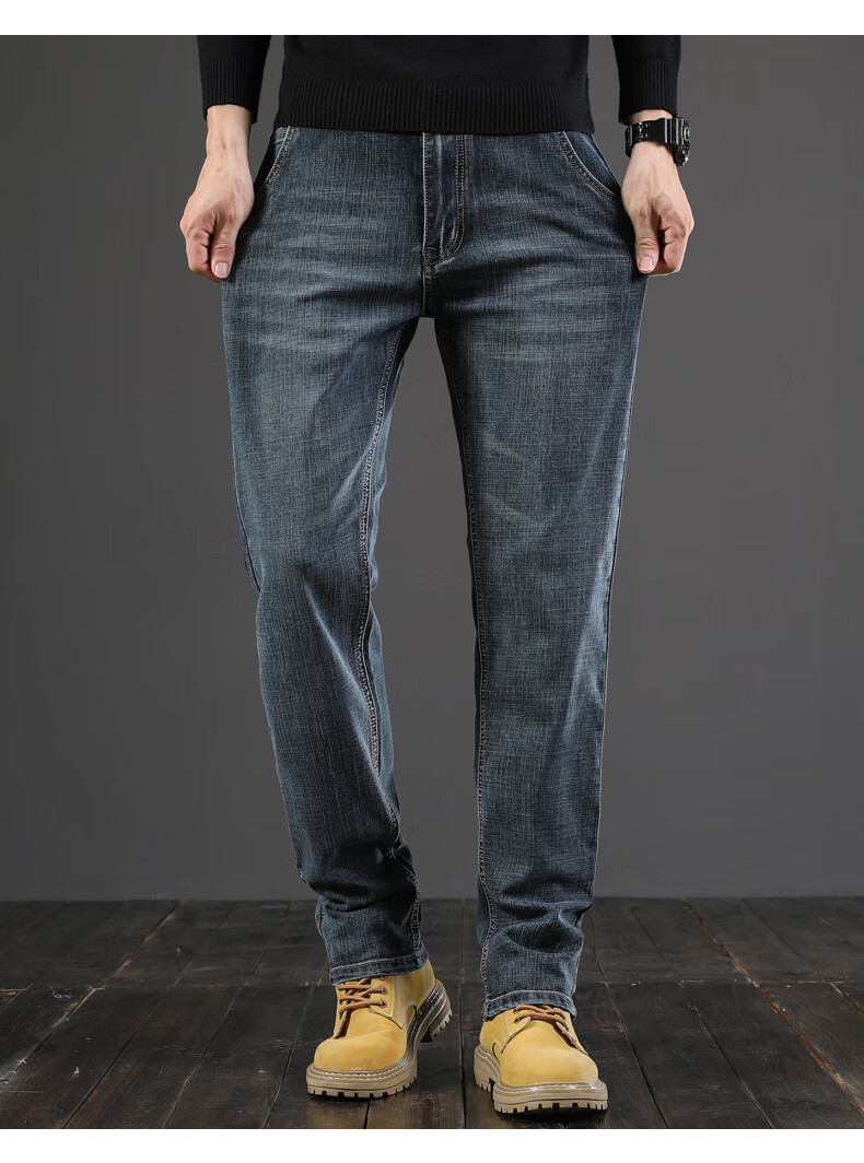 真维斯(Jeanswest)秋季厚款牛仔裤男直筒宽松中年复古男裤子休闲高级春秋款阔腿长裤 045H蓝色 28