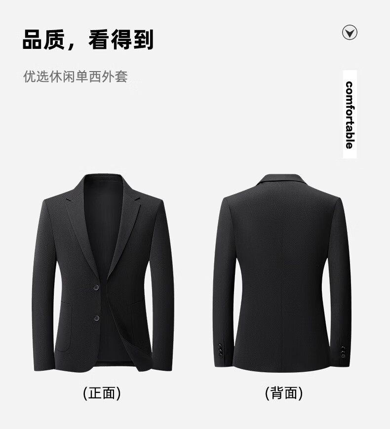 SHANSHAN杉杉男士西装外套春夏百搭上衣商务休闲时尚平驳领2026春新款西服 黑色 56 /195